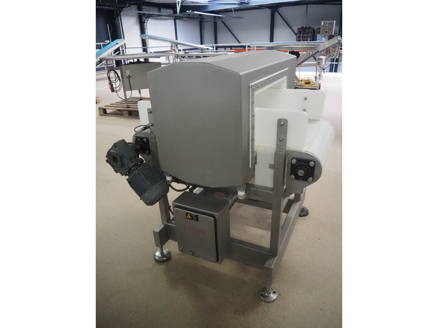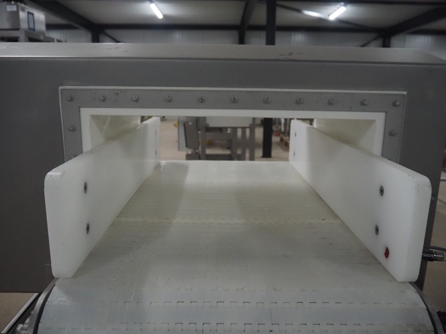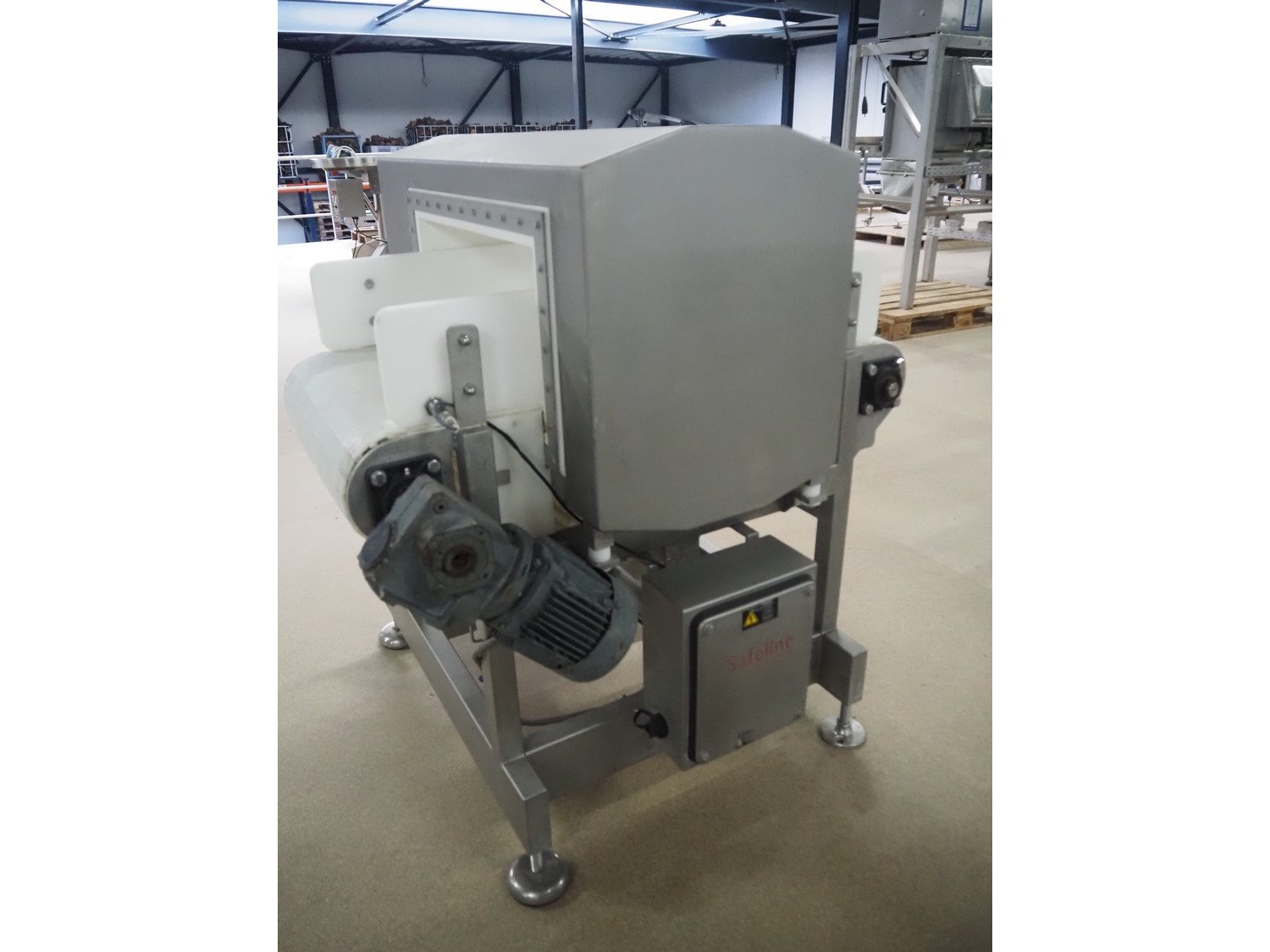 Safeline / Mettler Toledo metal detector, plastic belt, belt width: 480 mm, clearance: 445 mm x 210 mm, total dimensions: 1100 mm x 1000 mm x 1100 mm.