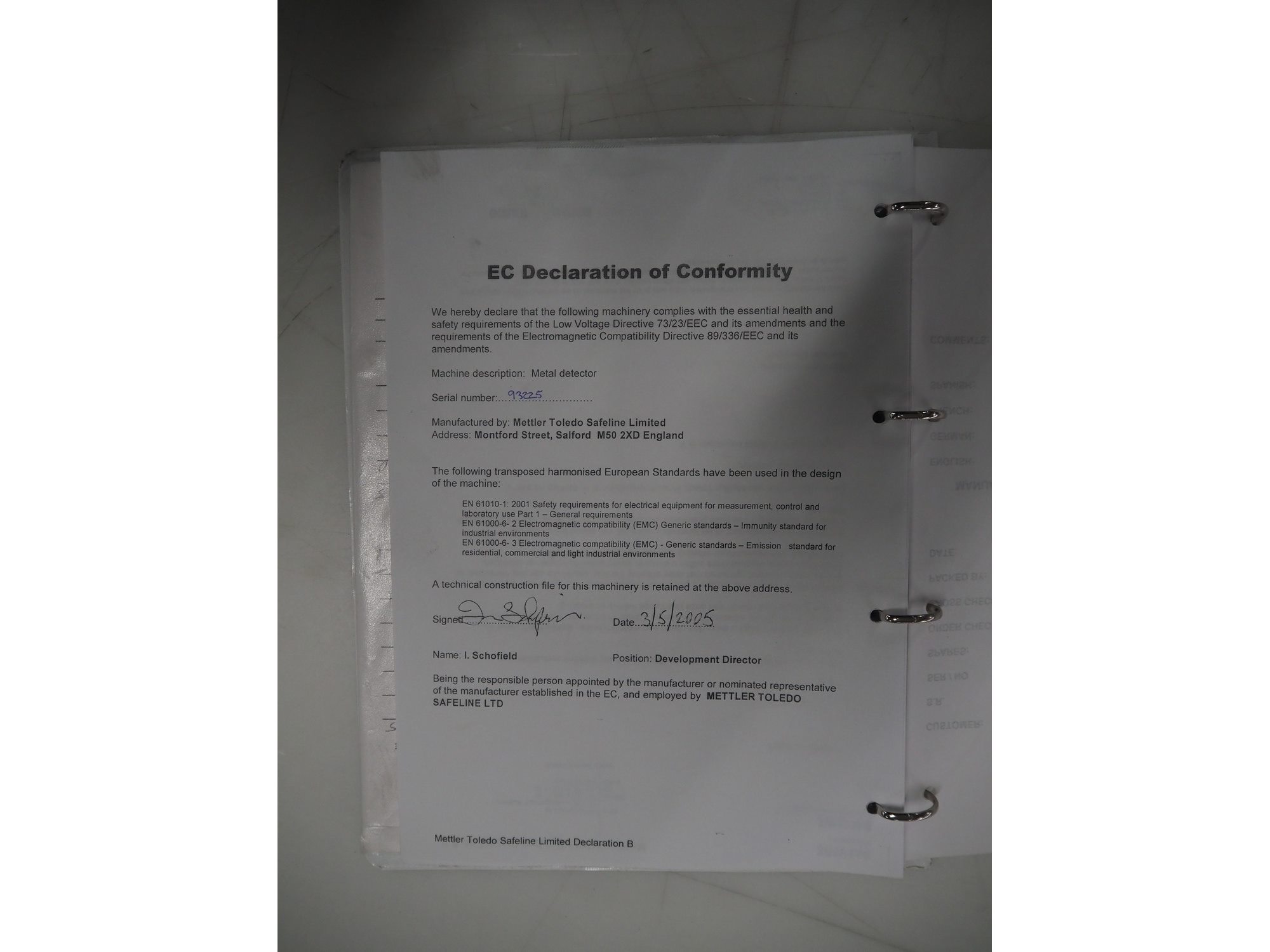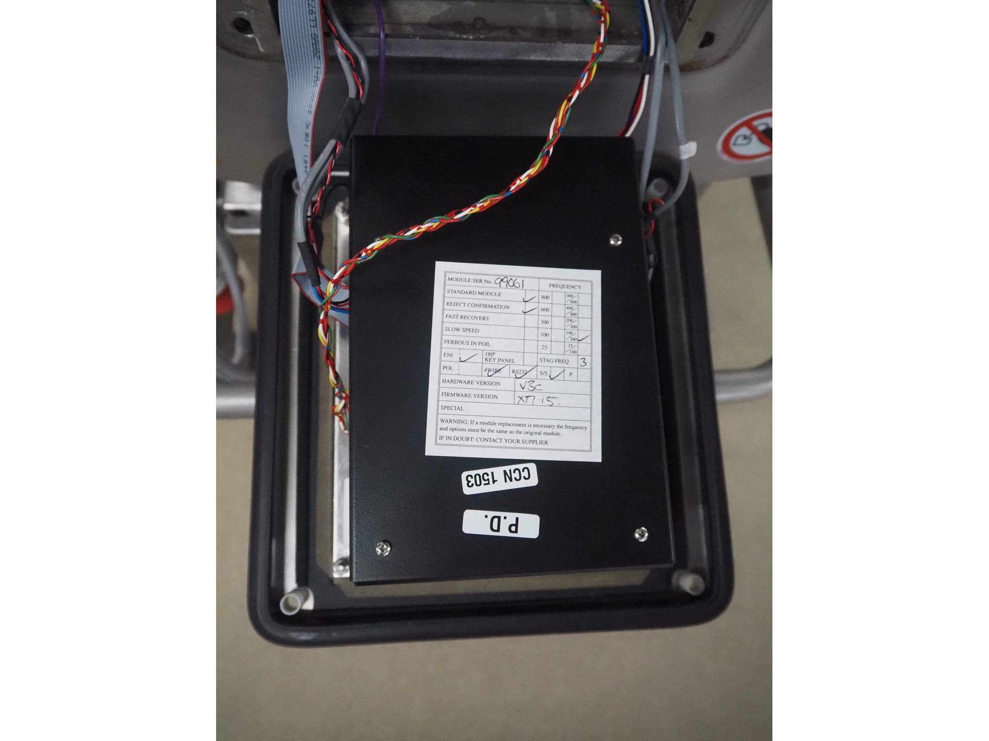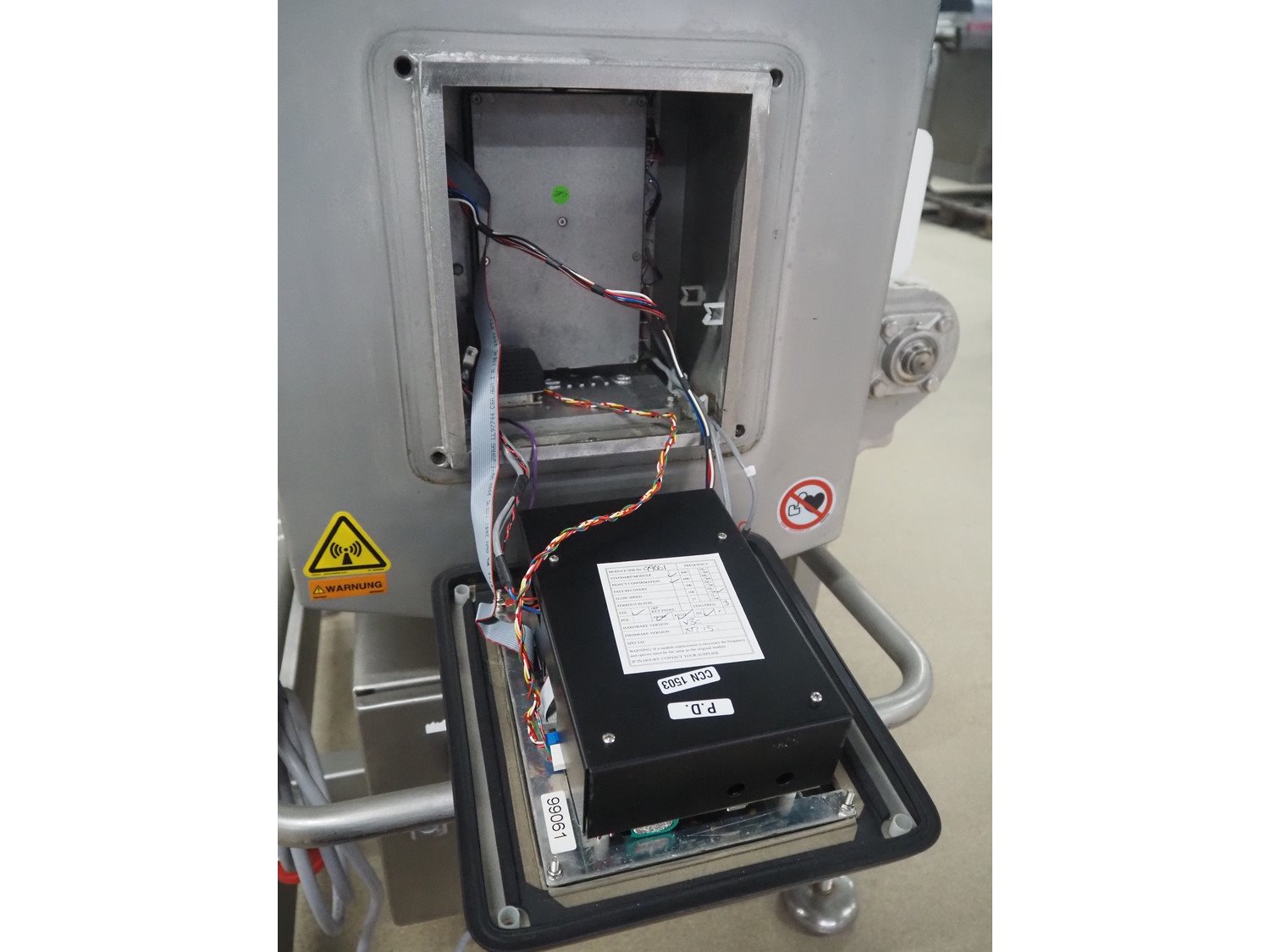 Safeline / Mettler Toledo metal detector, plastic belt, belt width: 480 mm, clearance: 445 mm x 210 mm, total dimensions: 1100 mm x 1000 mm x 1100 mm.