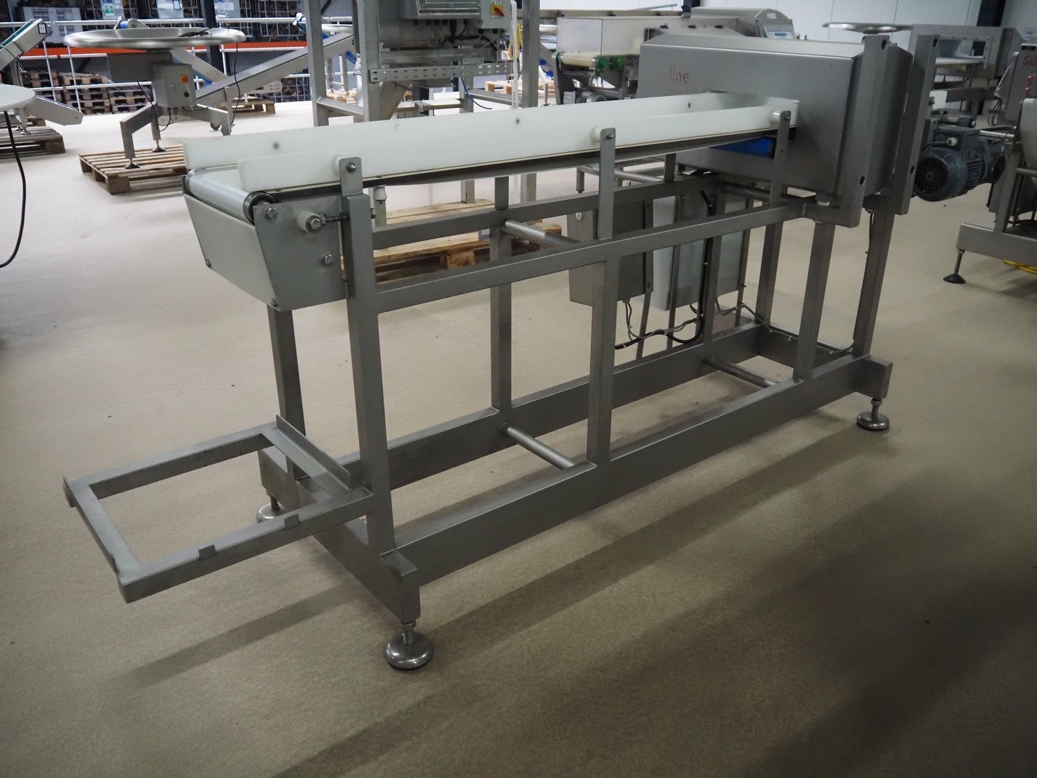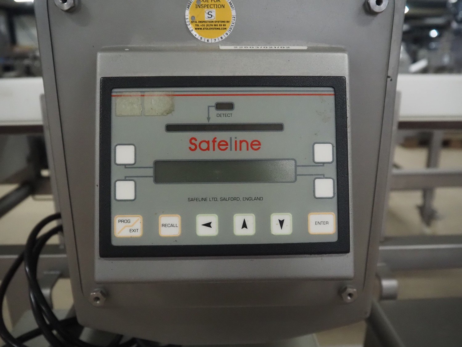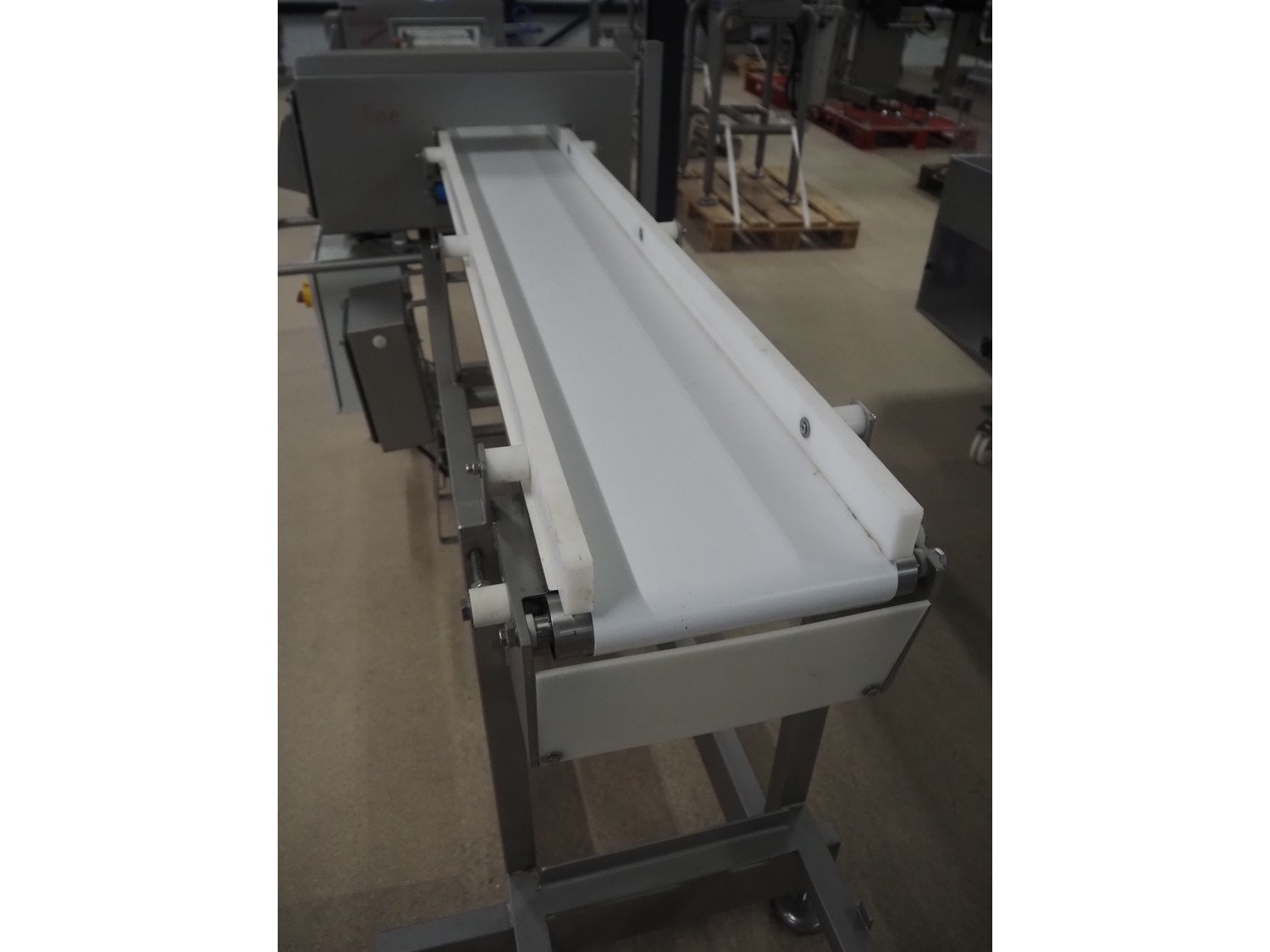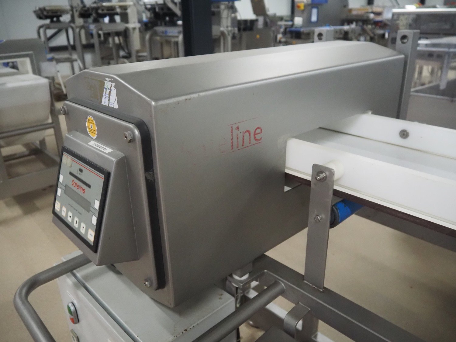 Safeline metal detector, plastic belt, belt width: 250 mm, clearance: 245 mm x 65 mm, total dimensions: 2550 mm x 950 mm x 1150 mm.