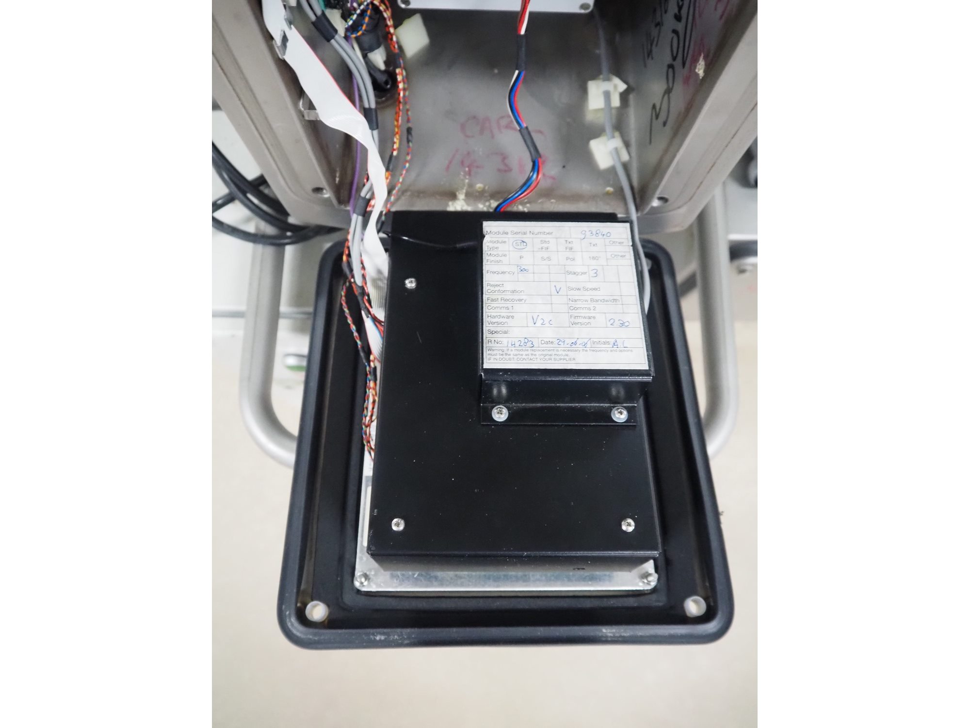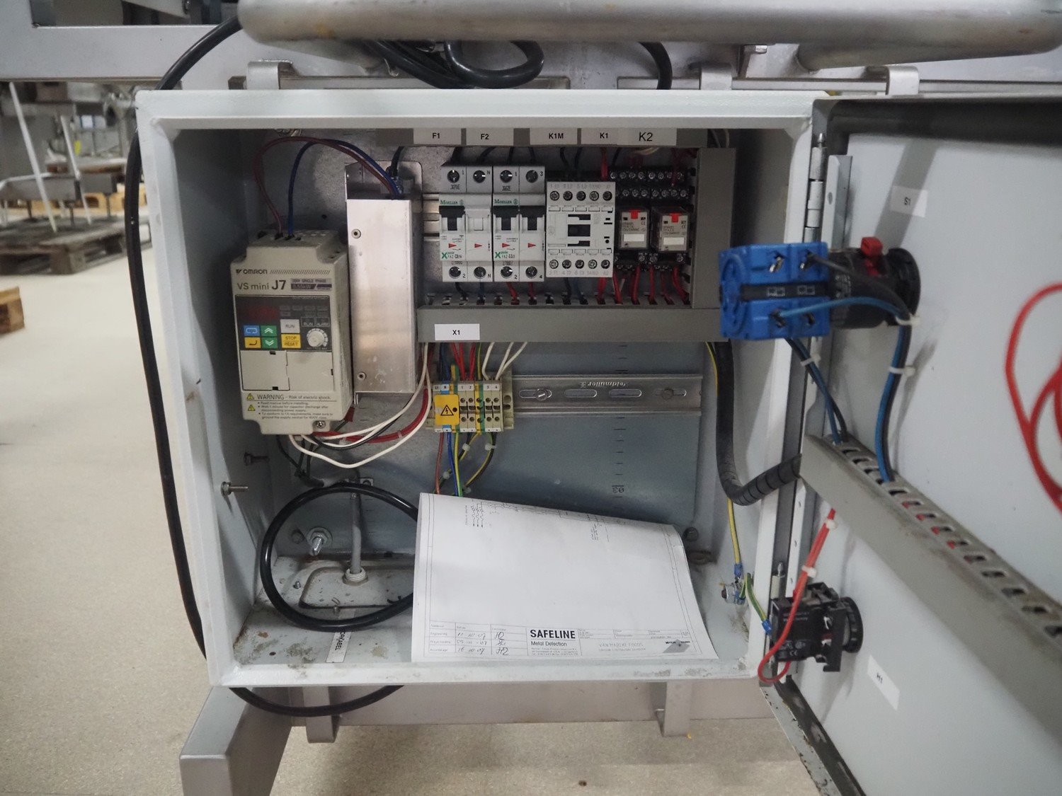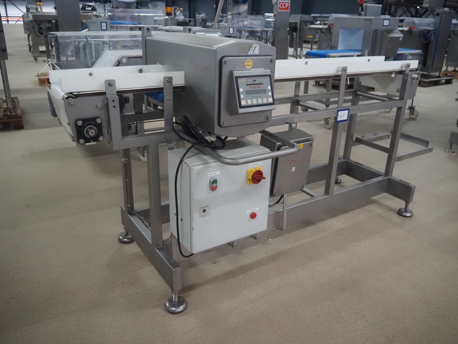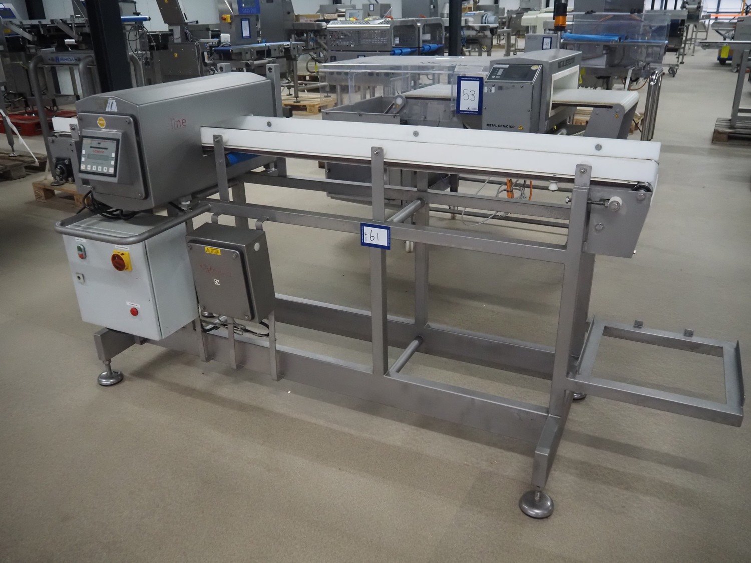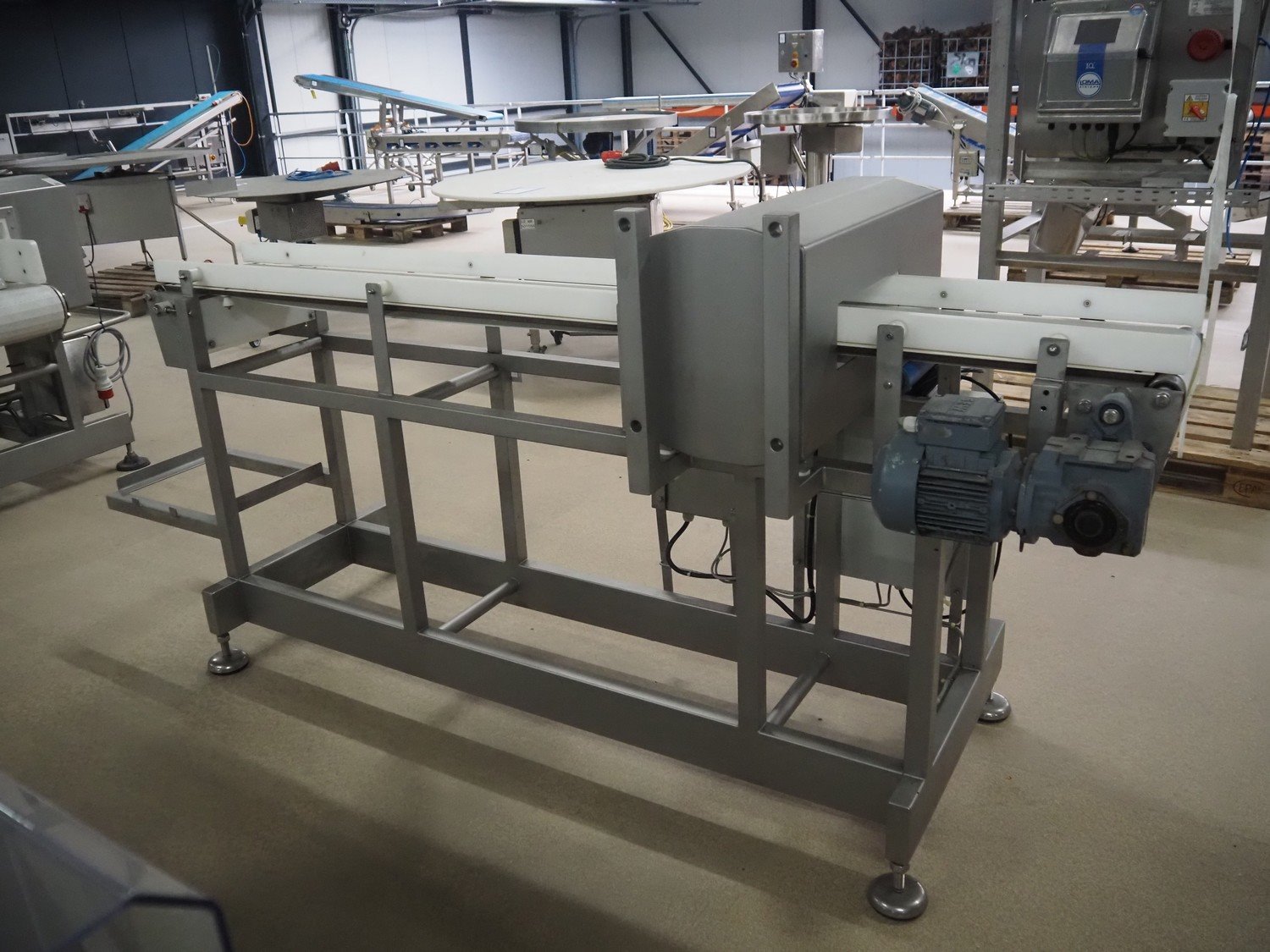 Safeline metal detector, plastic belt, belt width: 250 mm, clearance: 245 mm x 65 mm, total dimensions: 2550 mm x 950 mm x 1150 mm.