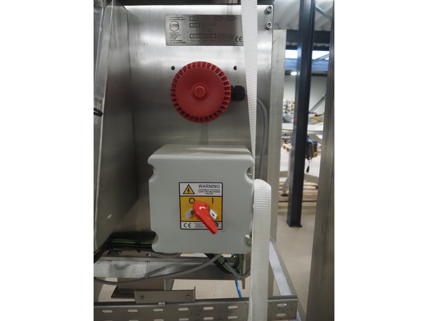 Loma Systems pipeline metal detector with rejector, model: DTL121135, serial number: 53537F, year of construction: 2013, 200 V, 60 Hz, 0.4 A, diameter pipe: 200 mm, total dimensions: 910 mm x 800 mm x 1950 mm.