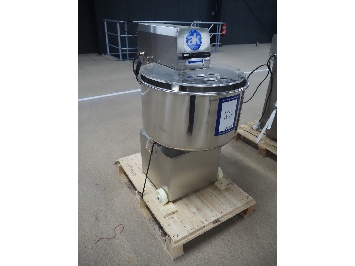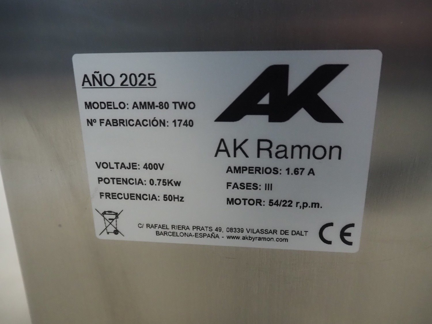 AK Ramon mixer, model: AMM-80 TWO, factory number: 1740, year of construction: 2025, 400 V, 3 Ph, 50 Hz, 1.67 A, 0.75 kW, 54/22 rpm, s/s bowl, volume: 80 liter, dimensions: 800 mm x 600 mm x 1000 mm.