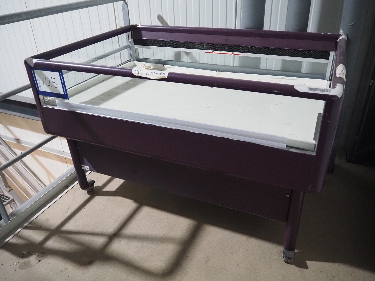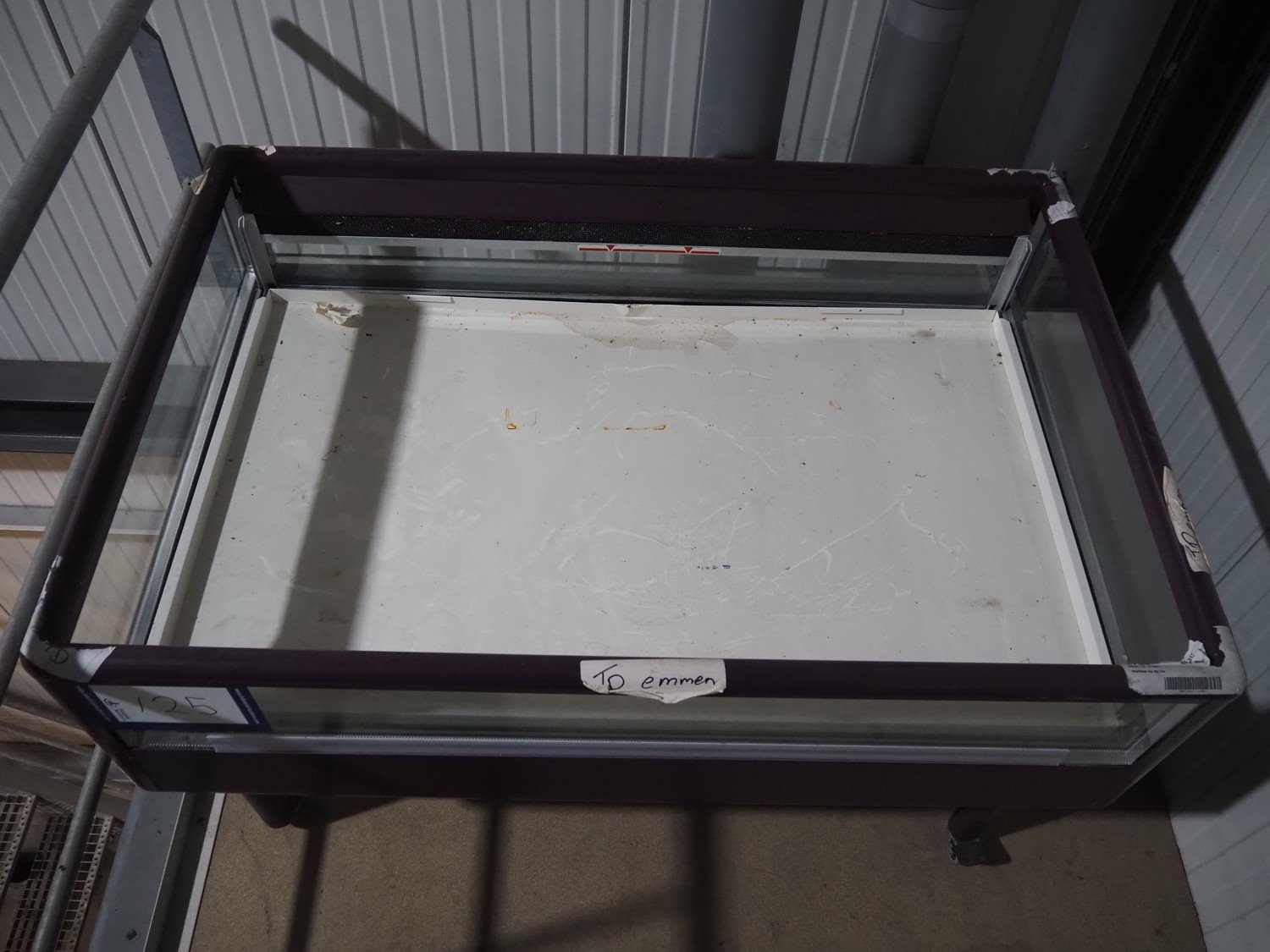 Mobile refrigeration showcase, dimensions: 1330 mm x 900 mm x 2050 mm.