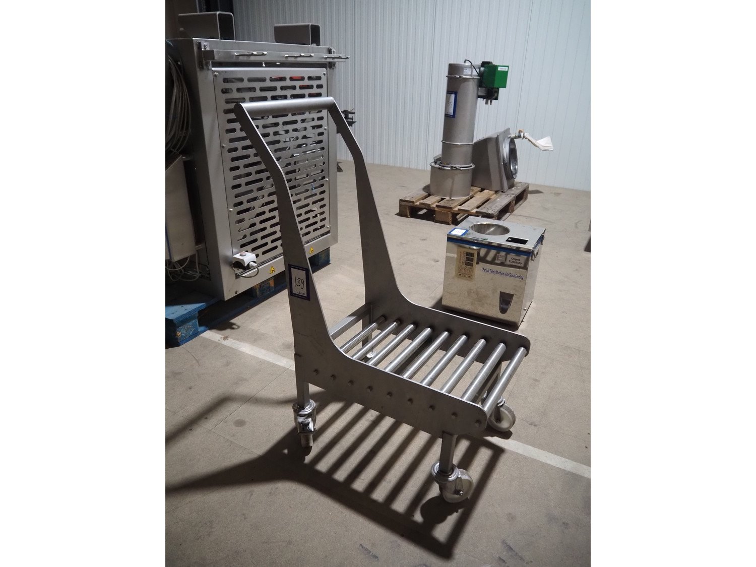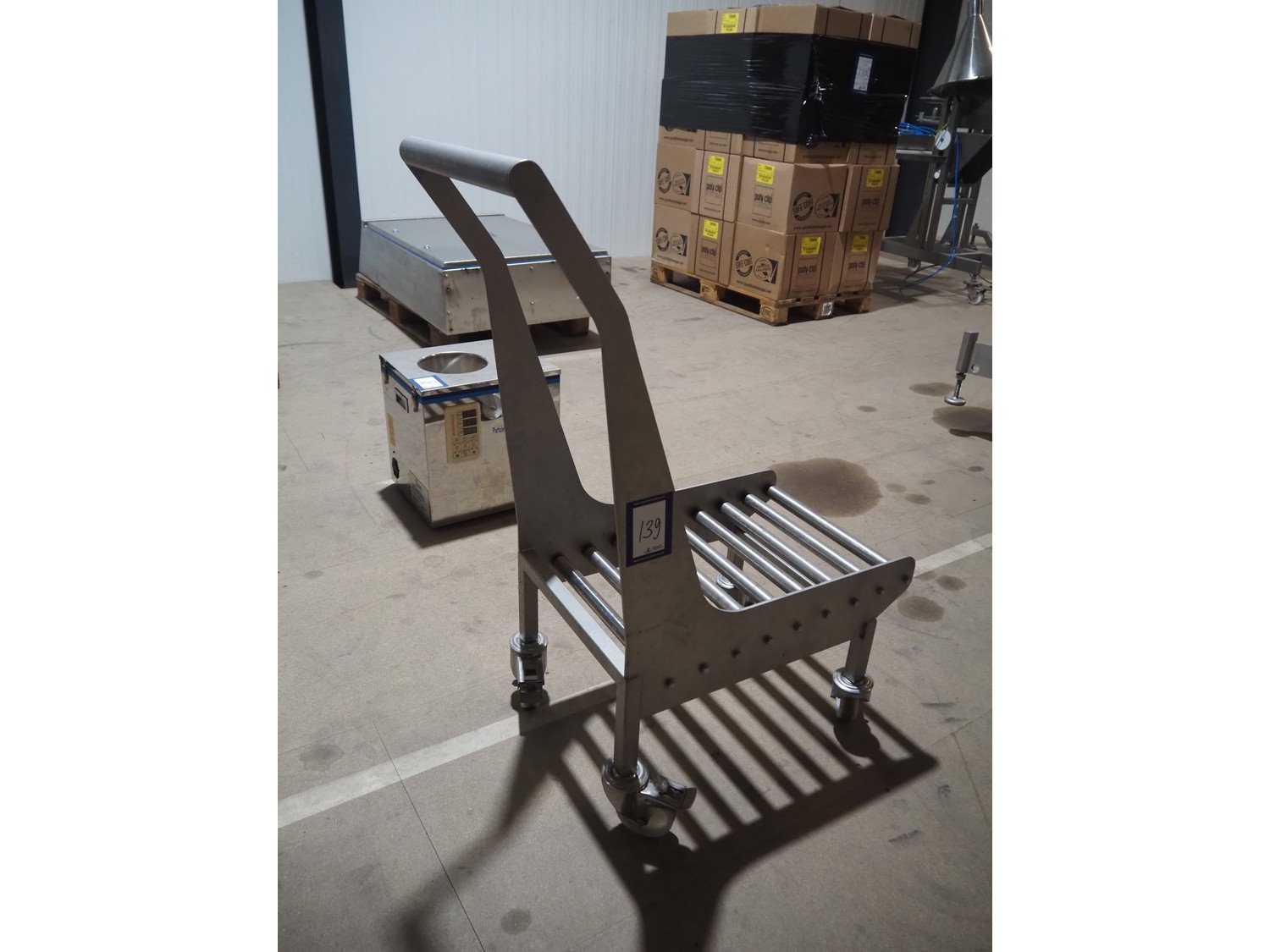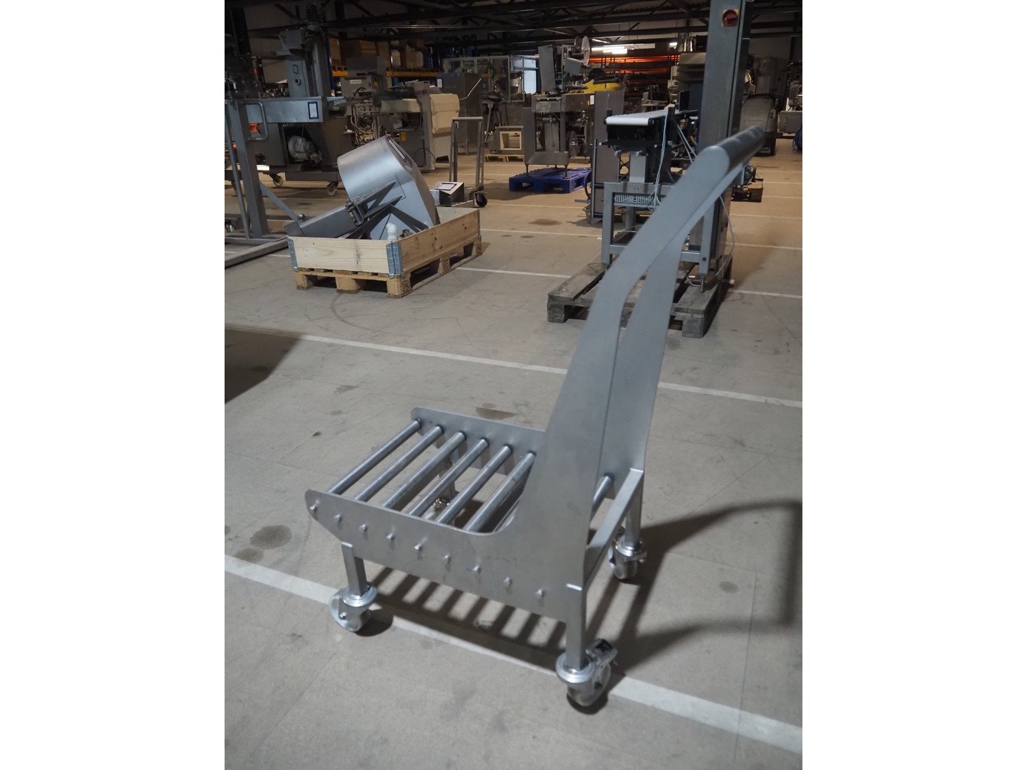 S/s trolley with s/s rollers, roller width: 385 mm, total dimensions: 800 mm x 420 mm x 1060 mm.