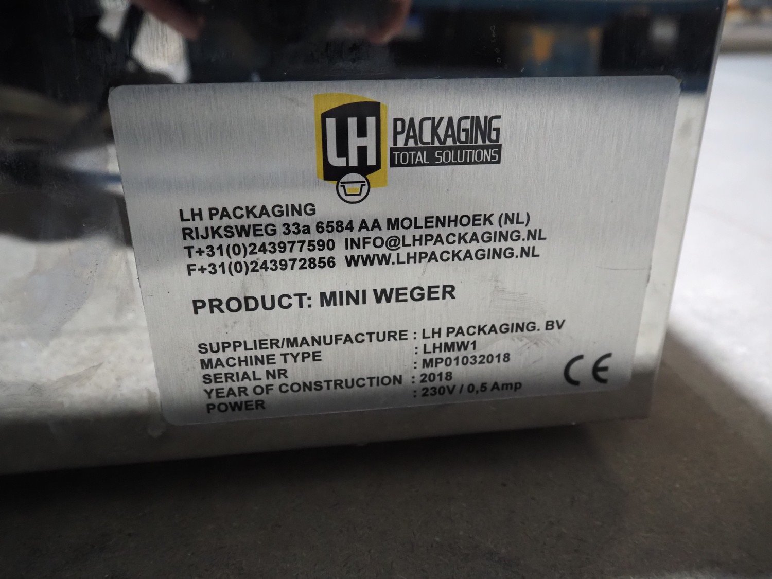 LH Packaging mini weighers, type: LHMW1, serial number: MP01032018, year of construction: 2018, 230 V, 0.5 A, dimensions: 400 mm x 360 mm x 420 mm.