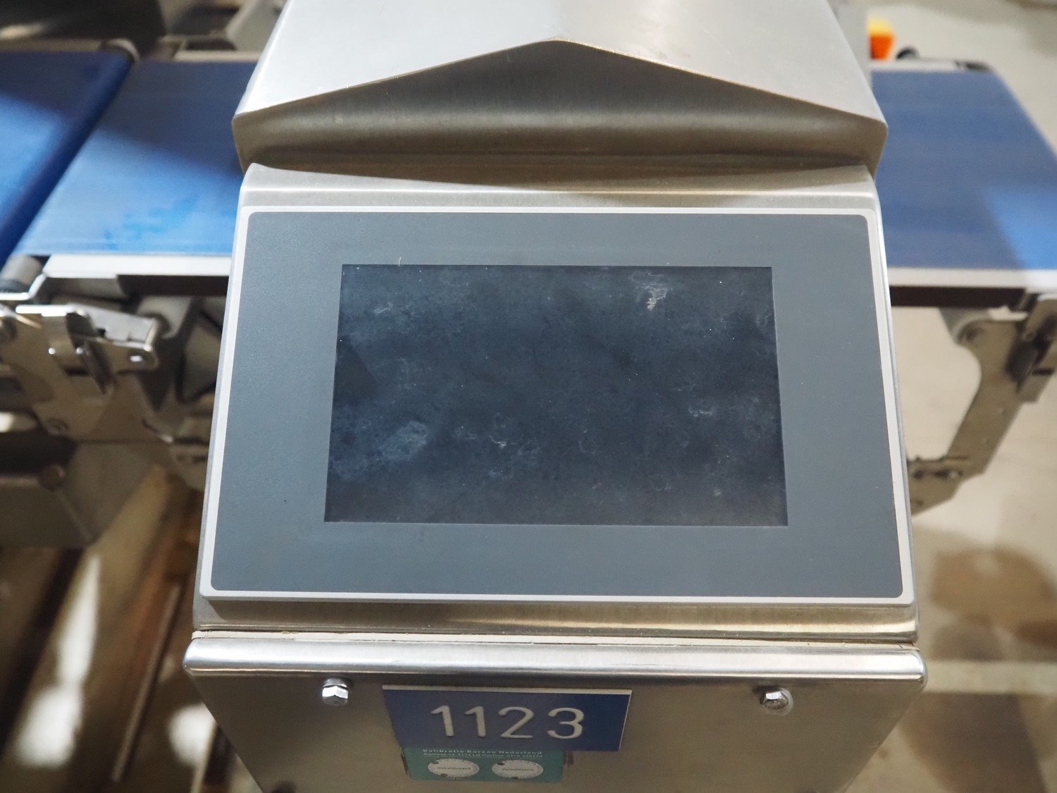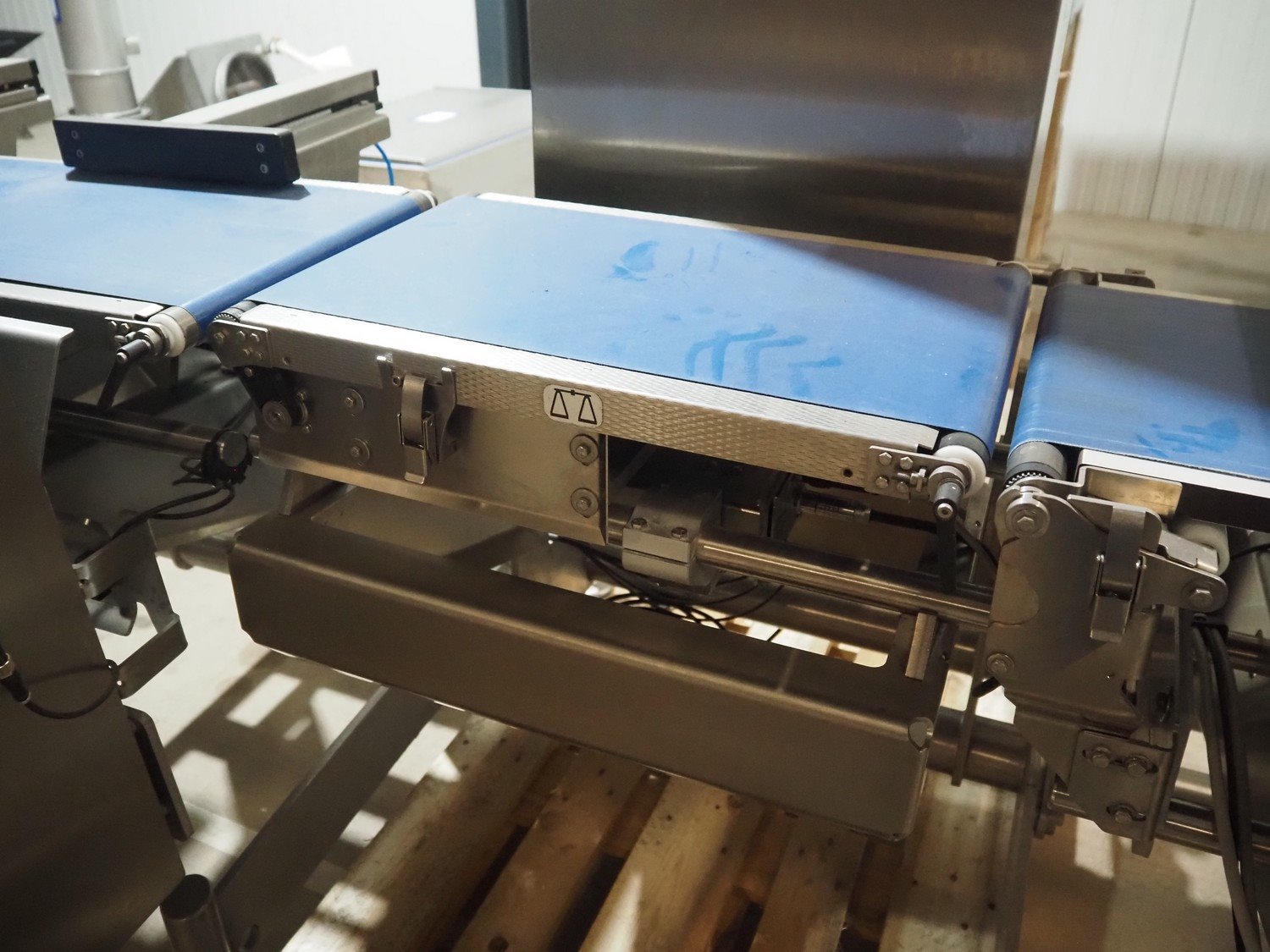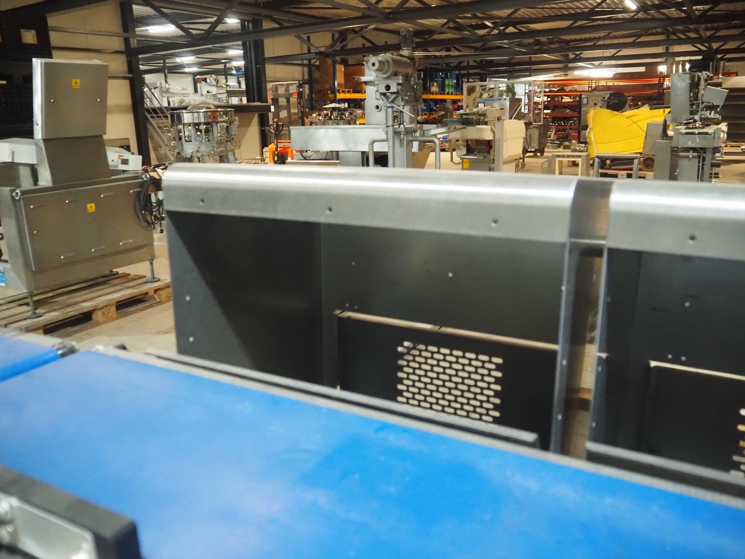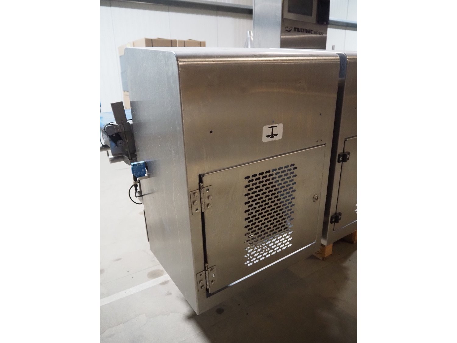 Multivac metal detector with checkweigher and 2 rejectors, metal detector type: GLS, serial number: 11406016720-H, 110/230 V, 50/60 Hz, 0.36/0.18 A, clearance: 400 mm x 100 mm, type Bizerba checkweigher: MR8, number: 10996651, 120/220/240 V, 50/60 Hz, 5.0/3.0 A, maximum capacity: 1500/3000 g, minimum capacity: 50 g, plastic belts, belt width: 300 mm, total dimensions: 2650 mm x 1350 mm x 1820 mm.