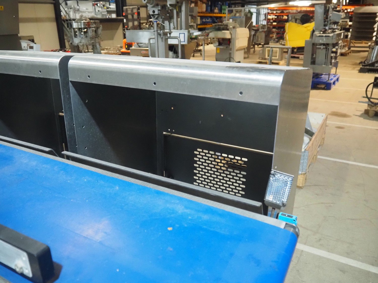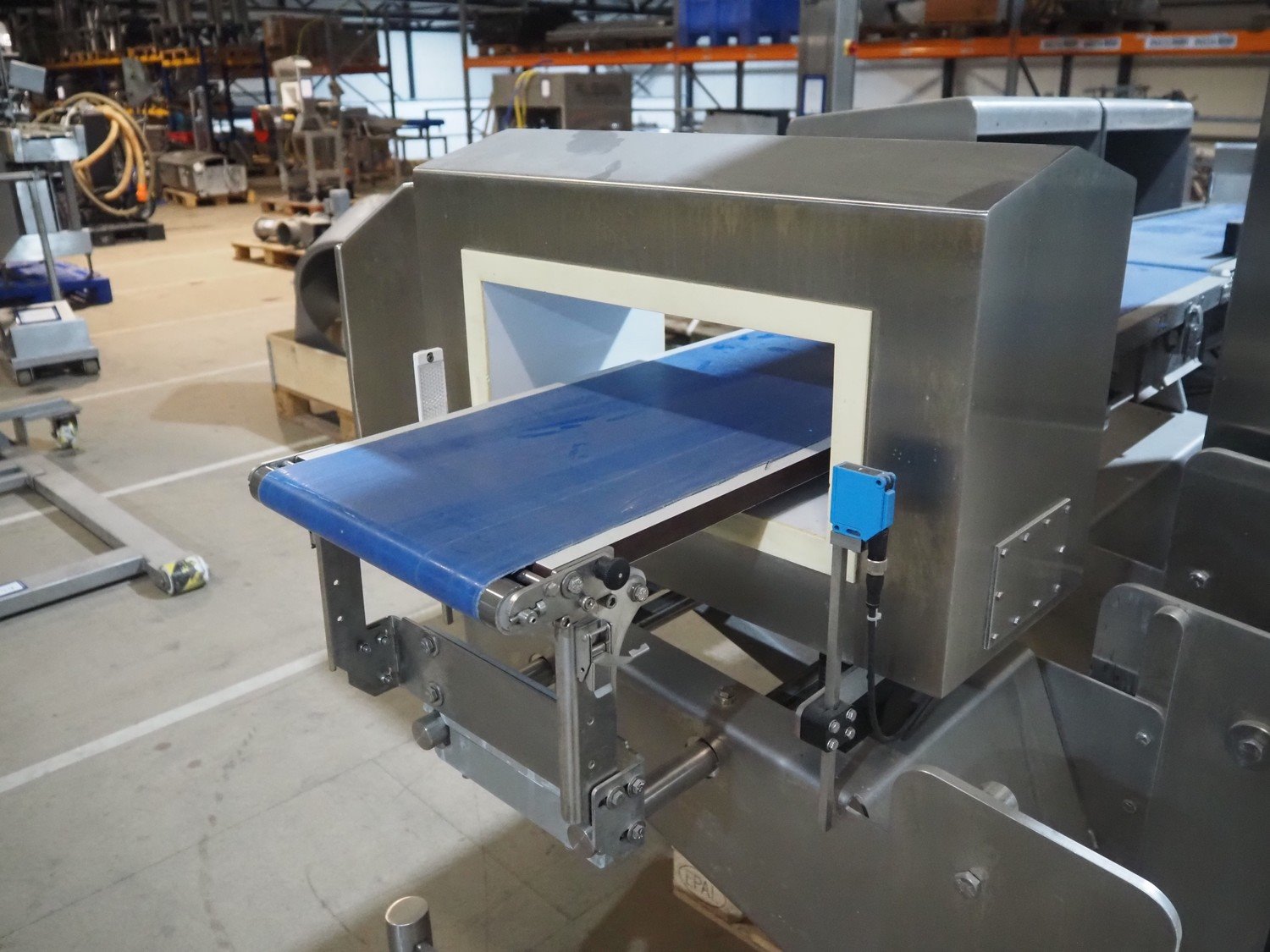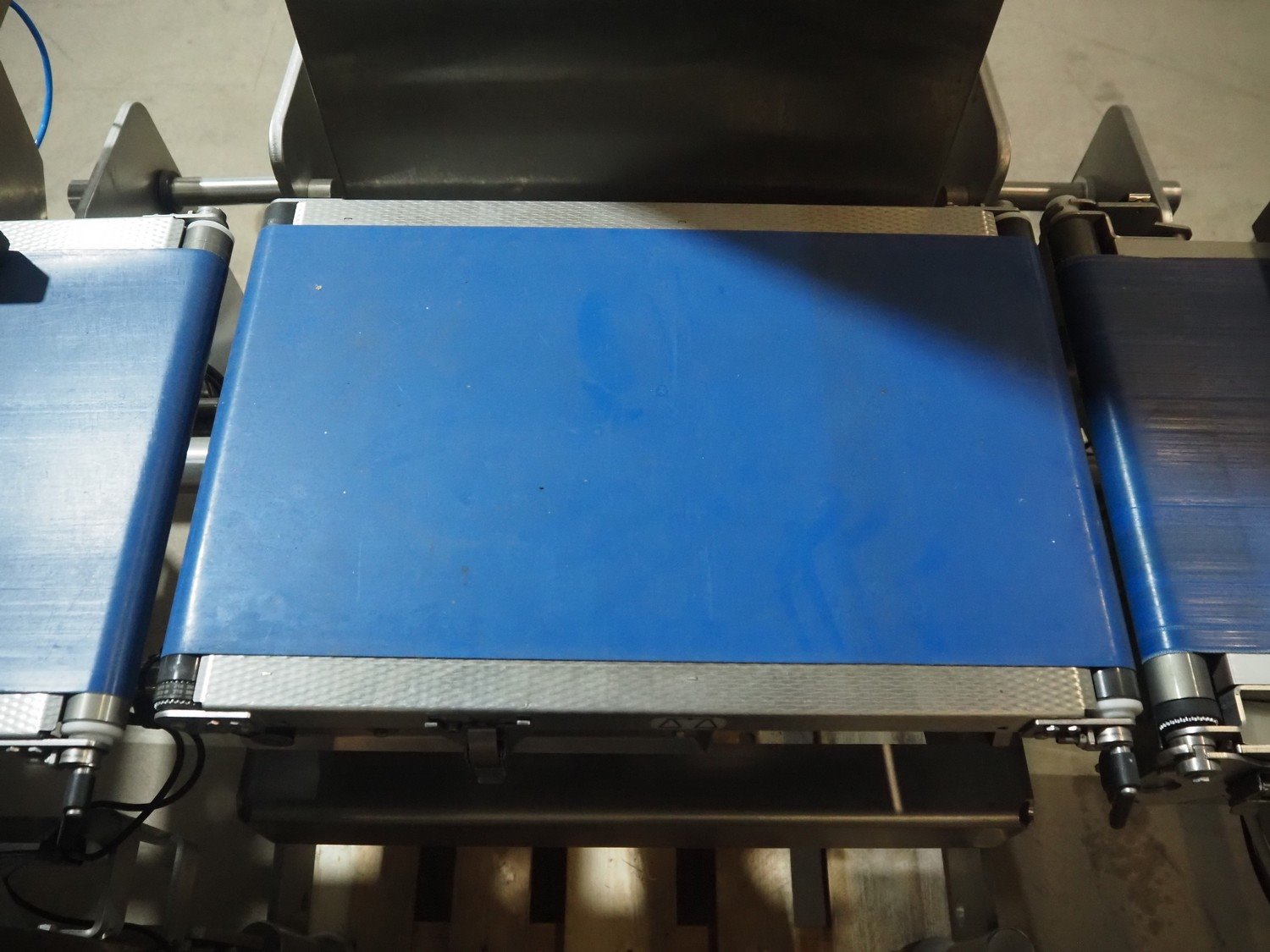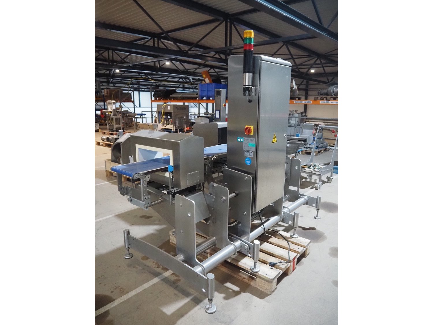 Multivac metal detector with checkweigher and 2 rejectors, metal detector type: GLS, serial number: 11406016720-H, 110/230 V, 50/60 Hz, 0.36/0.18 A, clearance: 400 mm x 100 mm, type Bizerba checkweigher: MR8, number: 10996651, 120/220/240 V, 50/60 Hz, 5.0/3.0 A, maximum capacity: 1500/3000 g, minimum capacity: 50 g, plastic belts, belt width: 300 mm, total dimensions: 2650 mm x 1350 mm x 1820 mm.