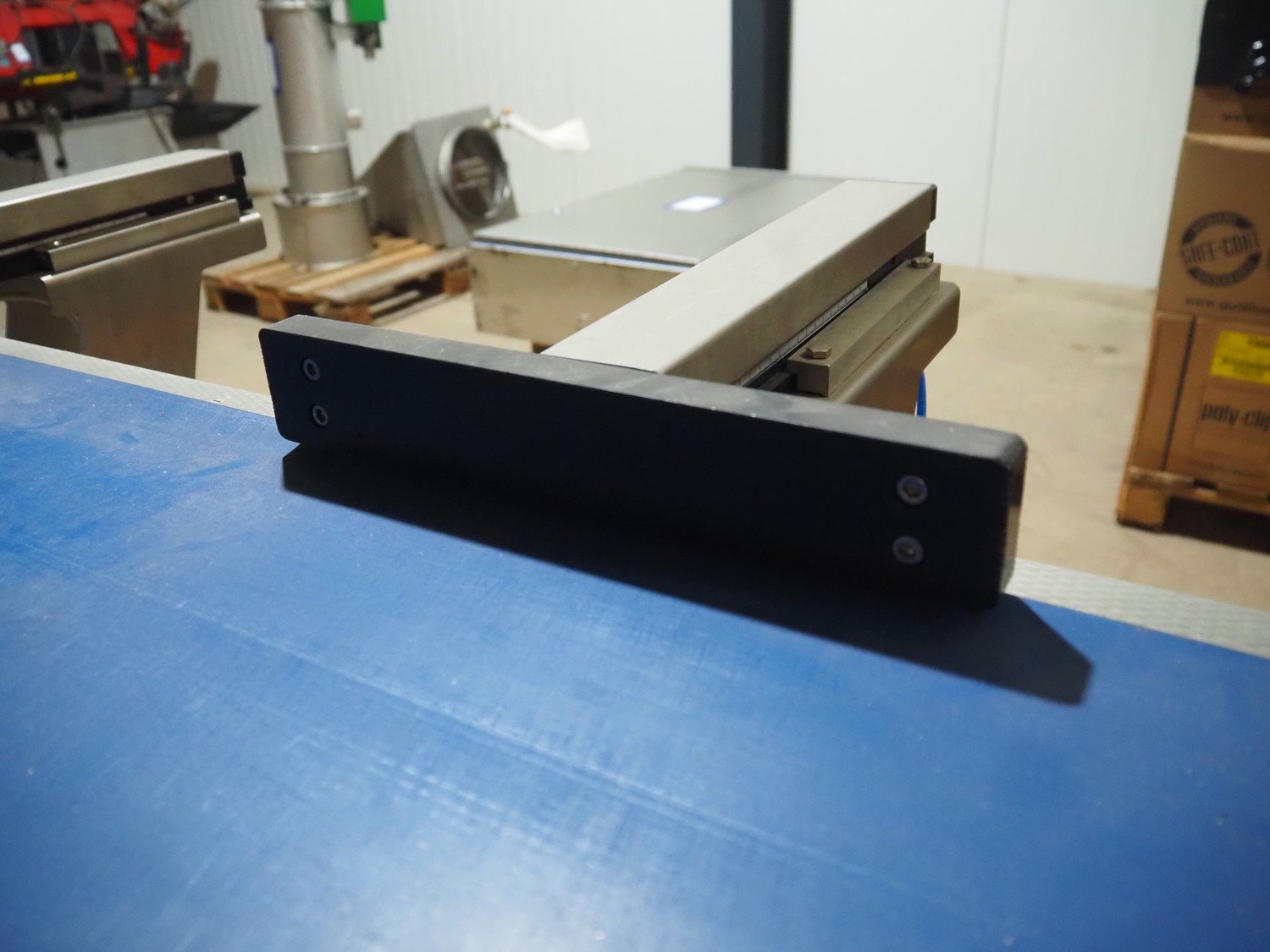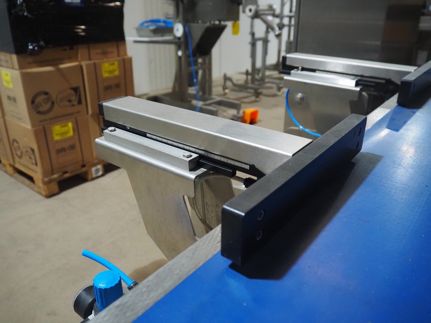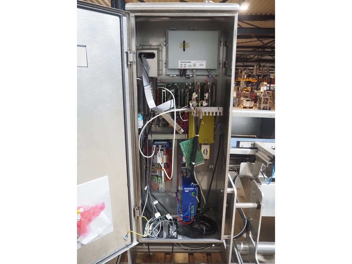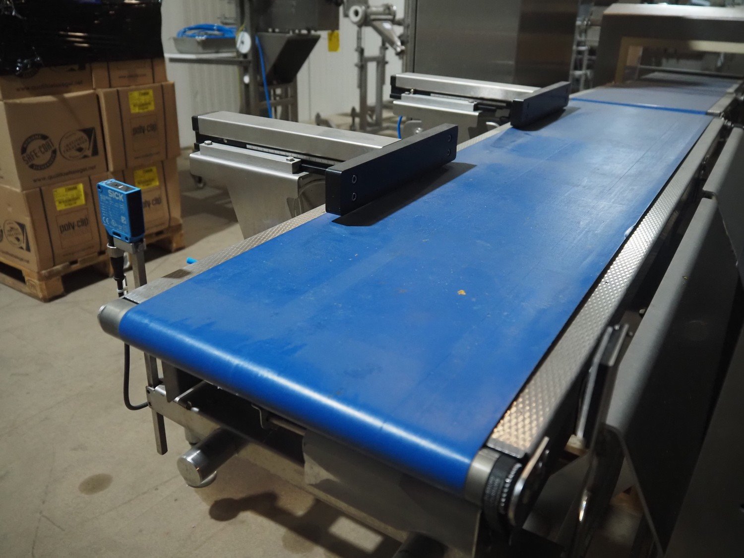 Multivac metal detector with checkweigher and 2 rejectors, metal detector type: GLS, serial number: 11406016720-H, 110/230 V, 50/60 Hz, 0.36/0.18 A, clearance: 400 mm x 100 mm, type Bizerba checkweigher: MR8, number: 10996651, 120/220/240 V, 50/60 Hz, 5.0/3.0 A, maximum capacity: 1500/3000 g, minimum capacity: 50 g, plastic belts, belt width: 300 mm, total dimensions: 2650 mm x 1350 mm x 1820 mm.