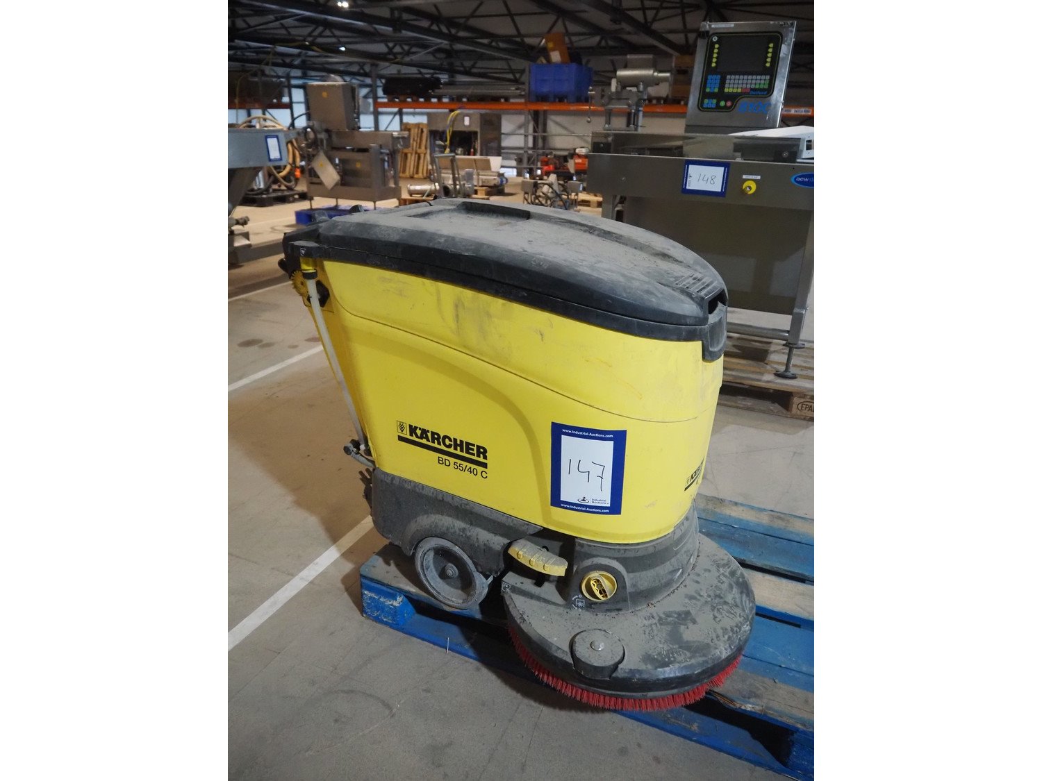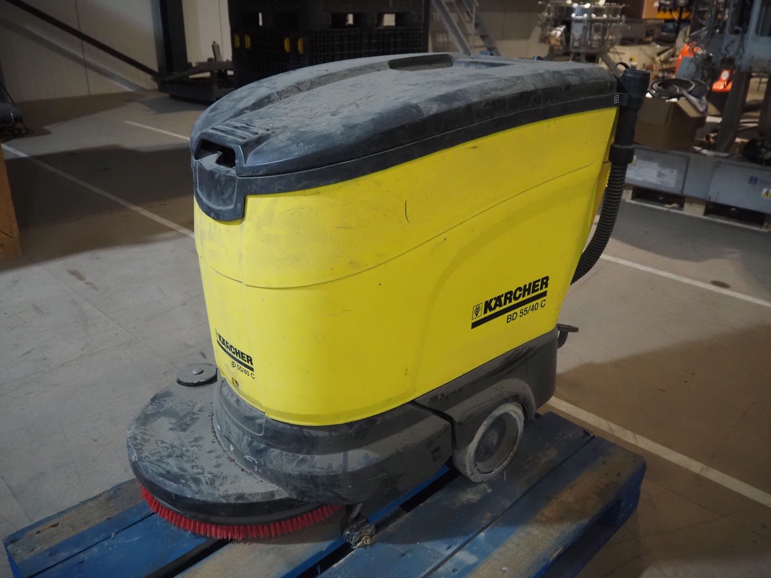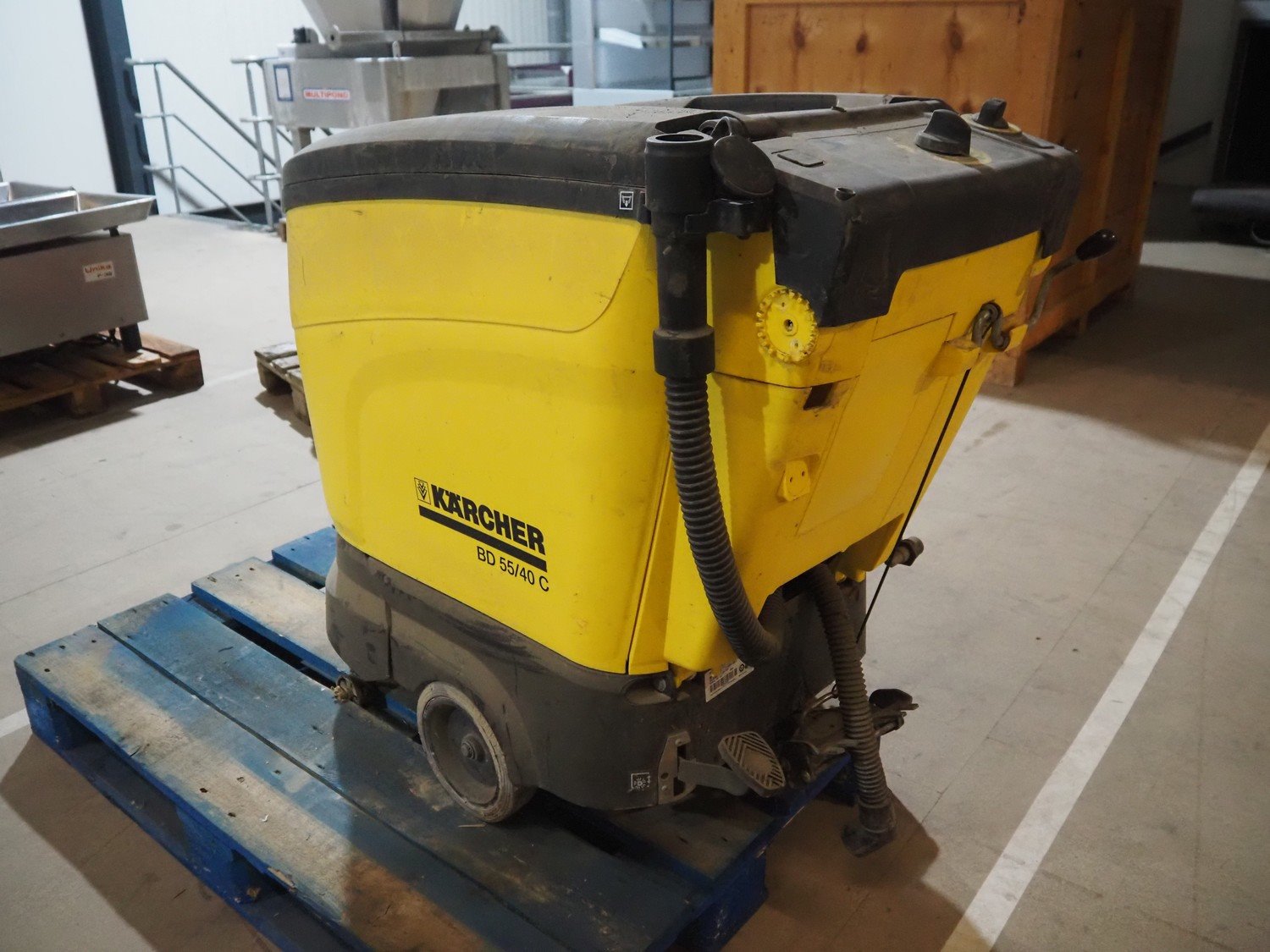 Kärcher floor scrubbing machine, model: BD 55/40 C Bp, serial number: 010483, year of construction: 2008, weight: 80 kg, dimensions: 1000 mm x 700 mm x 900 mm.