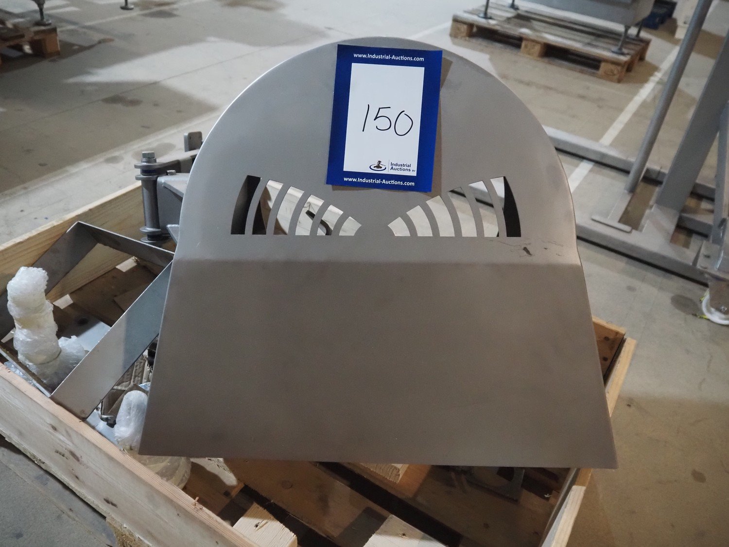 Pallet with s/s parts for grinder, dimensions: 1200 mm x 800 mm x 600 mm.