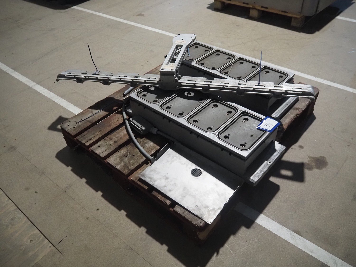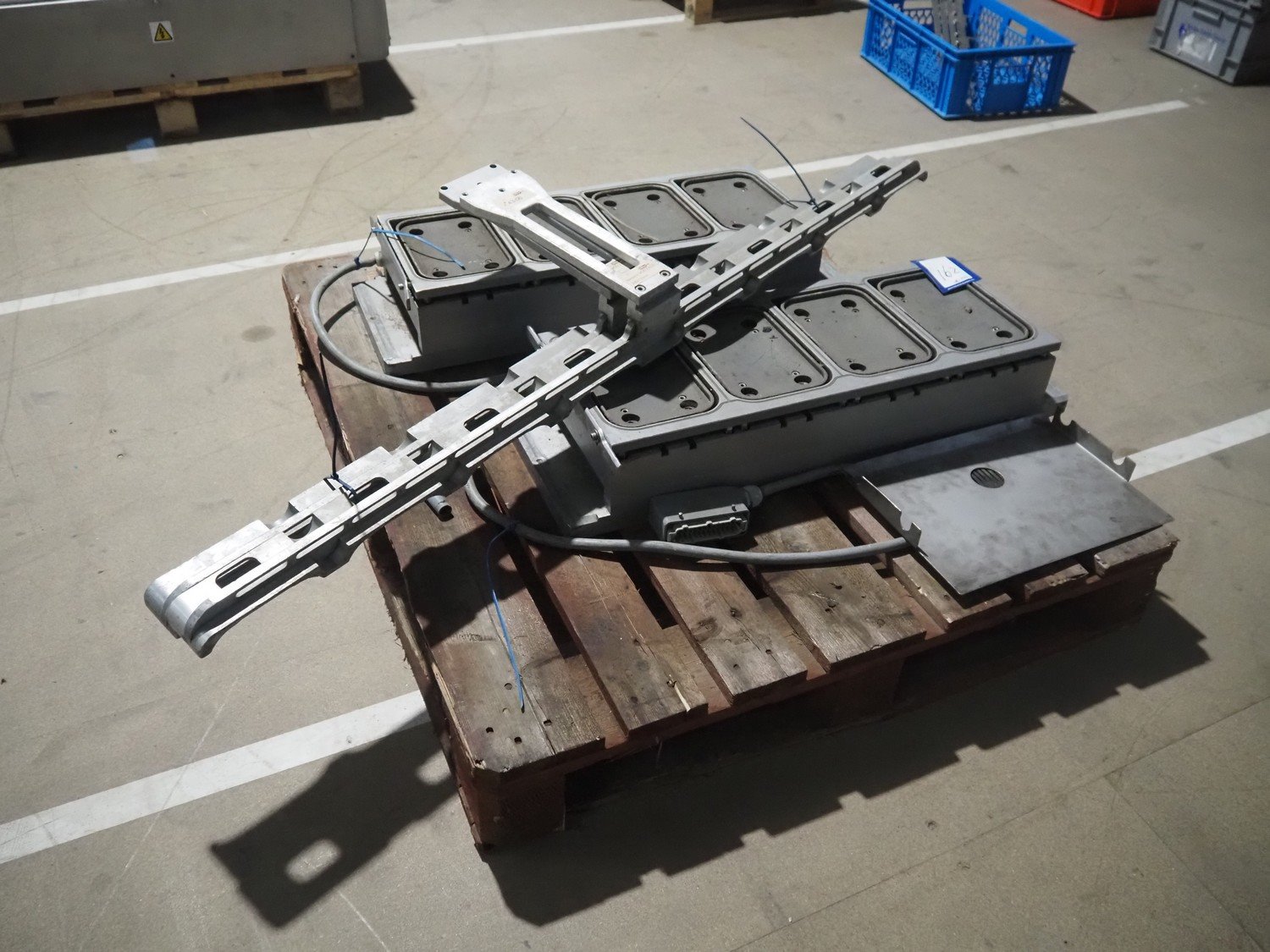 Pallet with dye for Ulma traysealer, dye: (4x) 230 mm x 153 mm, total dimensions: 1200 mm x 1000 mm x 400 mm.