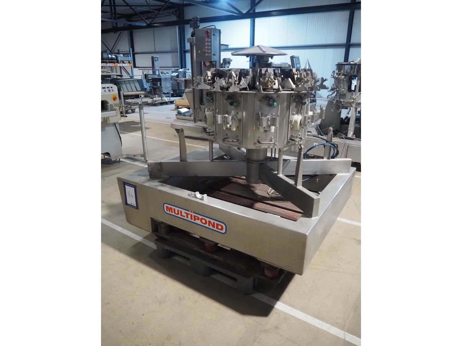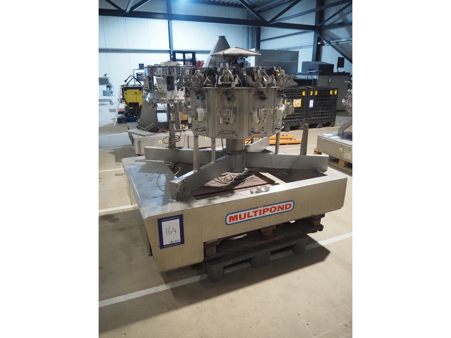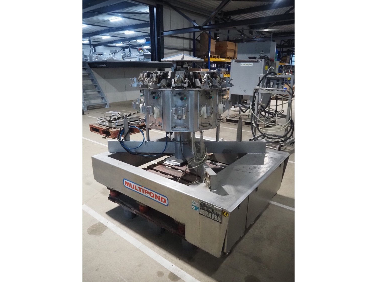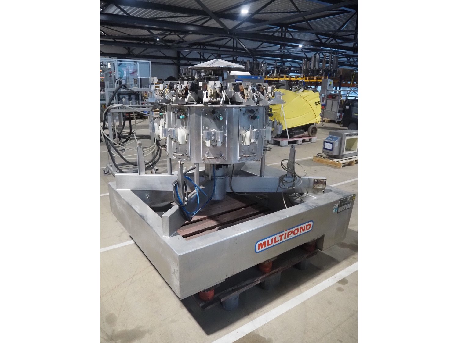 Multipond 10 head multihead weigher, type: 1014 D, factory number: 1053, year of construction: 1997, dimensions: 1500 mm x 1500 mm x 1100 mm. Incomplete.