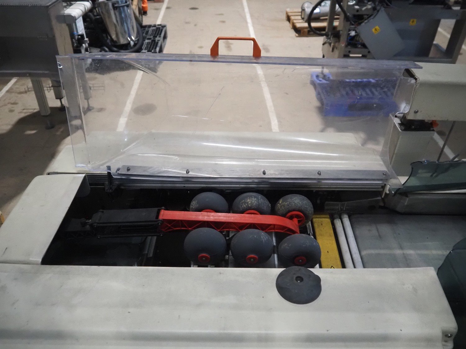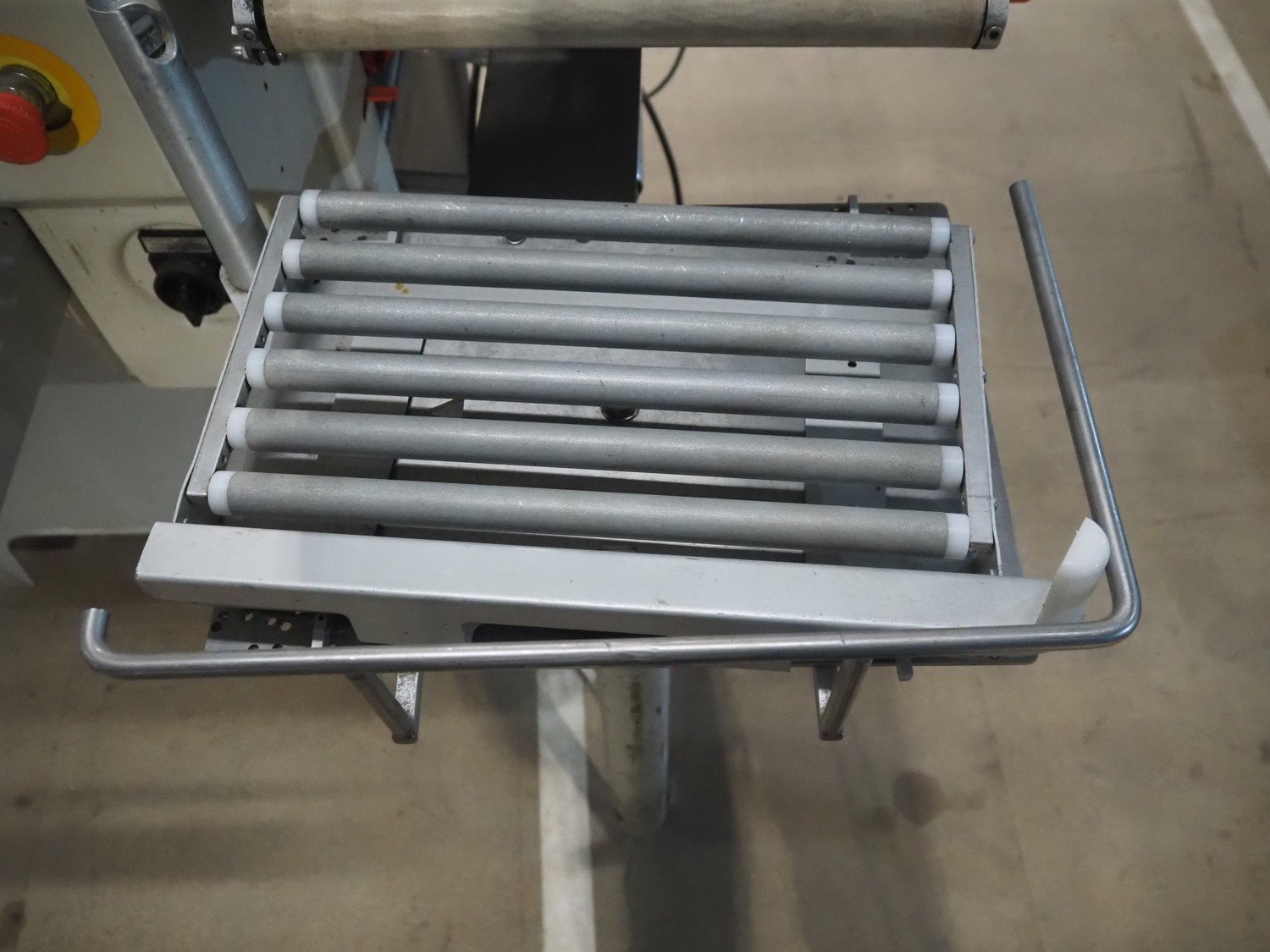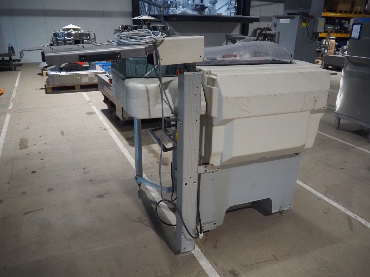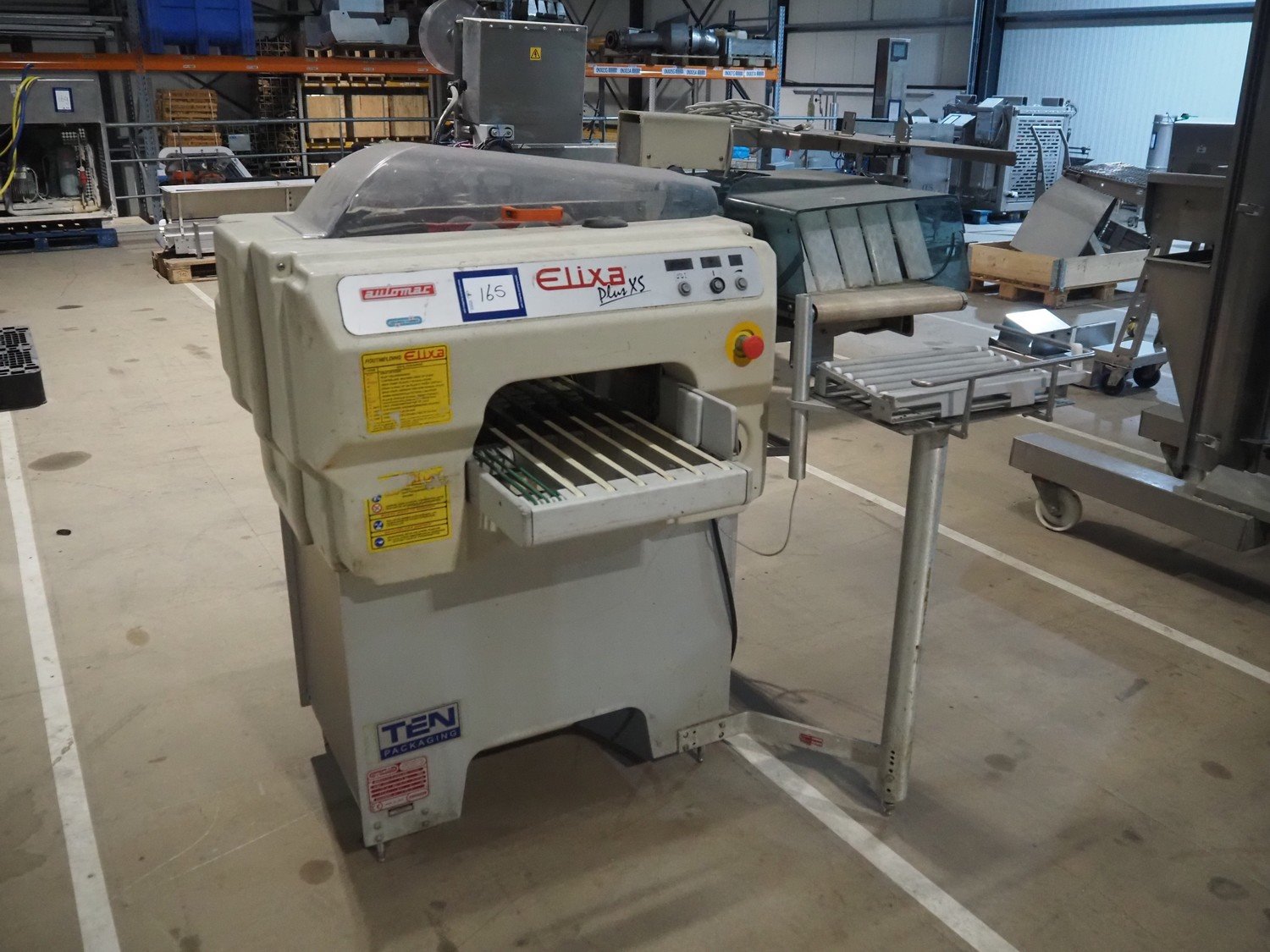 Gruppo Fabbri S.p.A. packaging machine, model: Elixa Plus XS-B.228.XS, serial number: 1/13420, year of construction: 2010, 230 V, 1 Ph, 50-60 Hz, 8,6 A, weight: 170 kg, wire infeed belt, belt width: 662 mm, plastic outfeed belt, belt width: 340 mm, total dimensions: 1500 mm x 1300 mm x 1350 mm.