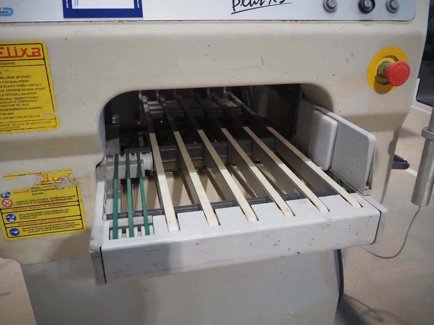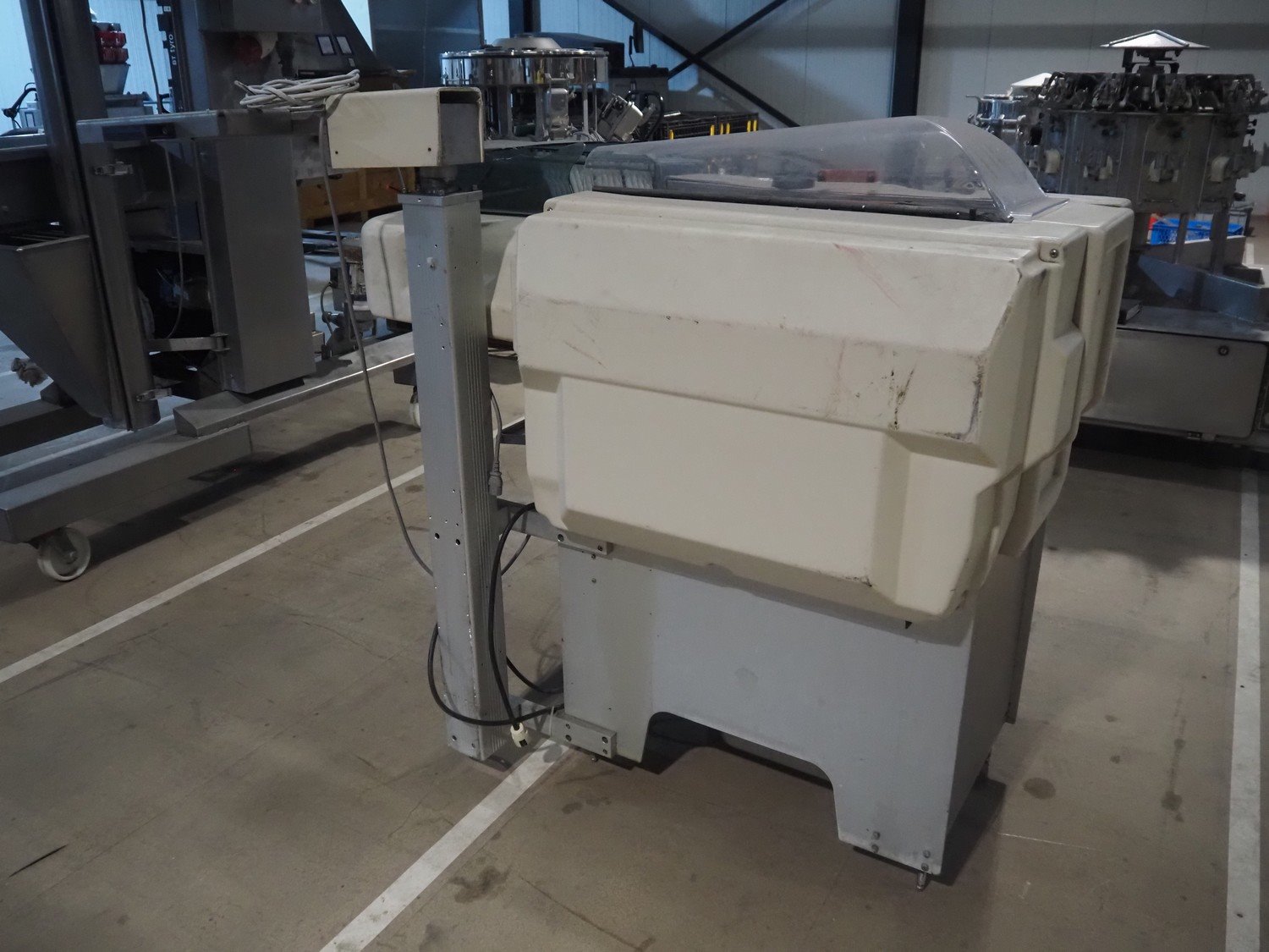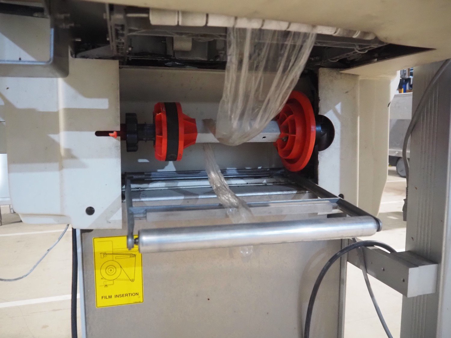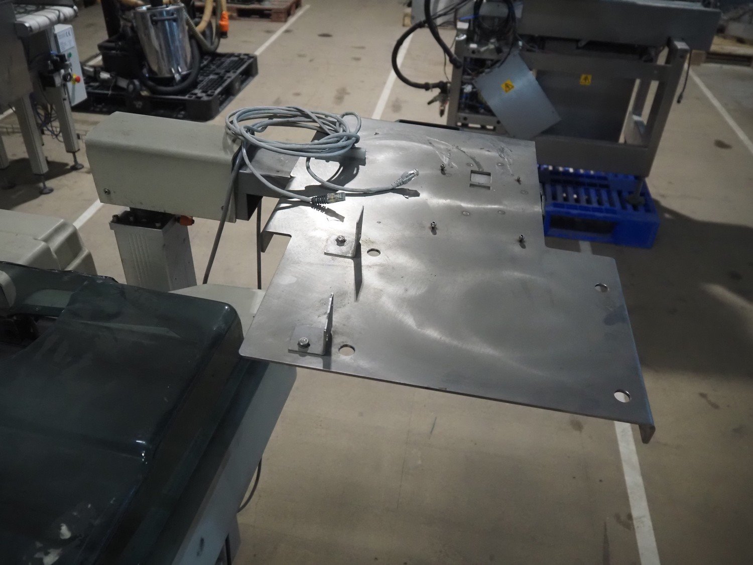 Gruppo Fabbri S.p.A. packaging machine, model: Elixa Plus XS-B.228.XS, serial number: 1/13420, year of construction: 2010, 230 V, 1 Ph, 50-60 Hz, 8,6 A, weight: 170 kg, wire infeed belt, belt width: 662 mm, plastic outfeed belt, belt width: 340 mm, total dimensions: 1500 mm x 1300 mm x 1350 mm.