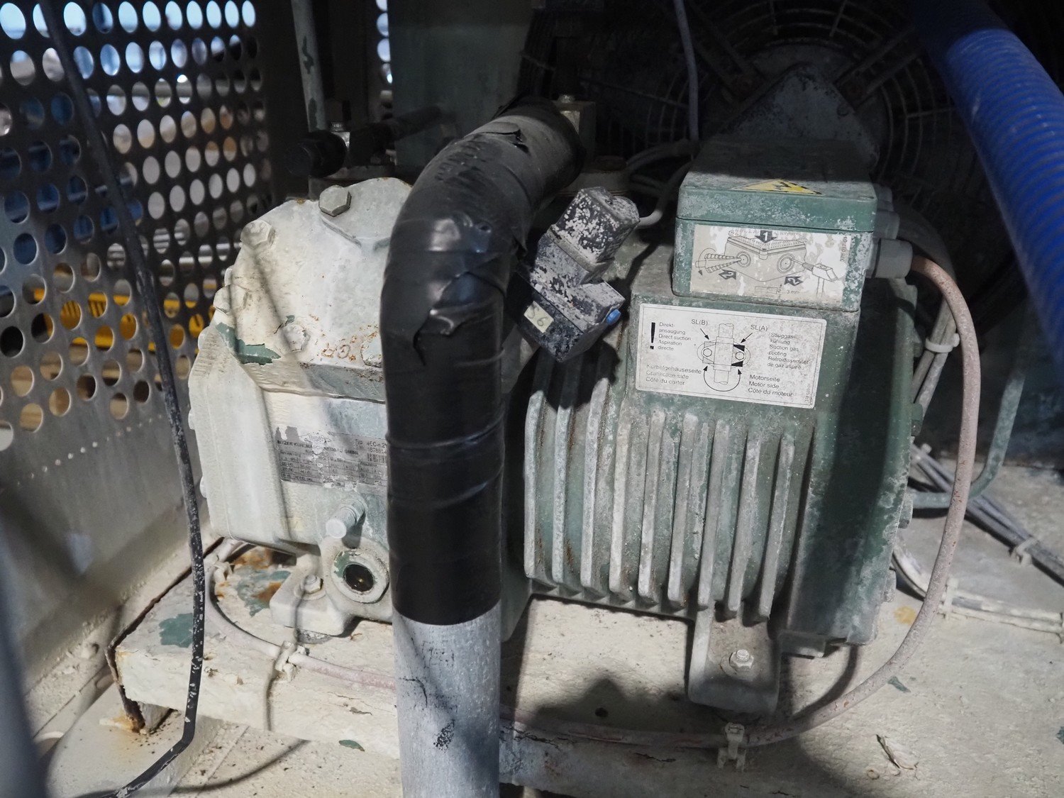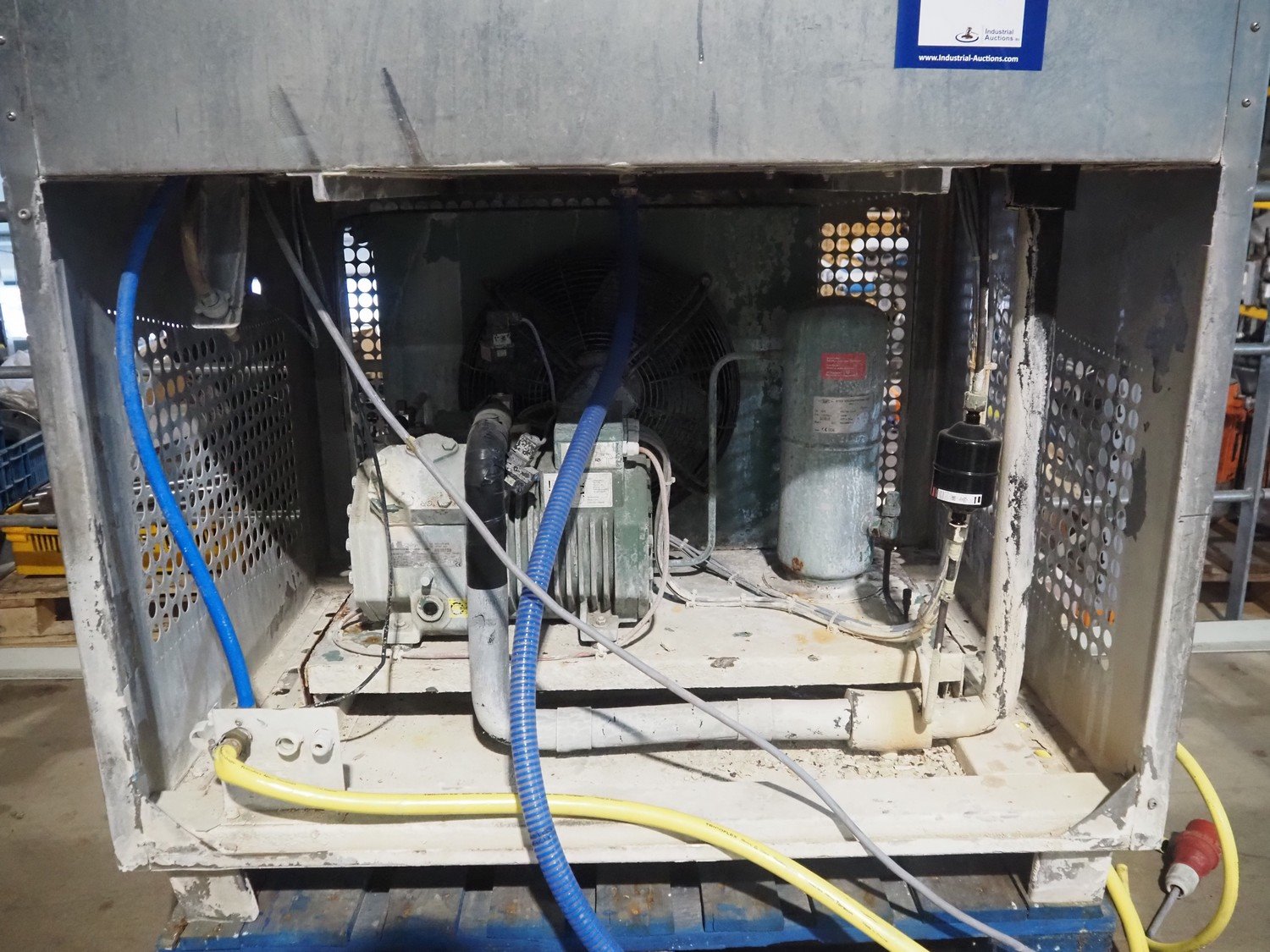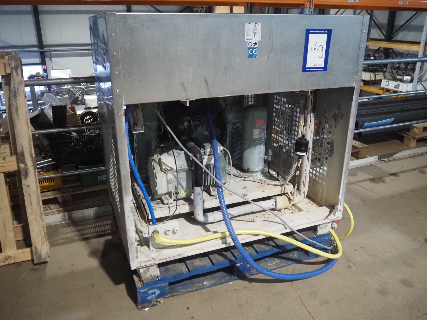 Funk flake ice machine, working width: 560 mm, Bizerba cooling and condensing unit, compressor type: 4EC-4.2Y-40S, serial number: 1678814521, 22.7/27.4 m³ per hour, dimensions: 1250 mm x 1000 mm x 1270 mm.