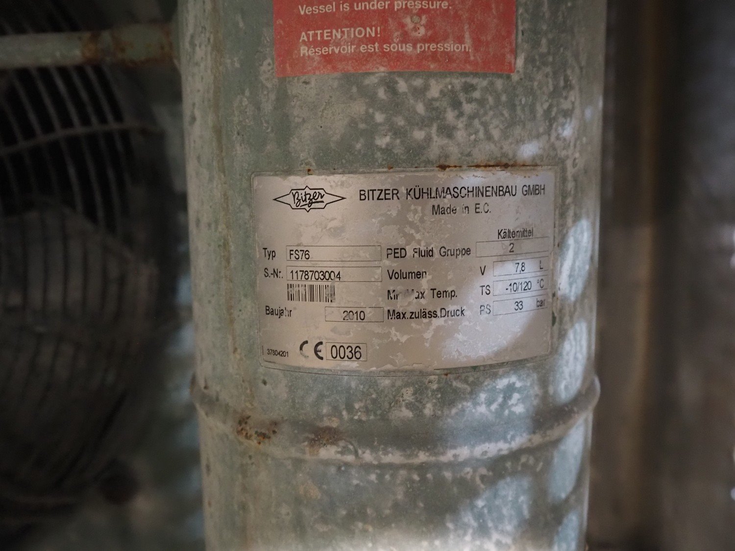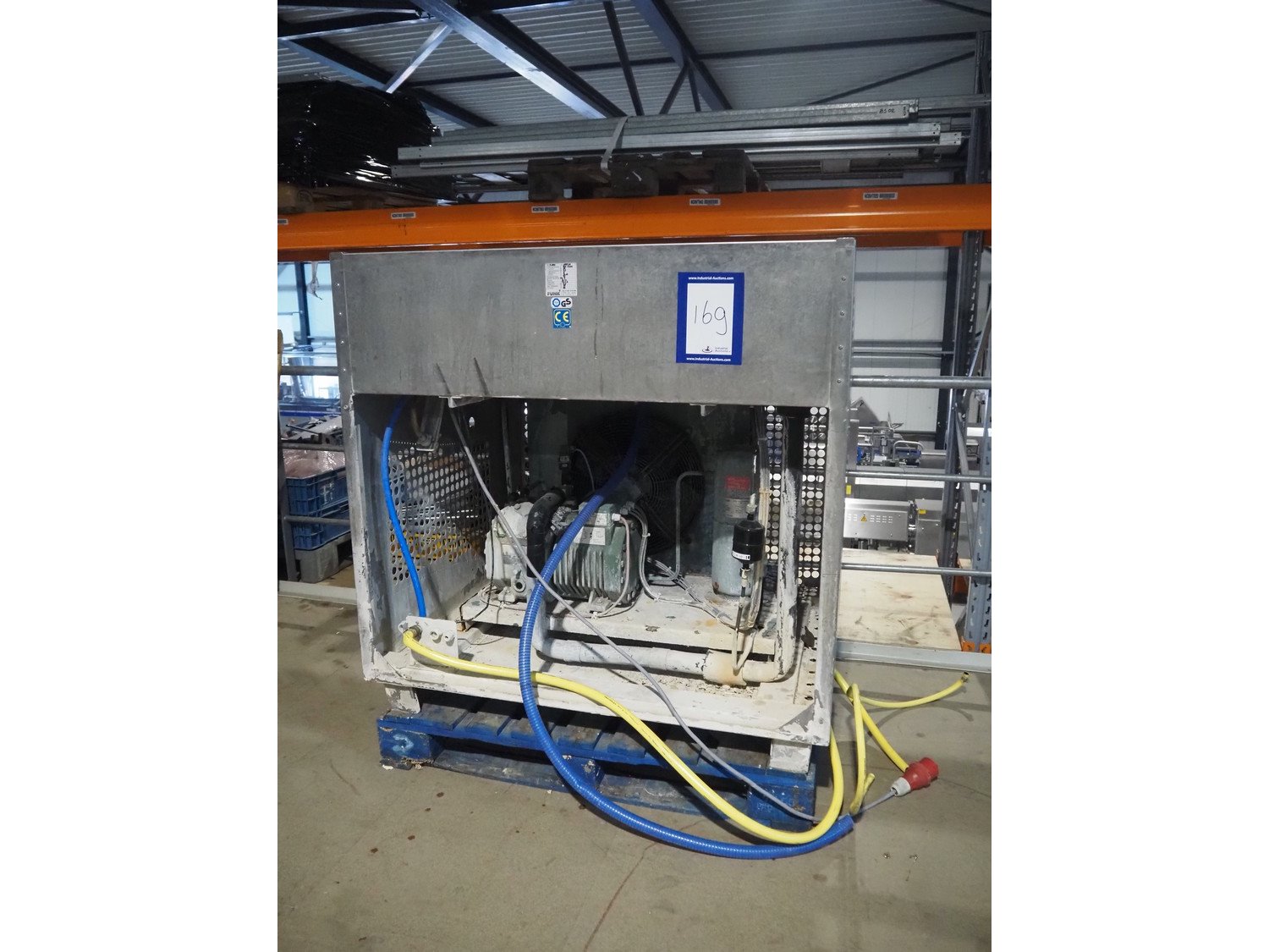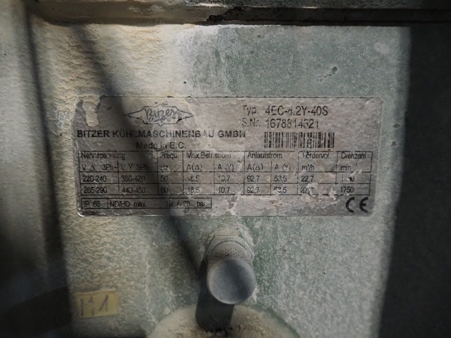 Funk flake ice machine, working width: 560 mm, Bizerba cooling and condensing unit, compressor type: 4EC-4.2Y-40S, serial number: 1678814521, 22.7/27.4 m³ per hour, dimensions: 1250 mm x 1000 mm x 1270 mm.