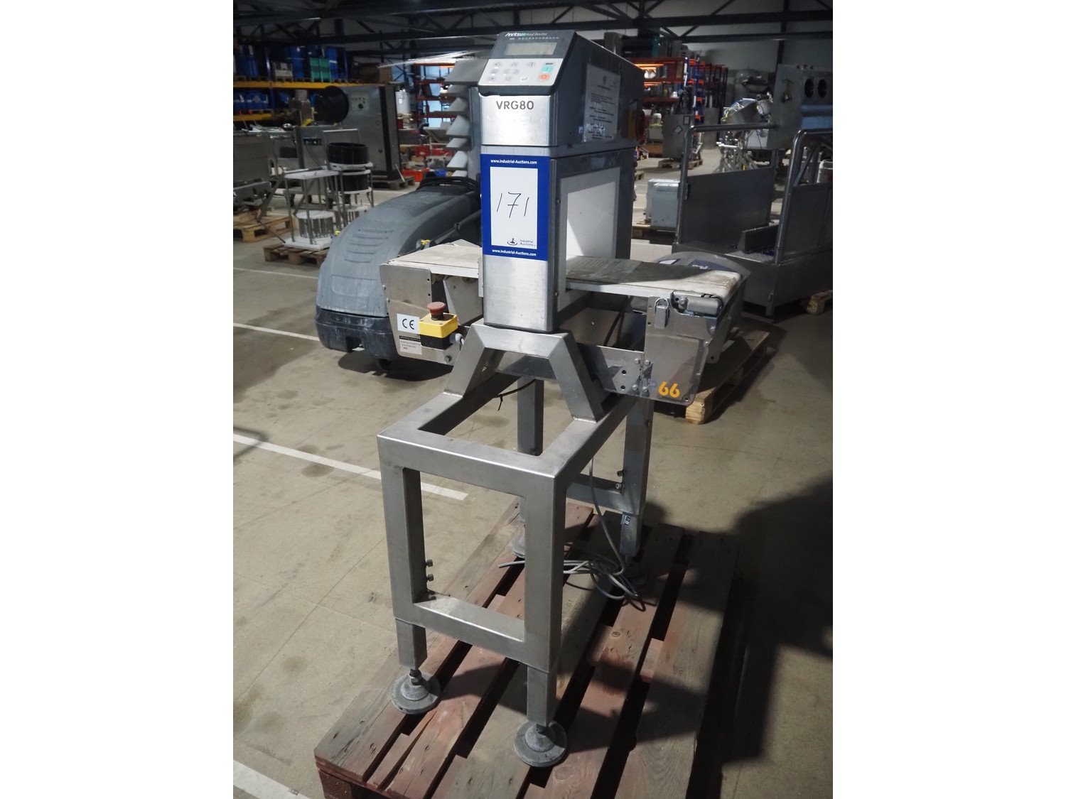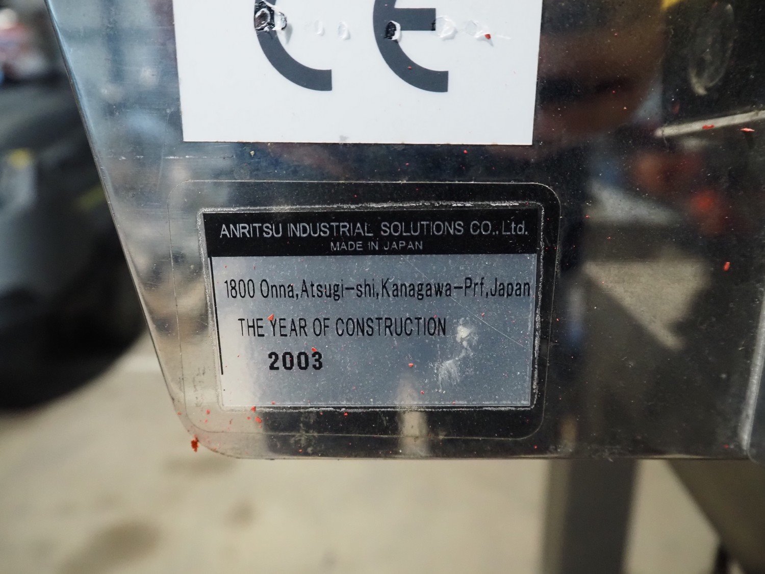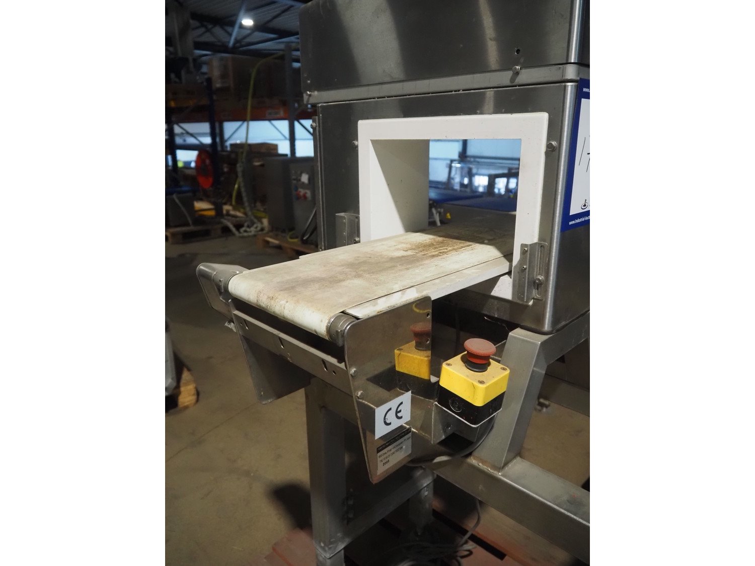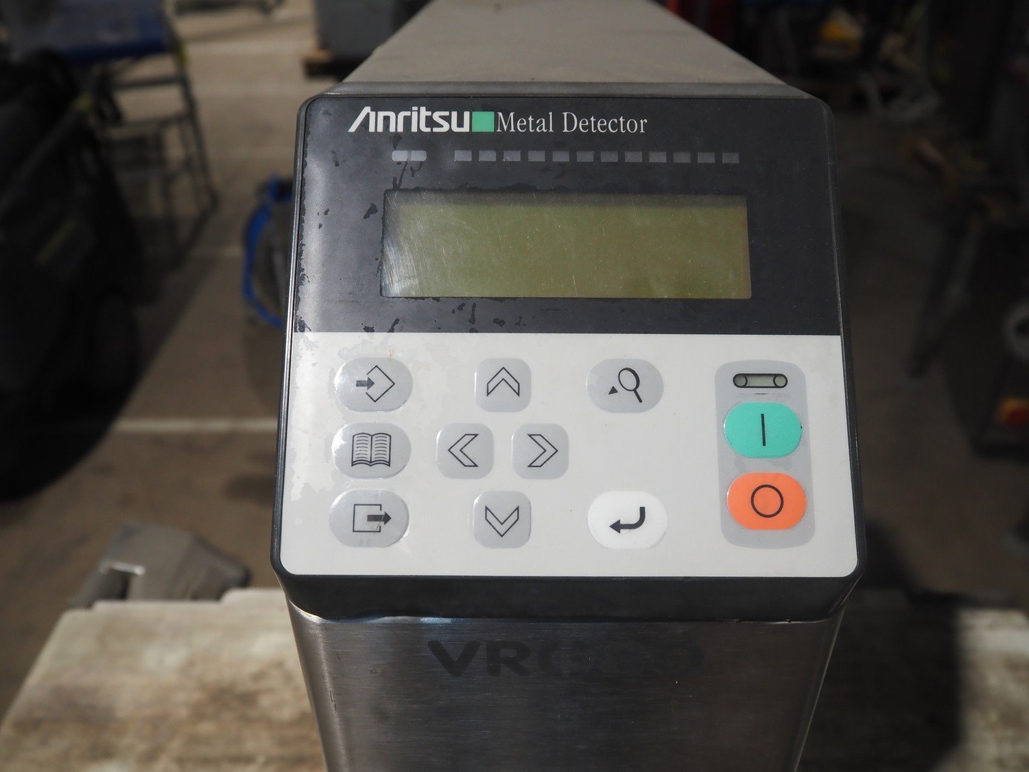 Anritsu metal detector, model: VRG80, year of construction: 2003, plastic belt, belt width: 220 mm, clearance: 295 mm x 180 mm, total dimensions: 800 mm x 850 mm x 480 mm.