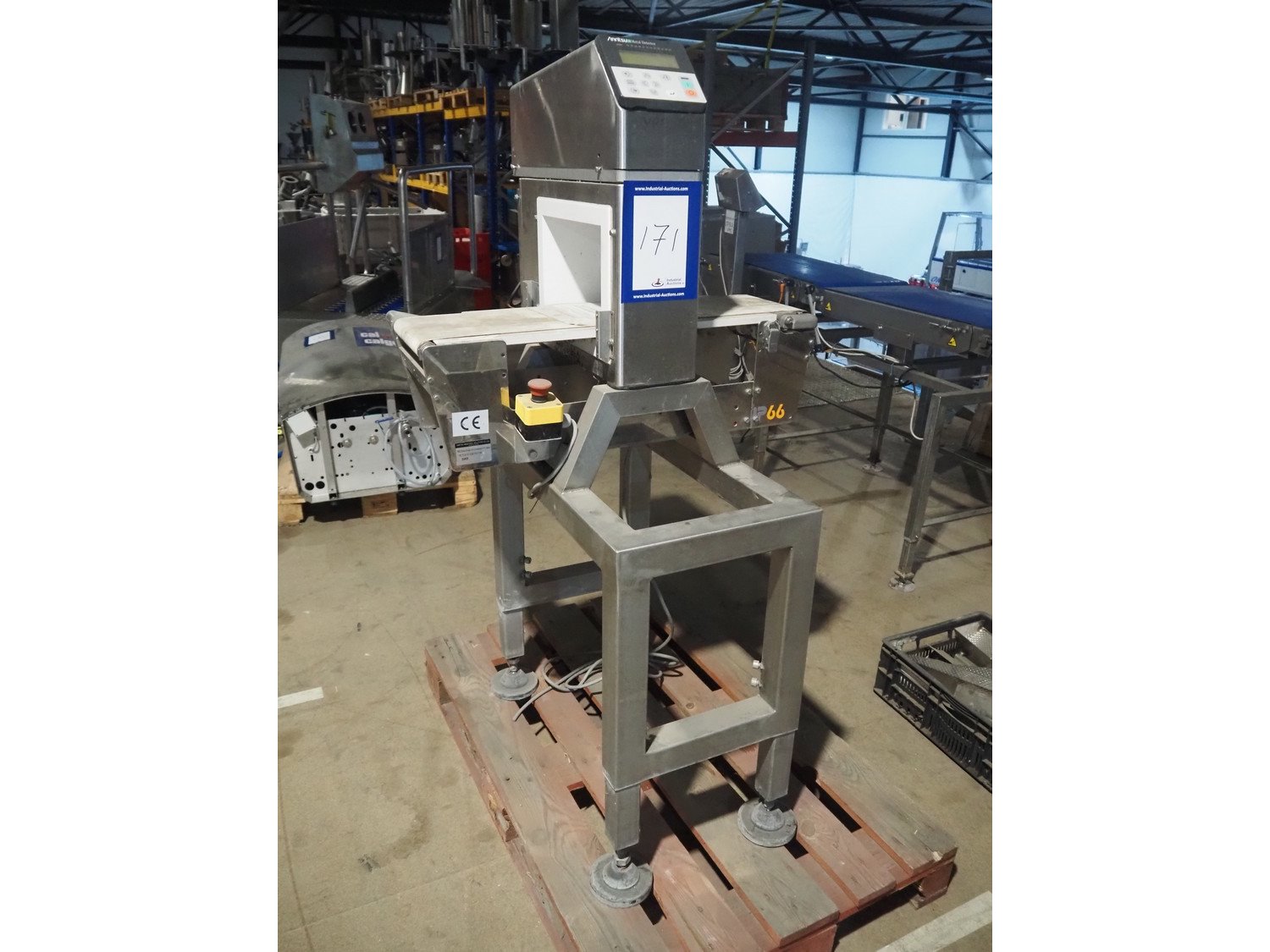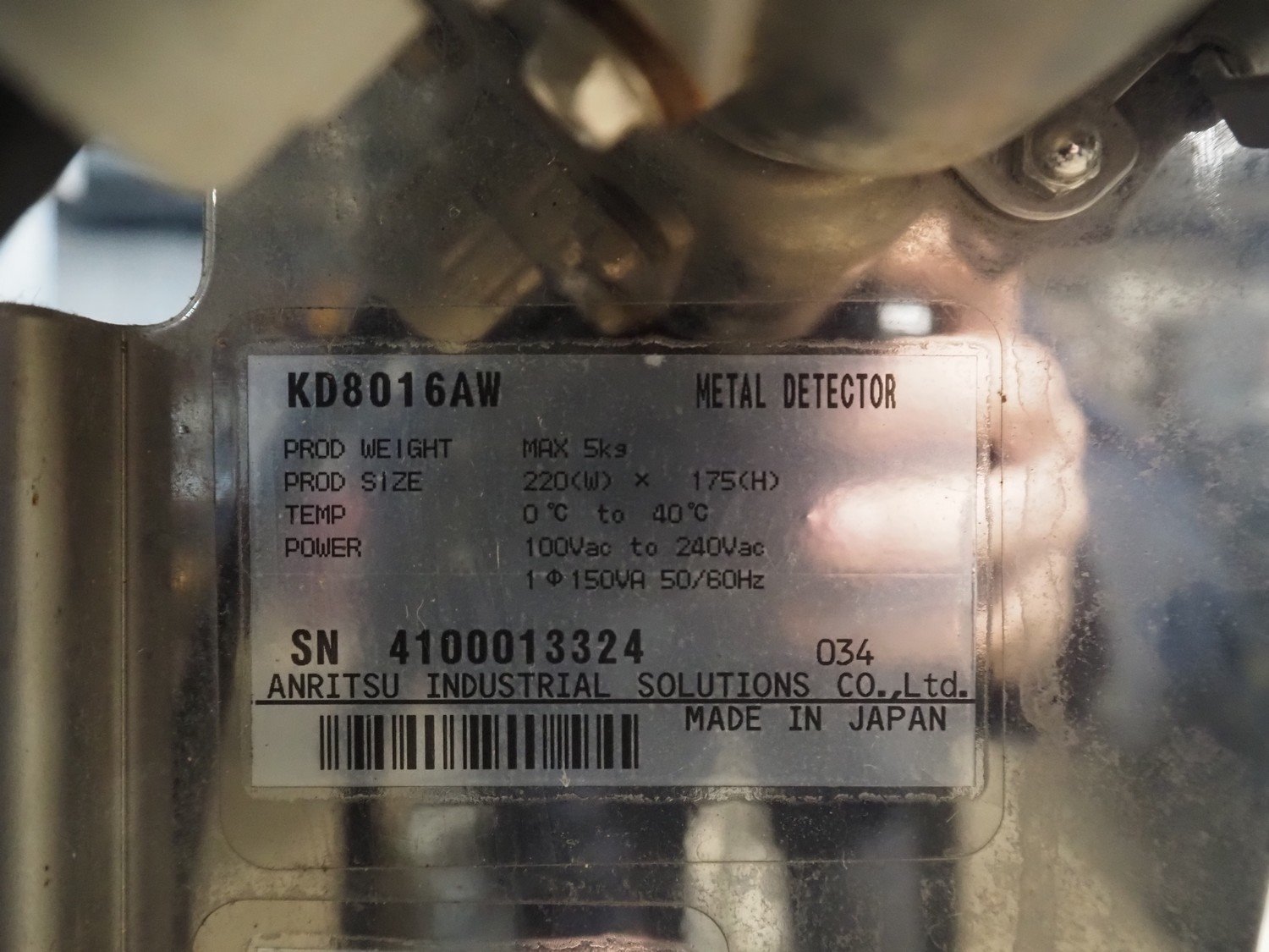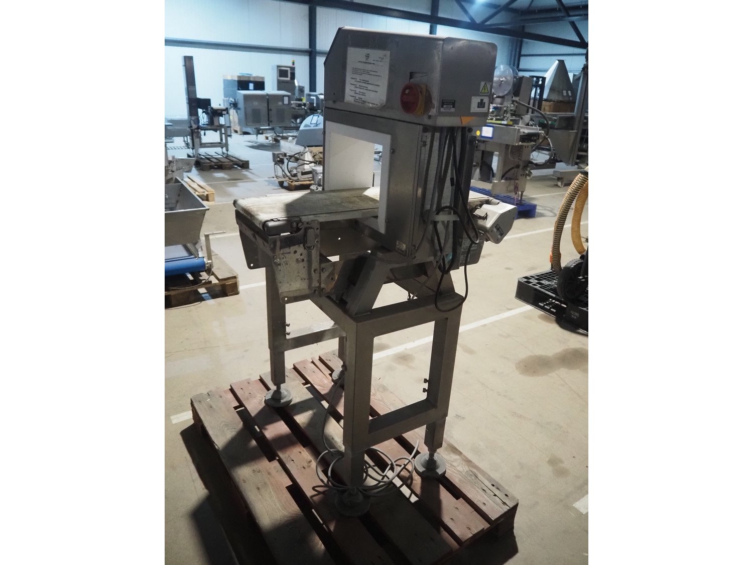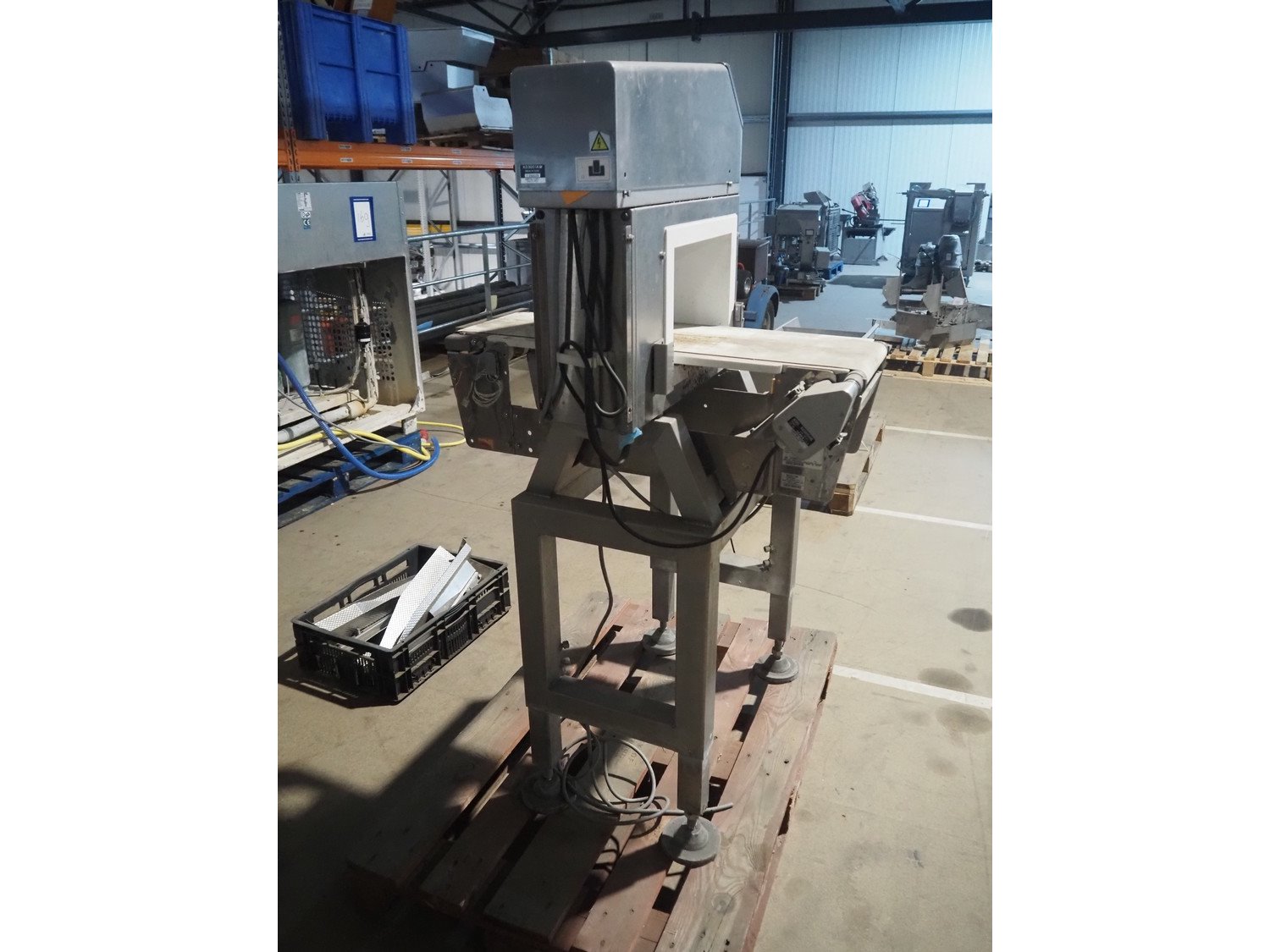 Anritsu metal detector, model: VRG80, year of construction: 2003, plastic belt, belt width: 220 mm, clearance: 295 mm x 180 mm, total dimensions: 800 mm x 850 mm x 480 mm.
