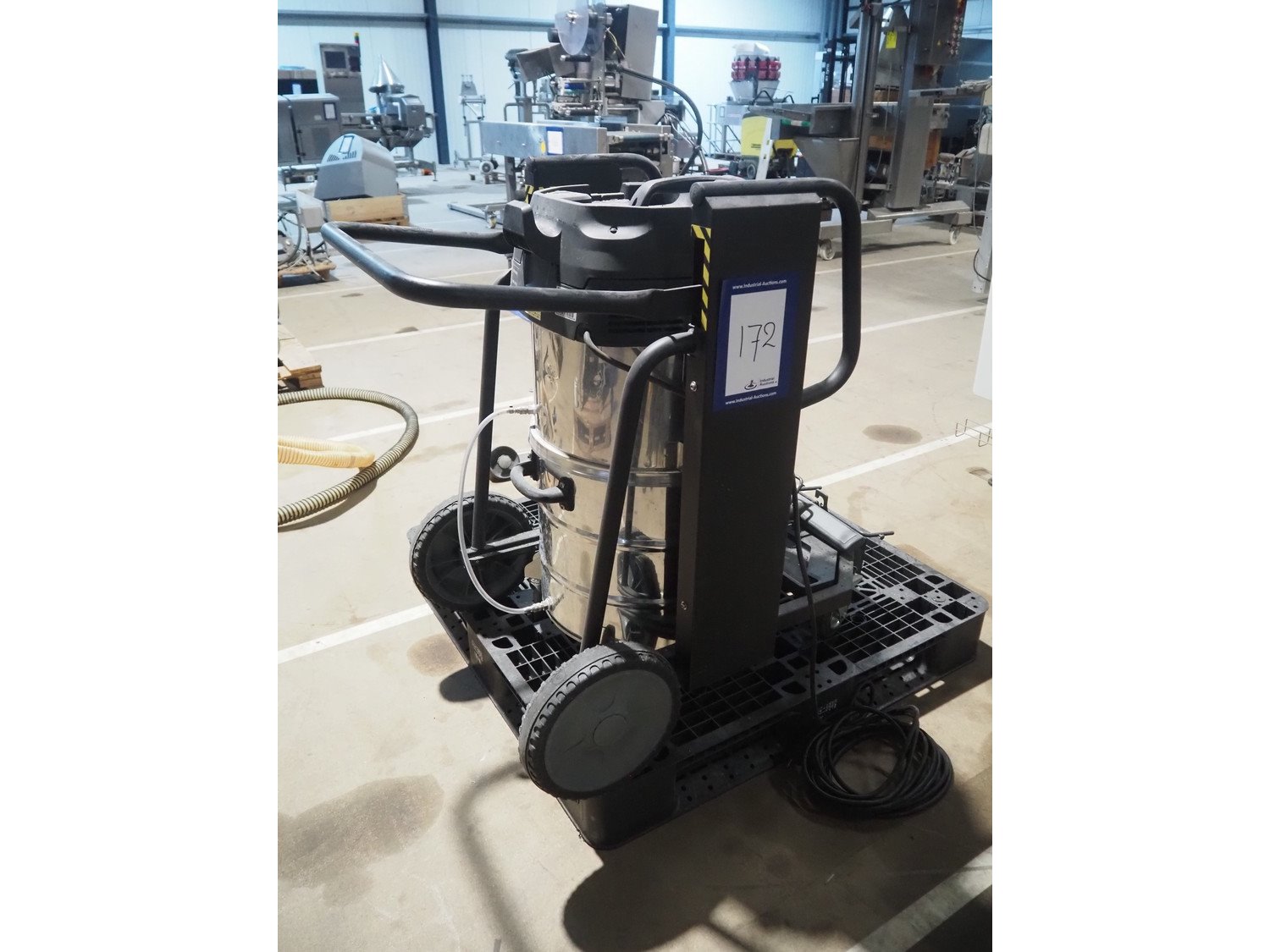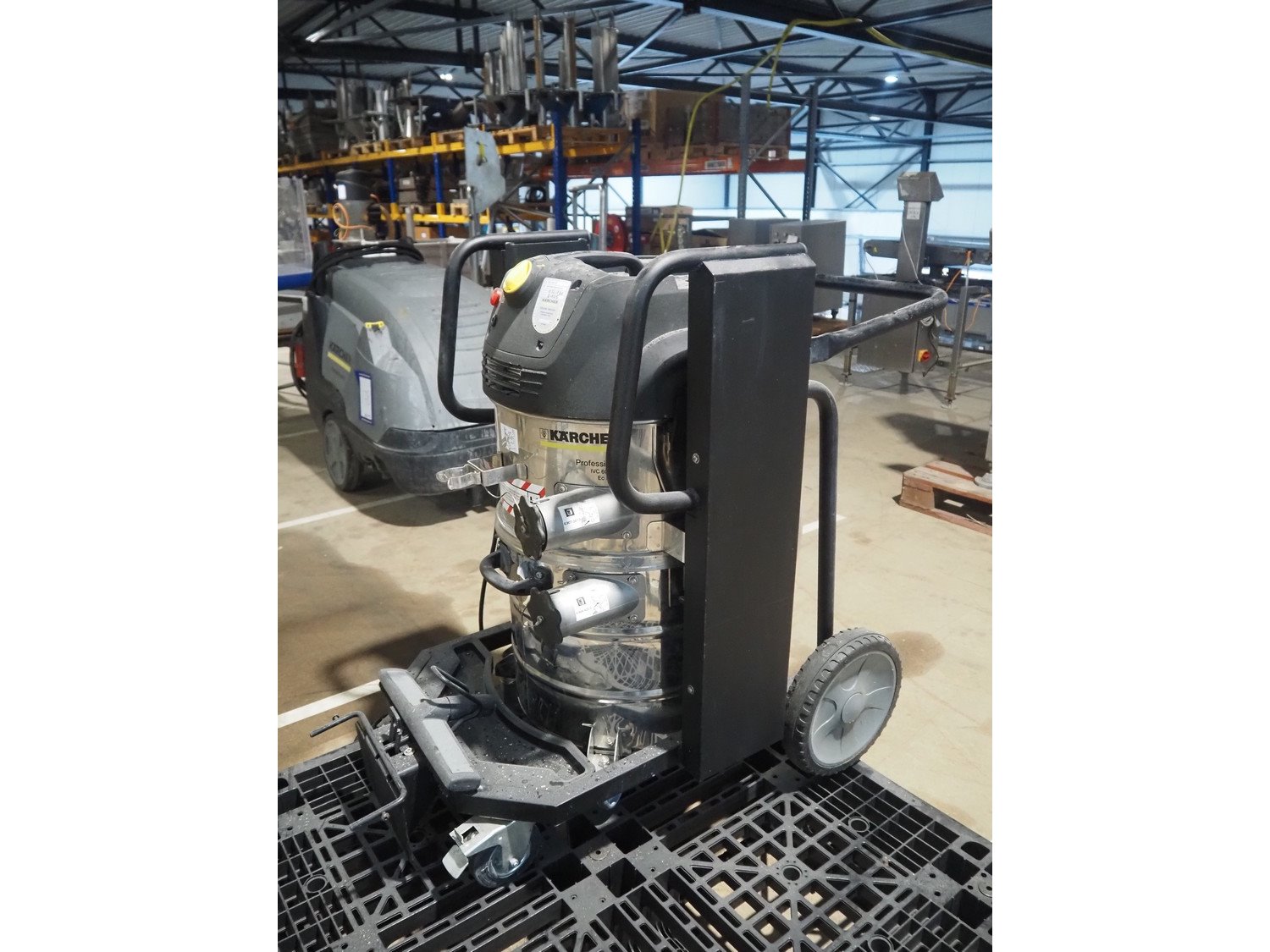 Kärcher industrial vacuum cleaner, model: IVC 60/12-1 Ec H Z22, serial number: 010215, year of construction: 2017, 220/240 V, 1 Ph, 50/60 Hz, 1000 W, weight: 59.0 kg, dimensions: 800 mm x 1000 mm x 1200 mm. Including various hoses.