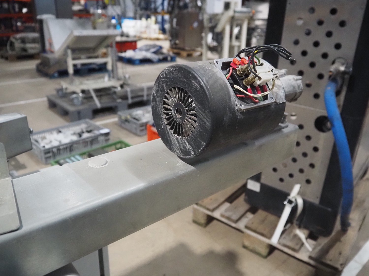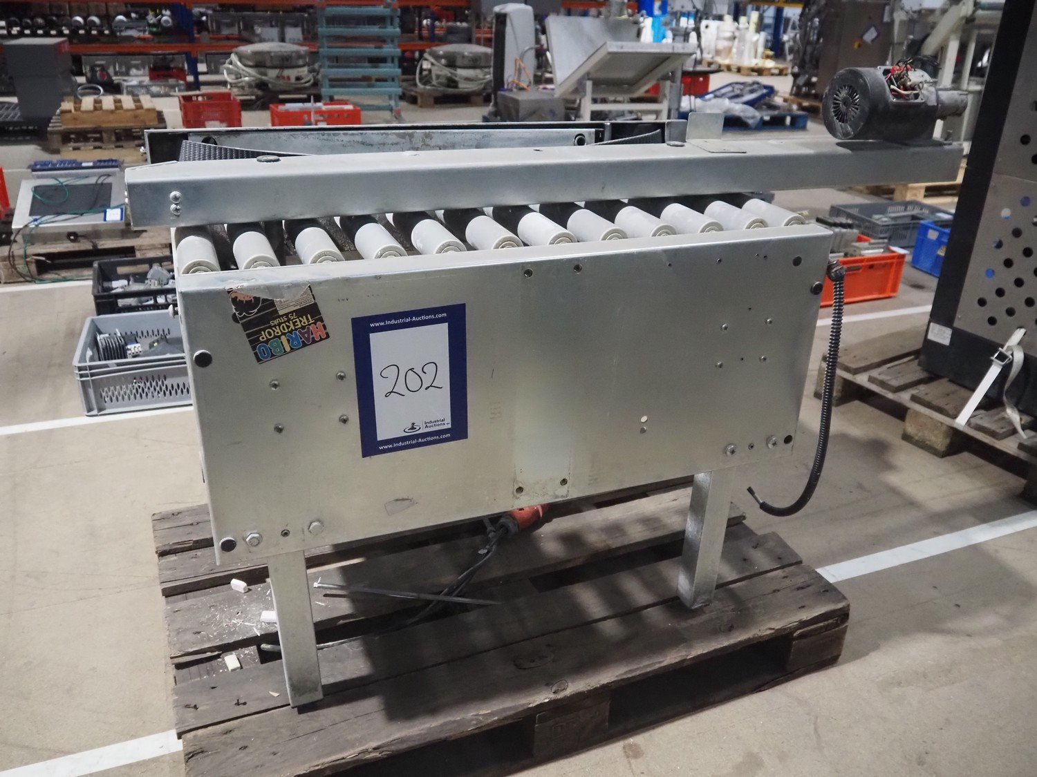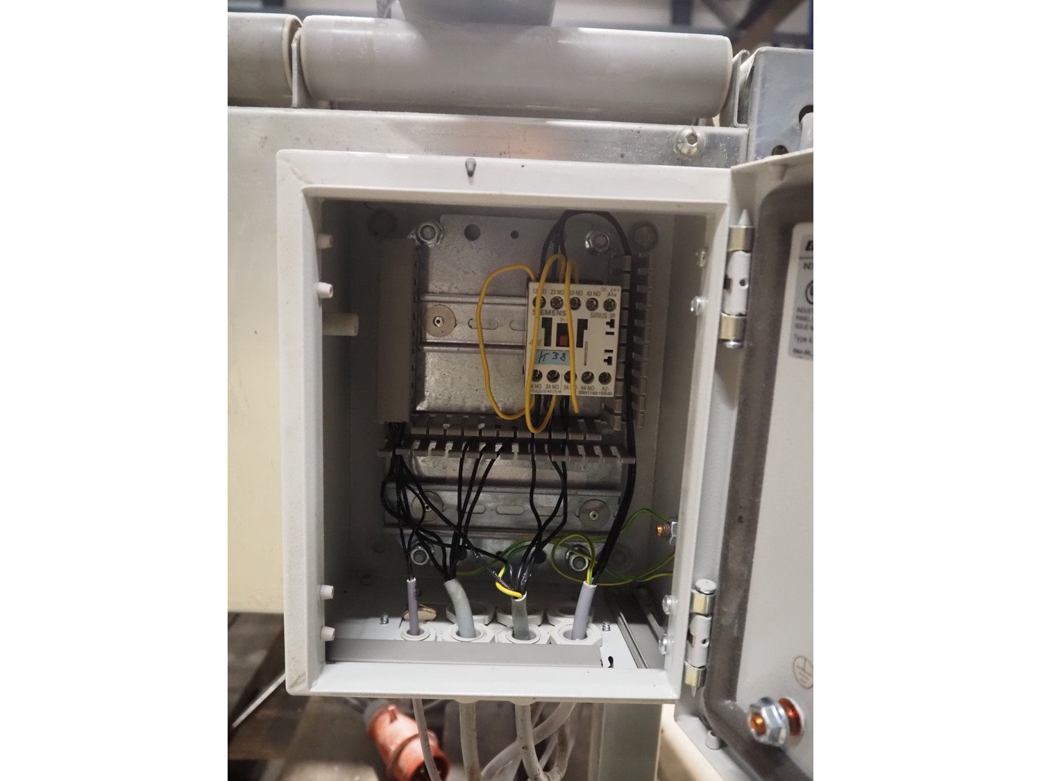 Soco System box taping machine, model: T-10, number: 621-88, 380 V, 3 Ph, plastic rollers, roller width: (2x) 260 mm, 70 mm, total dimensions: 1400 mm x 800 mm x 930 mm. Incomplete.
