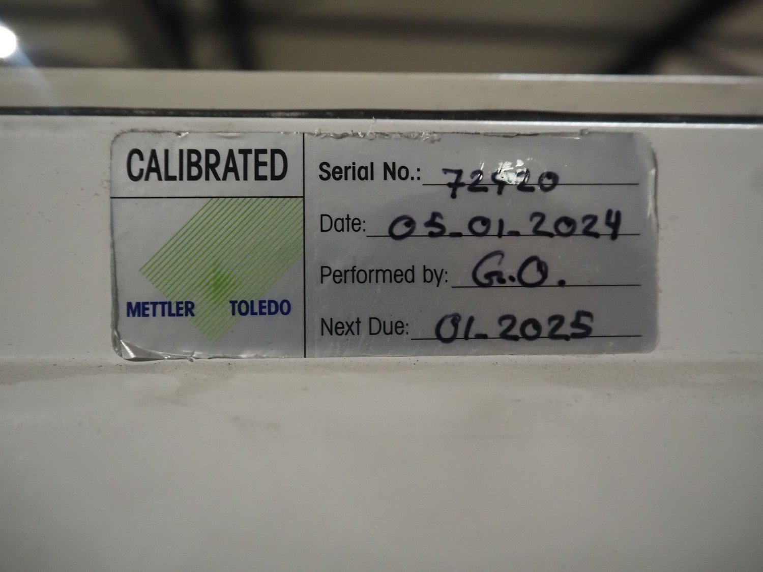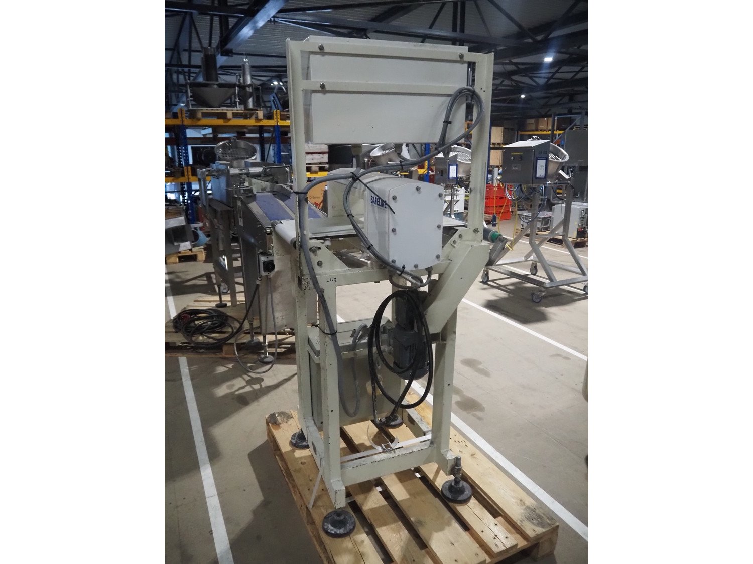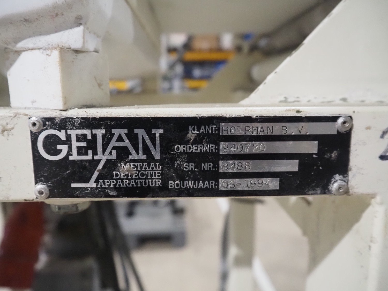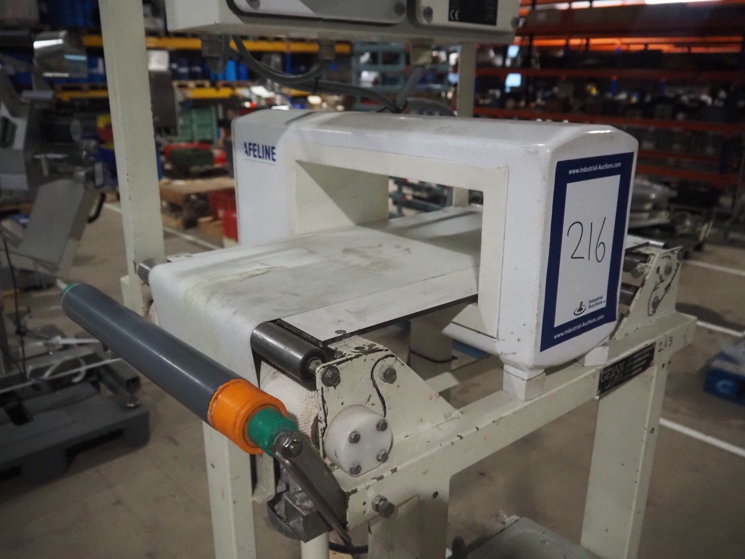 Safeline metal detector, serial number: 119579, plastic belt, belt width: 250 mm, clearance: 350 mm x 110 mm, total dimensions: 700 mm x 650 mm x 1600 mm.
