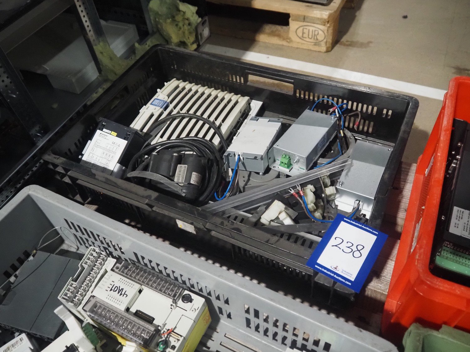 Crate with electric parts.