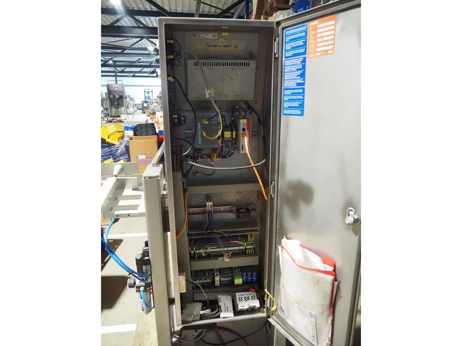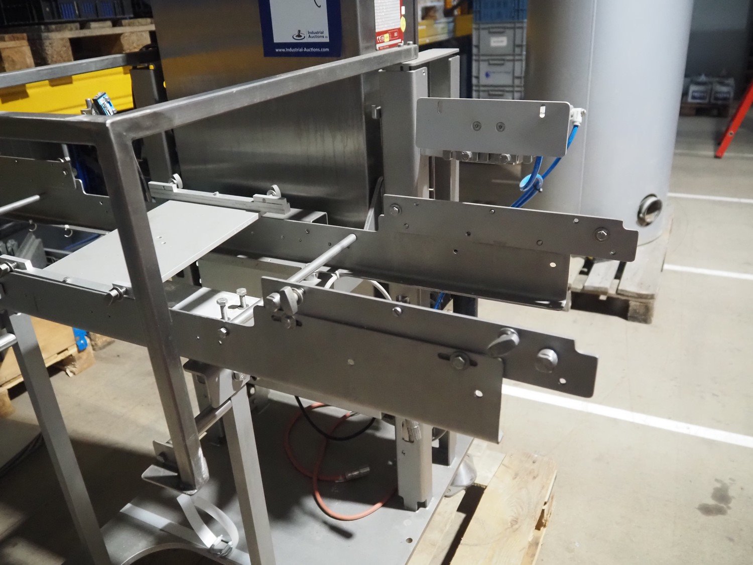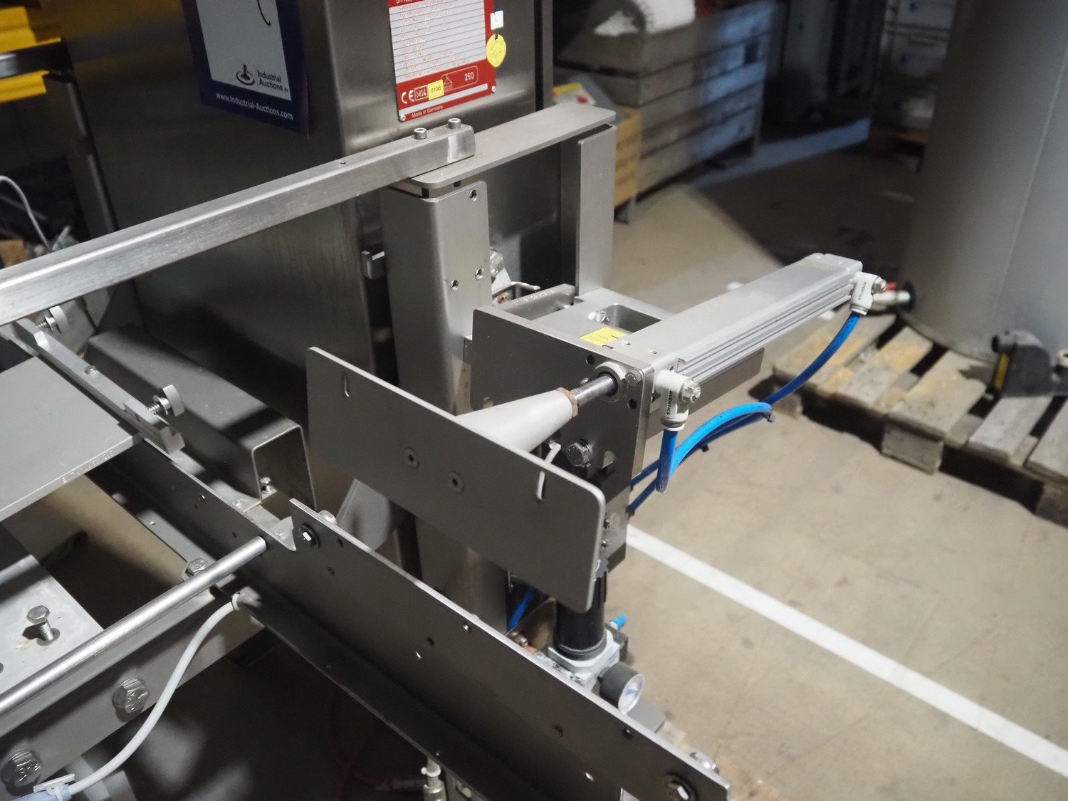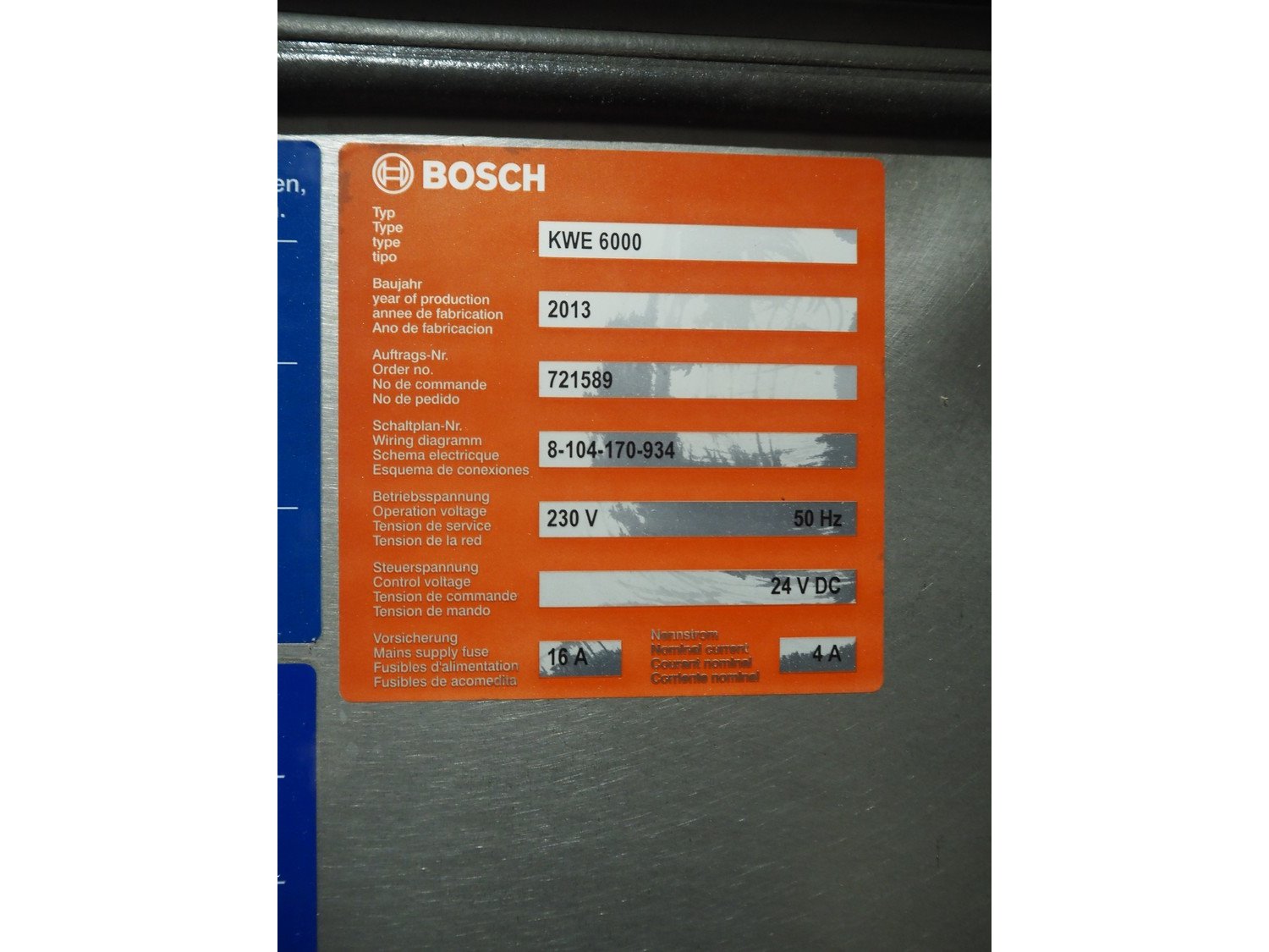 Bosch checkweigher, type: KWE 6000 A, year of construction: 2014, 230 V, 50 Hz, maximum weight: 600 gram, minimum weight: 100 gram, e=d= 0.5 gram, plastic belt, belt width: 250 mm, total dimensions: 1350 mm x 760 mm x 1350 mm. Incomplete.