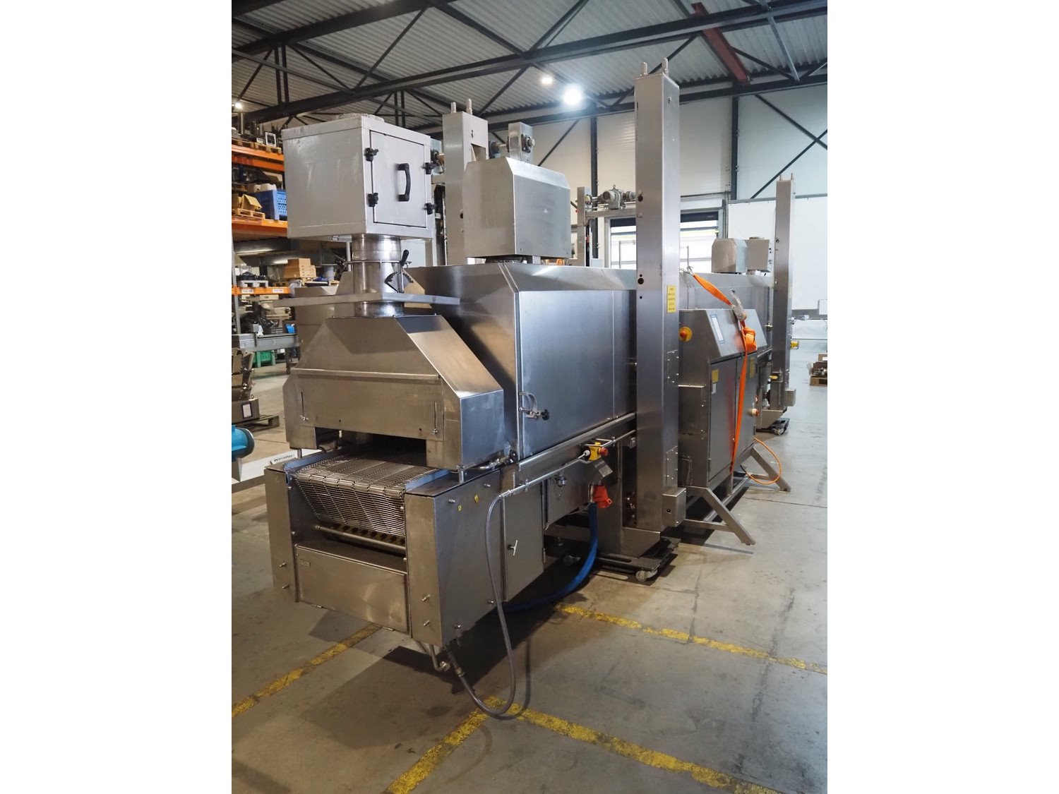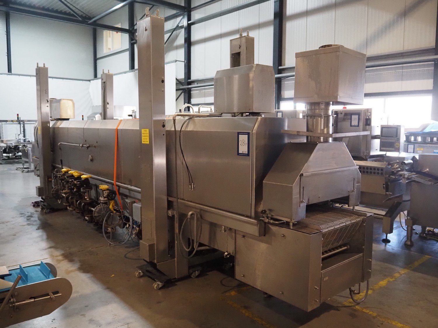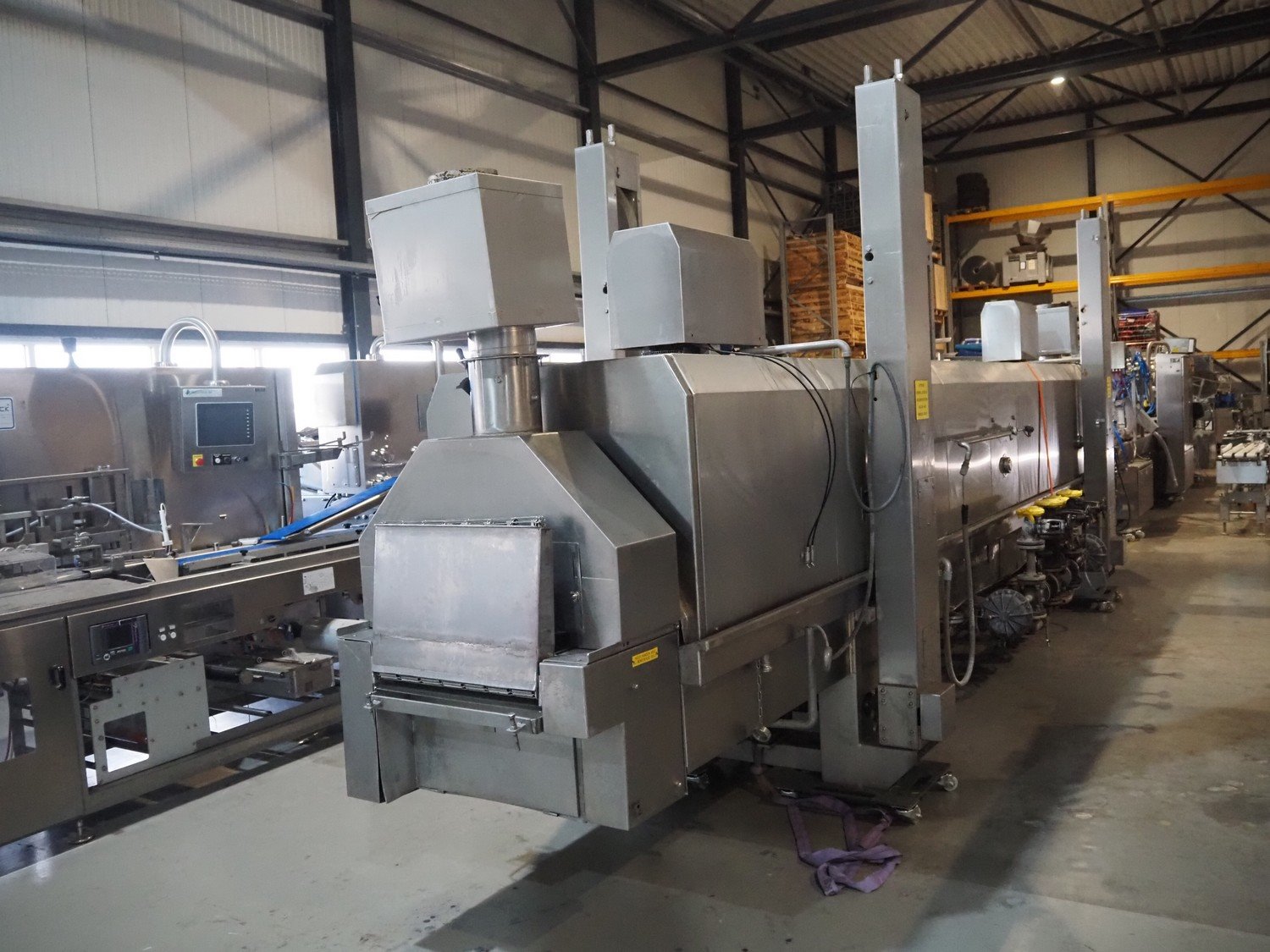 Koppens belt fryer, type: HLT 8000/600, machine number: HLT 8000/600-53, 380 V, 3 Ph, 50 Hz, 19.38 A, 8.05 kW, weight: 3500 kg, s/s belt, belt width: 600 mm, total dimensions: 8100 mm x 2100 mm x 2950 mm. Without rollies.