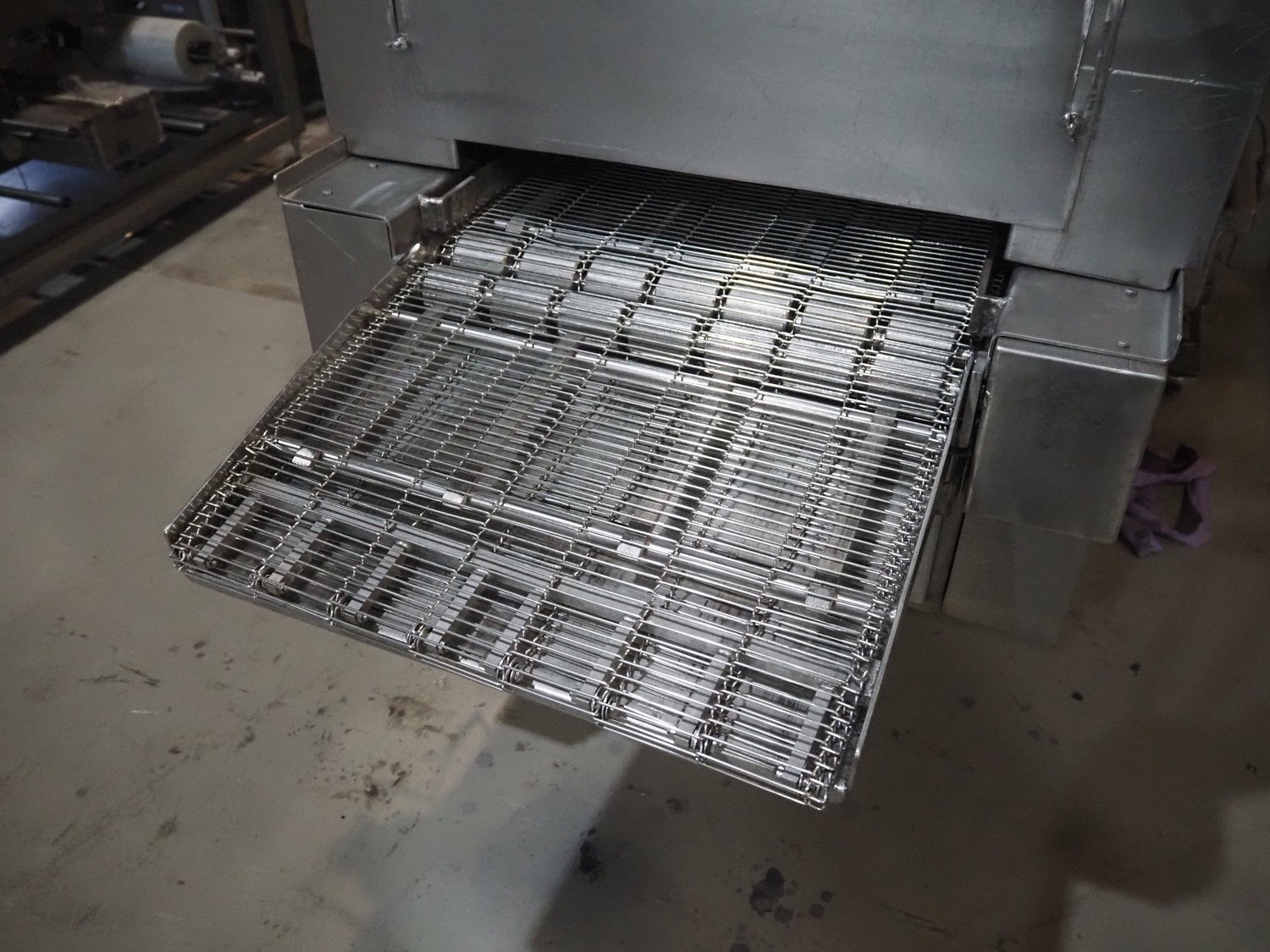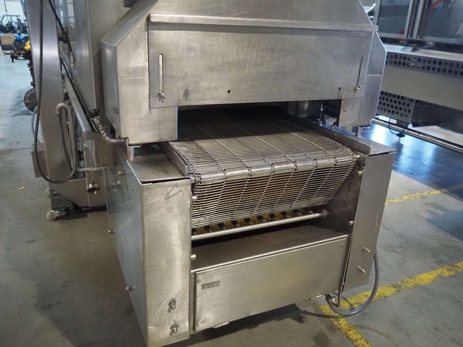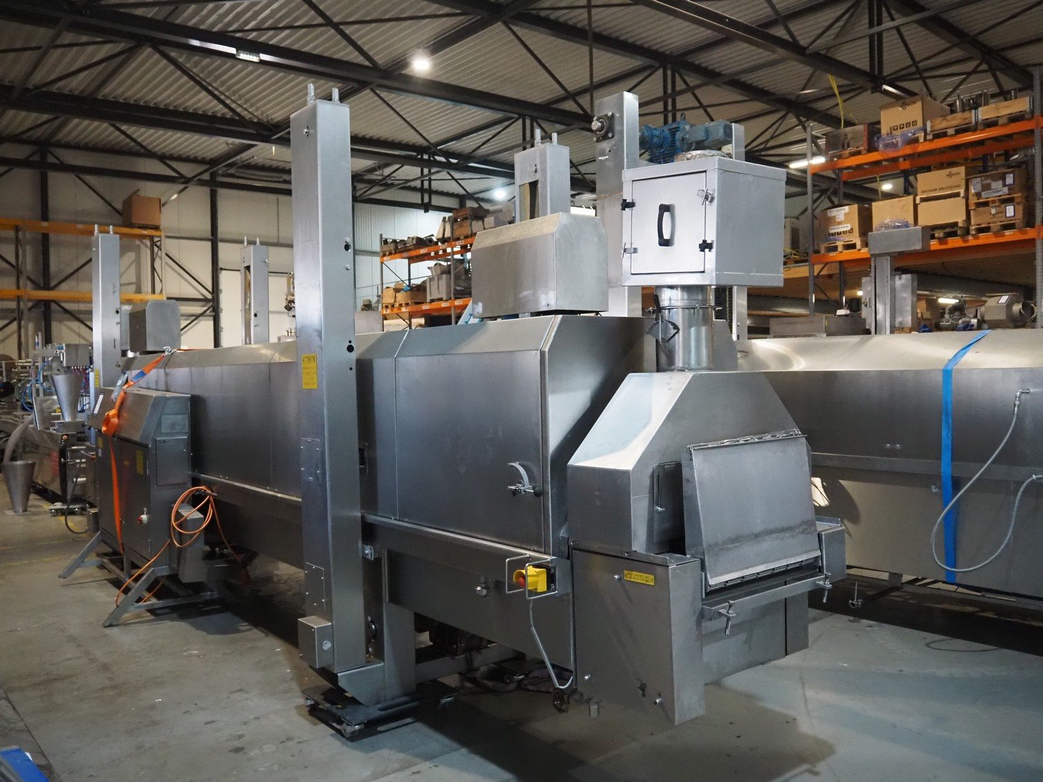 Koppens belt fryer, type: HLT 8000/600, machine number: HLT 8000/600-53, 380 V, 3 Ph, 50 Hz, 19.38 A, 8.05 kW, weight: 3500 kg, s/s belt, belt width: 600 mm, total dimensions: 8100 mm x 2100 mm x 2950 mm. Without rollies.