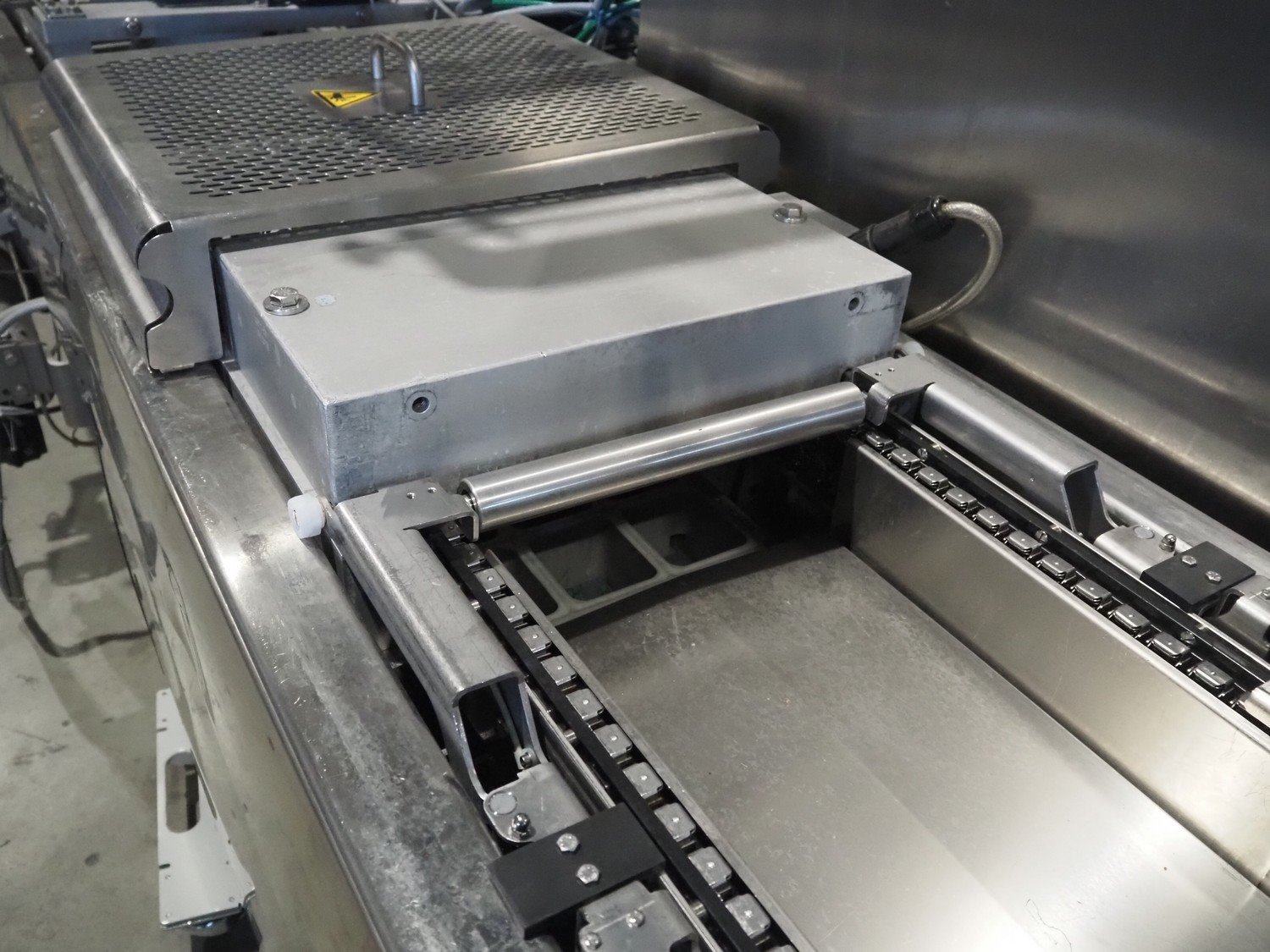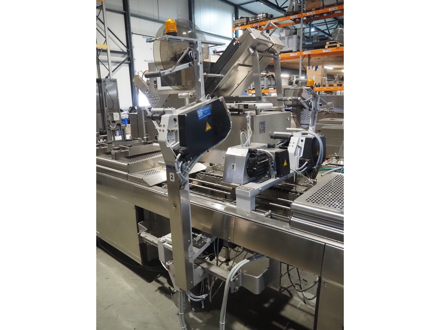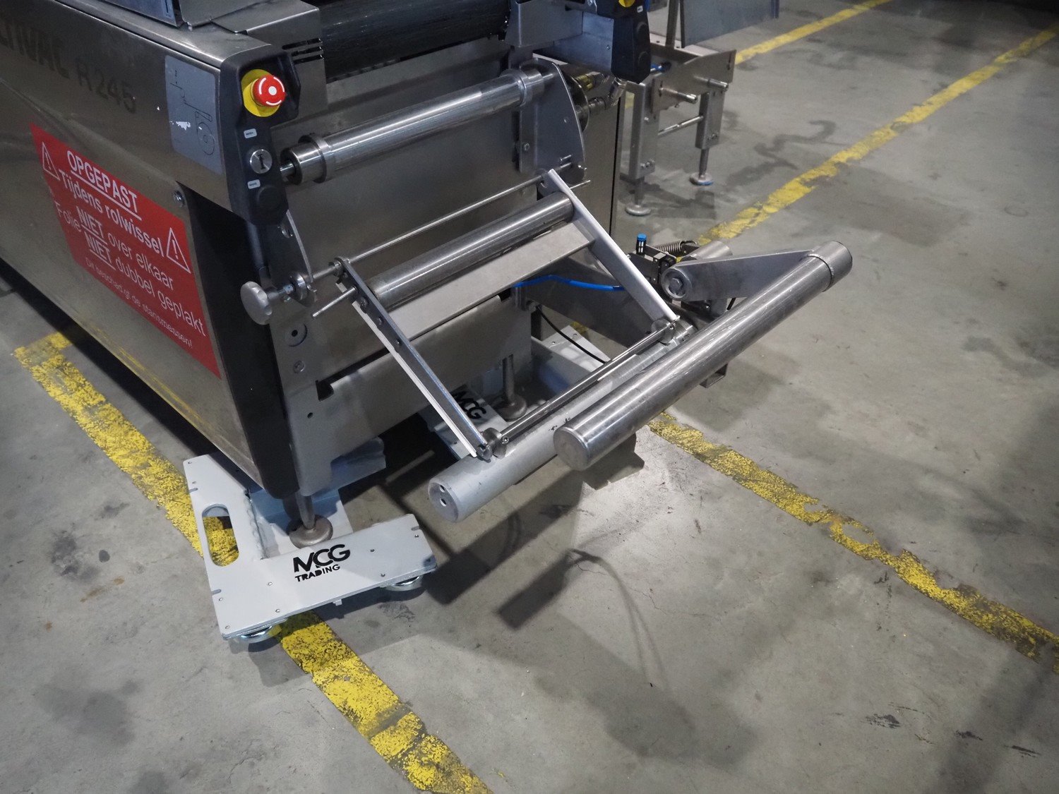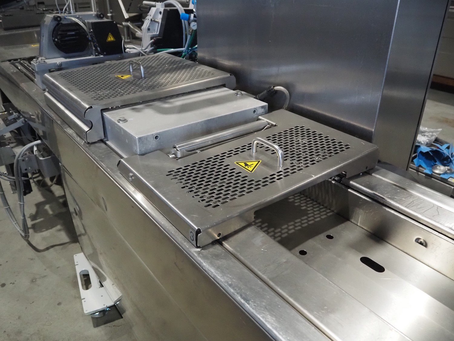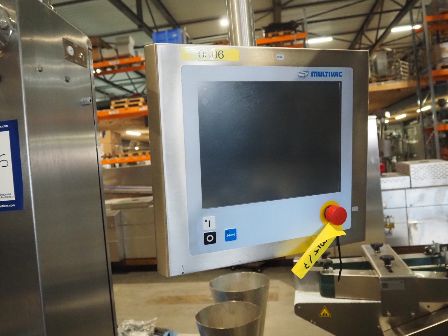 Multivac thermoformer with MR Etikettiertechnik GmbH labelling unit, model: R245, machine number: 124685, year of construction: 2008, 400 V, 3 Ph, 50 Hz, 18 A, 7 kW, type labelling unit: MR 6318, type Witt-Gasetechnik gas mixing station: KM 100-2 MEM, dye: (6x) 103 mm x 90 mm, total dimensions: 8300 mm x 1600 mm x 2250 mm. Including Multivac inliner, belt width: (3x) 70 mm, (1x) 315 mm, total dimensions: 2050 mm x 600 mm x 1050 mm, and pallet with parts, dimensions: 1200 mm x 800 mm x 500 mm. Without rollies.