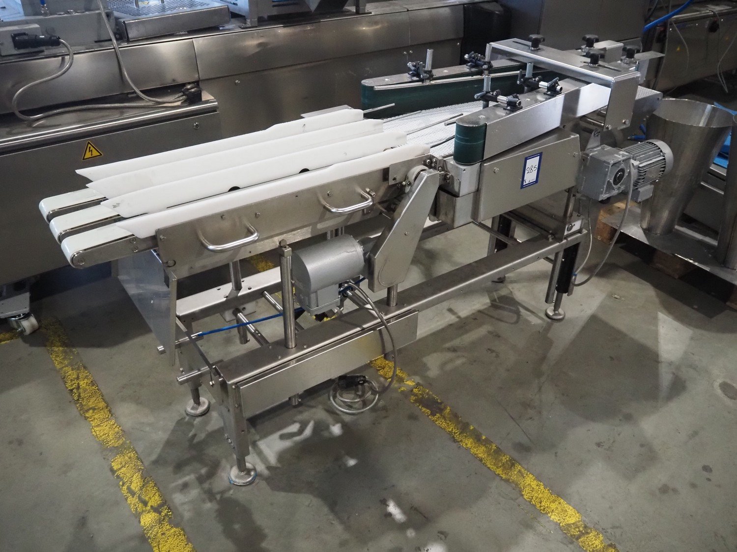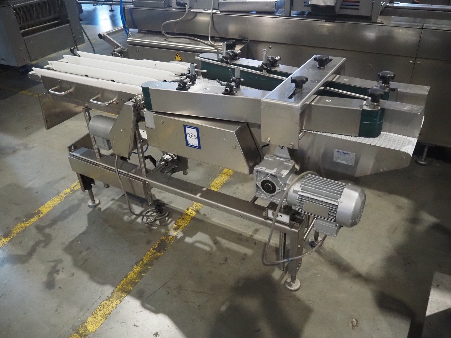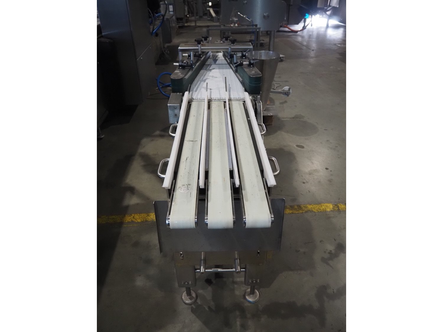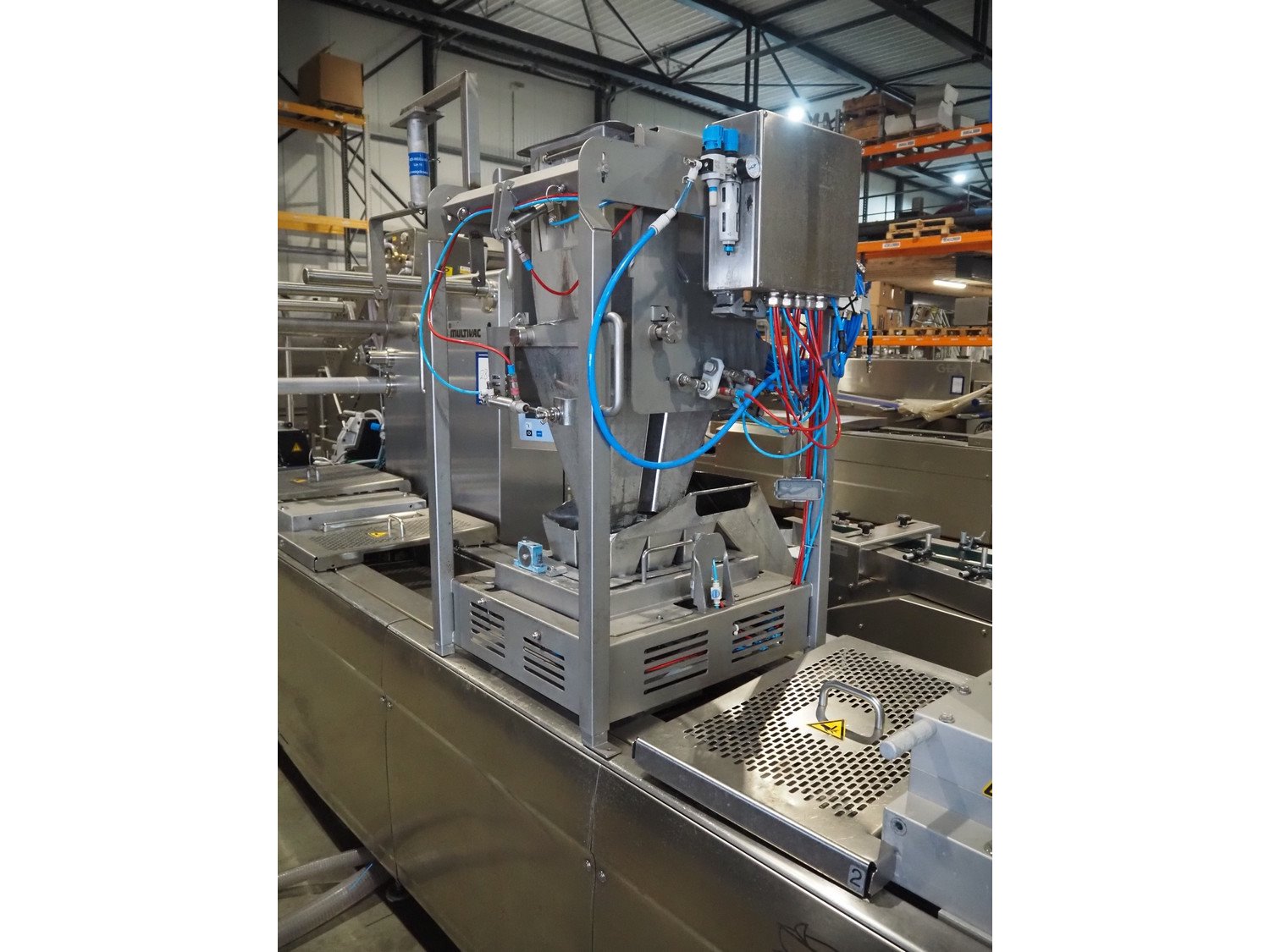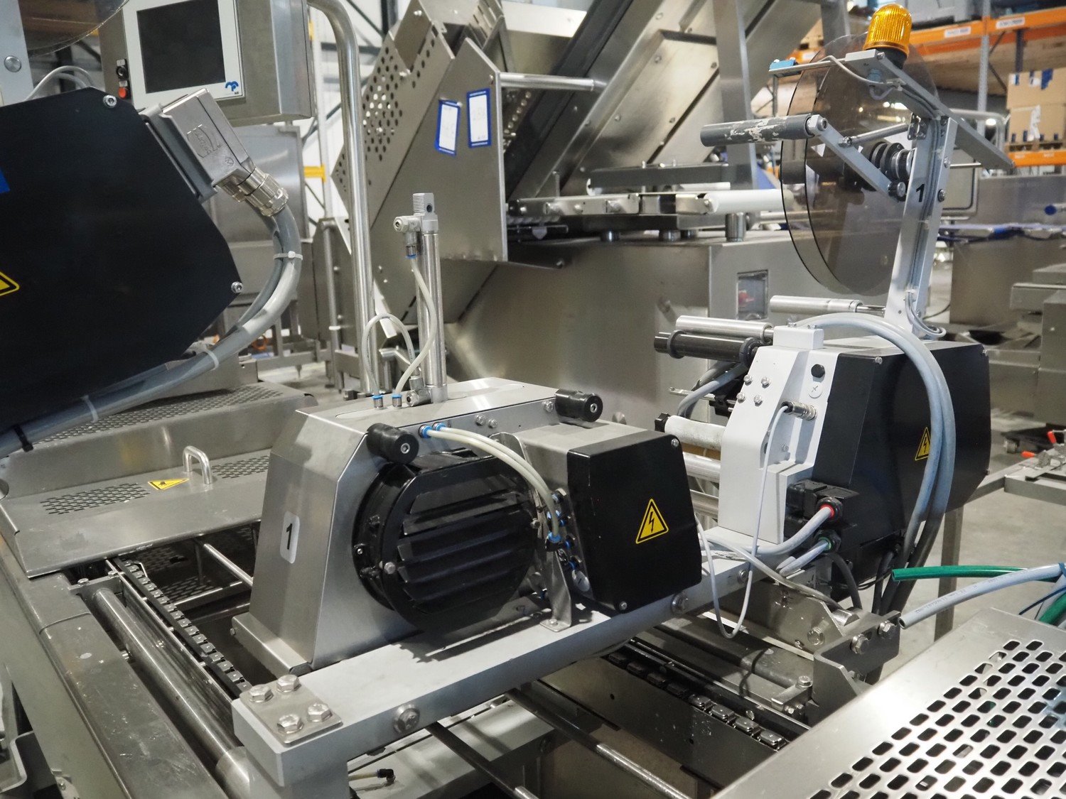 Multivac thermoformer with MR Etikettiertechnik GmbH labelling unit, model: R245, machine number: 124685, year of construction: 2008, 400 V, 3 Ph, 50 Hz, 18 A, 7 kW, type labelling unit: MR 6318, type Witt-Gasetechnik gas mixing station: KM 100-2 MEM, dye: (6x) 103 mm x 90 mm, total dimensions: 8300 mm x 1600 mm x 2250 mm. Including Multivac inliner, belt width: (3x) 70 mm, (1x) 315 mm, total dimensions: 2050 mm x 600 mm x 1050 mm, and pallet with parts, dimensions: 1200 mm x 800 mm x 500 mm. Without rollies.