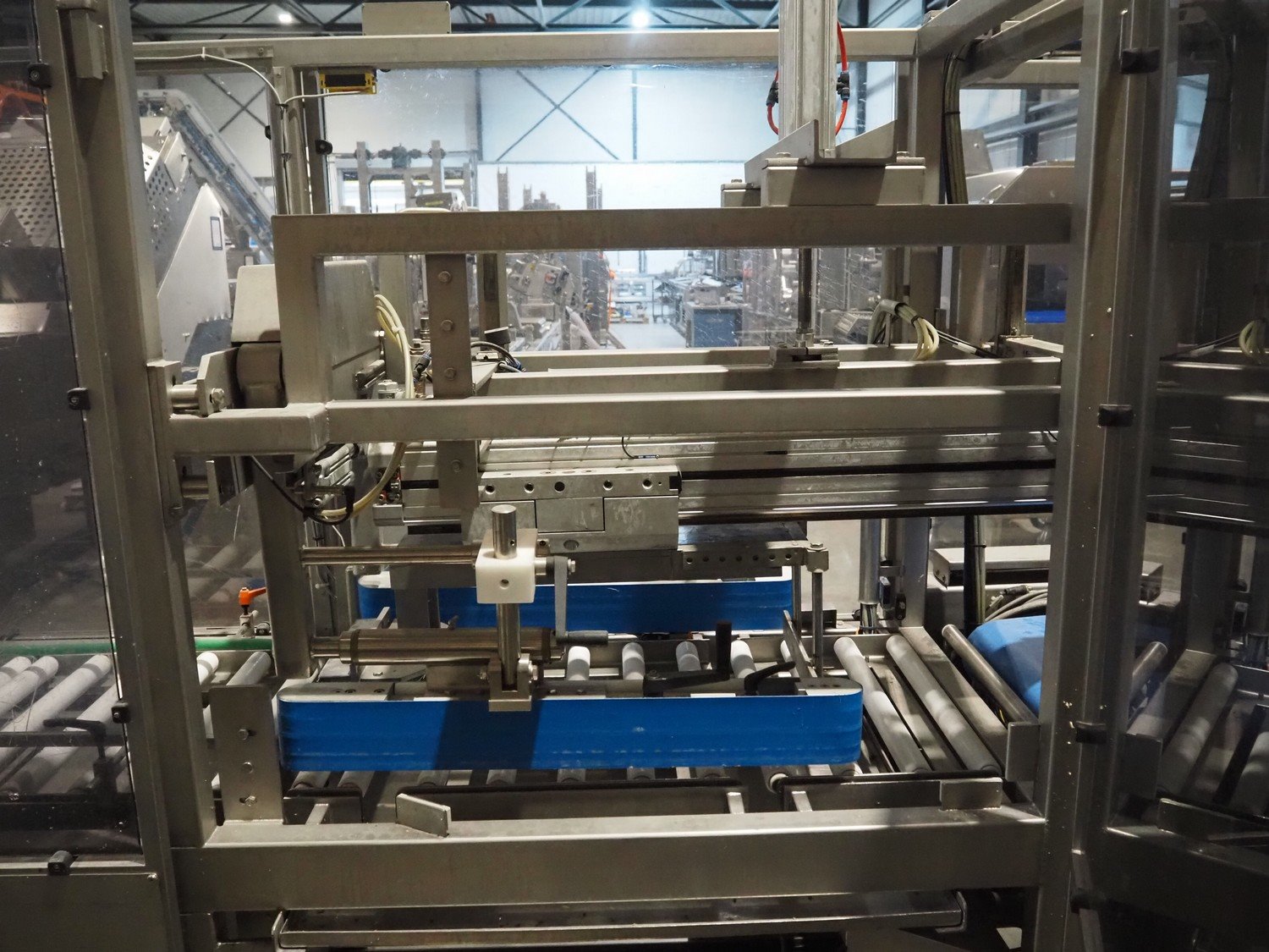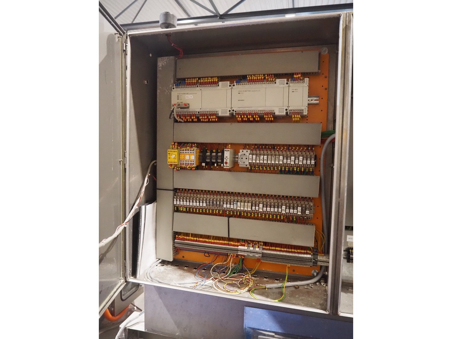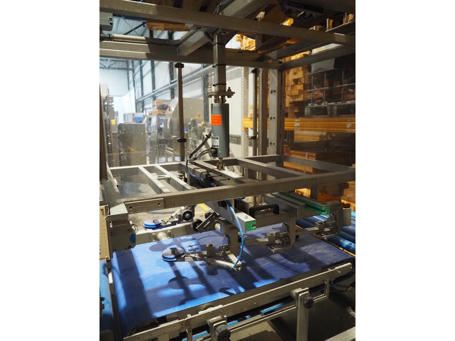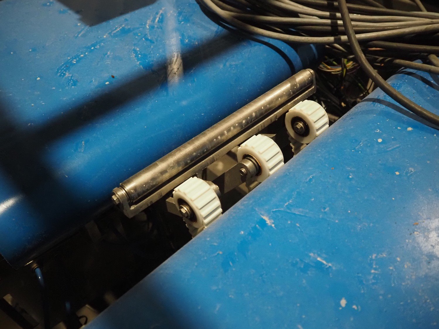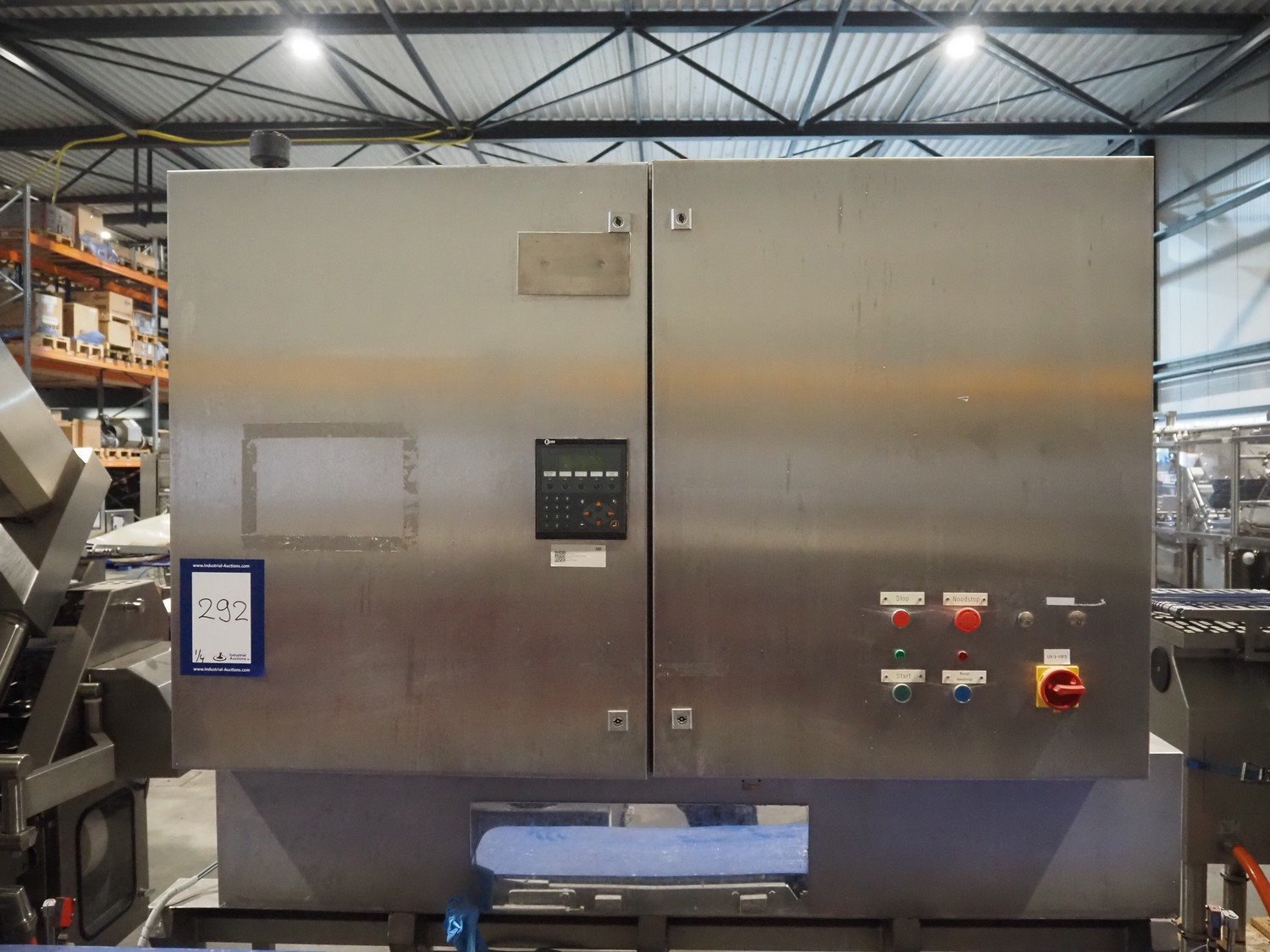Groba cheese defoiling machine with infeed system for slicer and buffer belt, type: PHDM-520, number: 199910103, year of construction: 2000, weight: 600 kg, plastic rollers, roller width: 520 mm, plastic belt, belt width: 550 mm, roll width: 550 mm, dimensions infeed system: 3000 mm x 1250 mm x 2250 mm, dimensions defoiling machine: 2650 mm x 1000 mm x 2130 mm and dimensions buffer belt: 2330 mm x 750 mm x 2230 mm.
