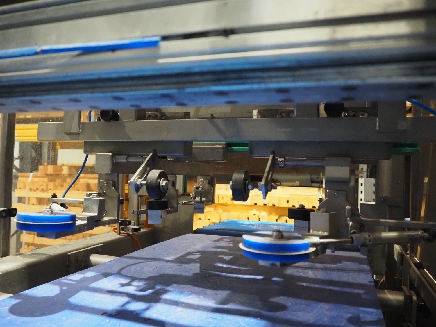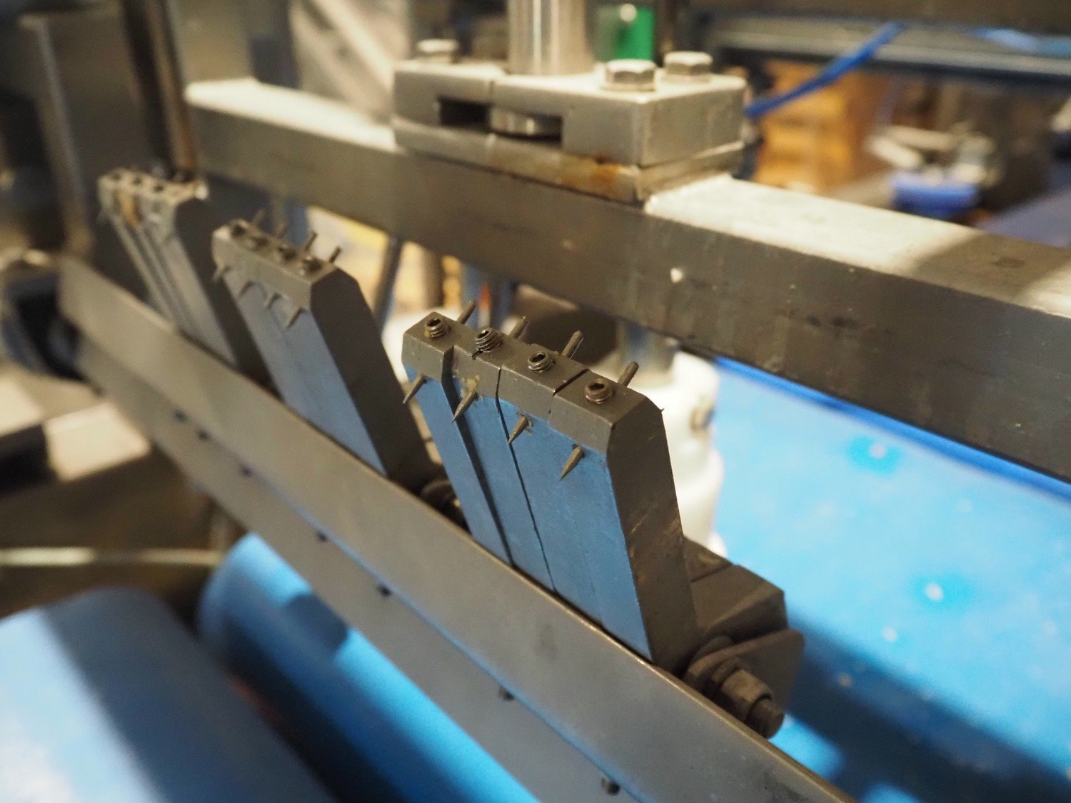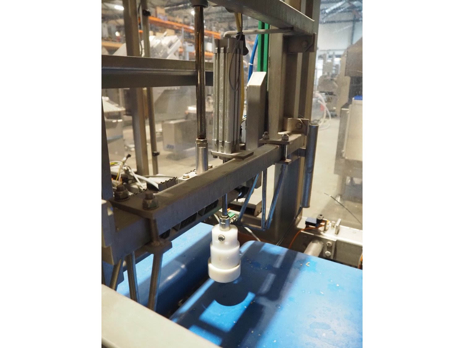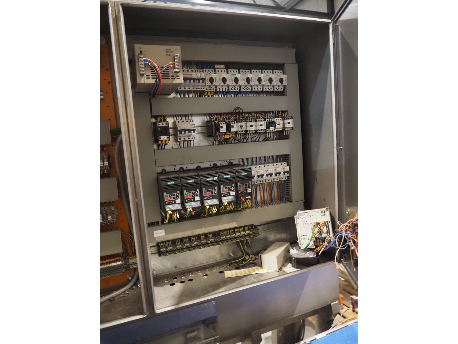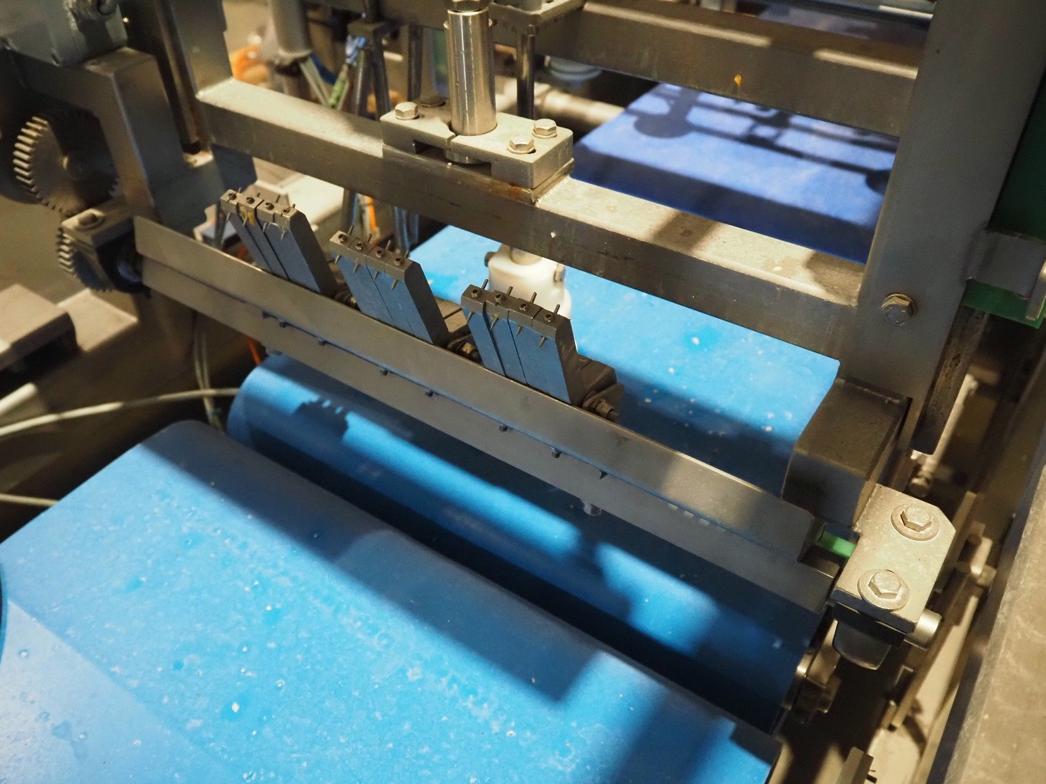 Groba cheese defoiling machine with infeed system for slicer and buffer belt, type: PHDM-520, number: 199910103, year of construction: 2000, weight: 600 kg, plastic rollers, roller width: 520 mm, plastic belt, belt width: 550 mm, roll width: 550 mm, dimensions infeed system: 3000 mm x 1250 mm x 2250 mm, dimensions defoiling machine: 2650 mm x 1000 mm x 2130 mm and dimensions buffer belt: 2330 mm x 750 mm x 2230 mm.
