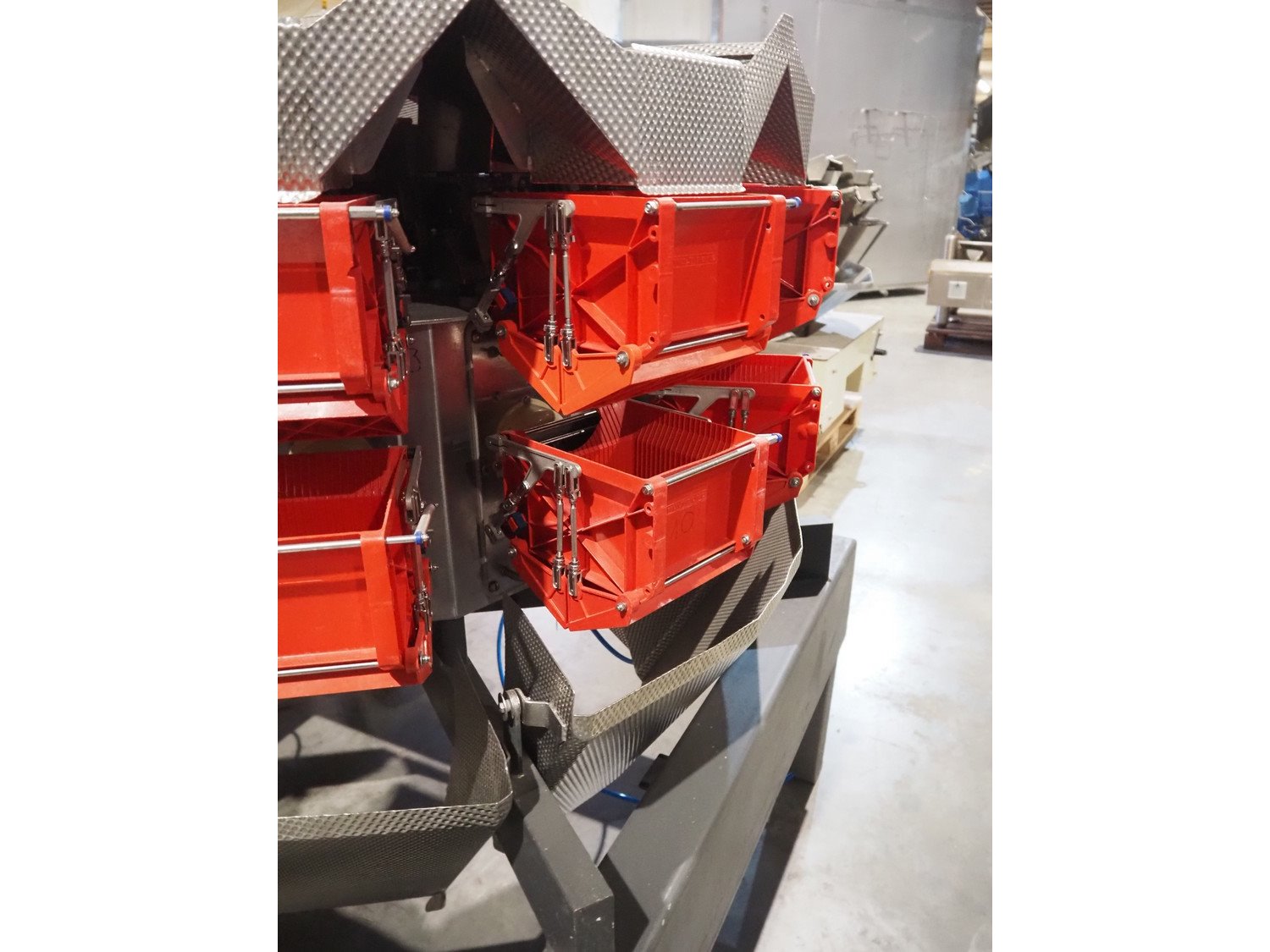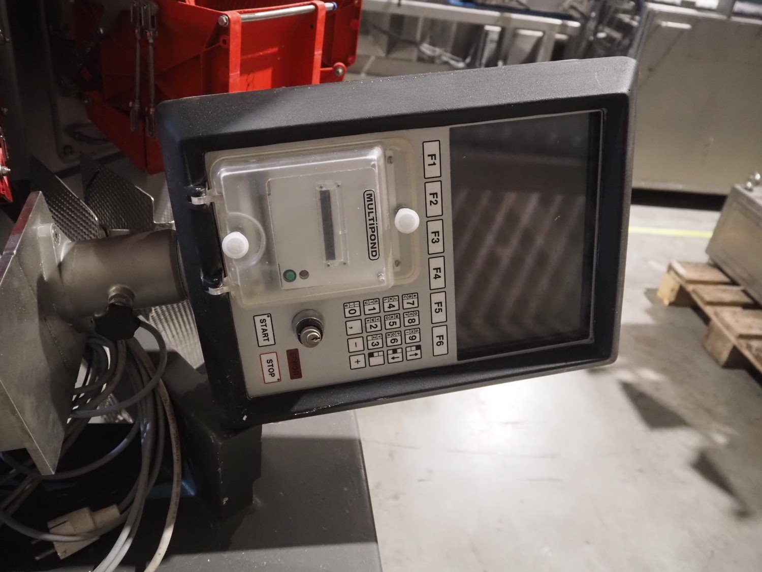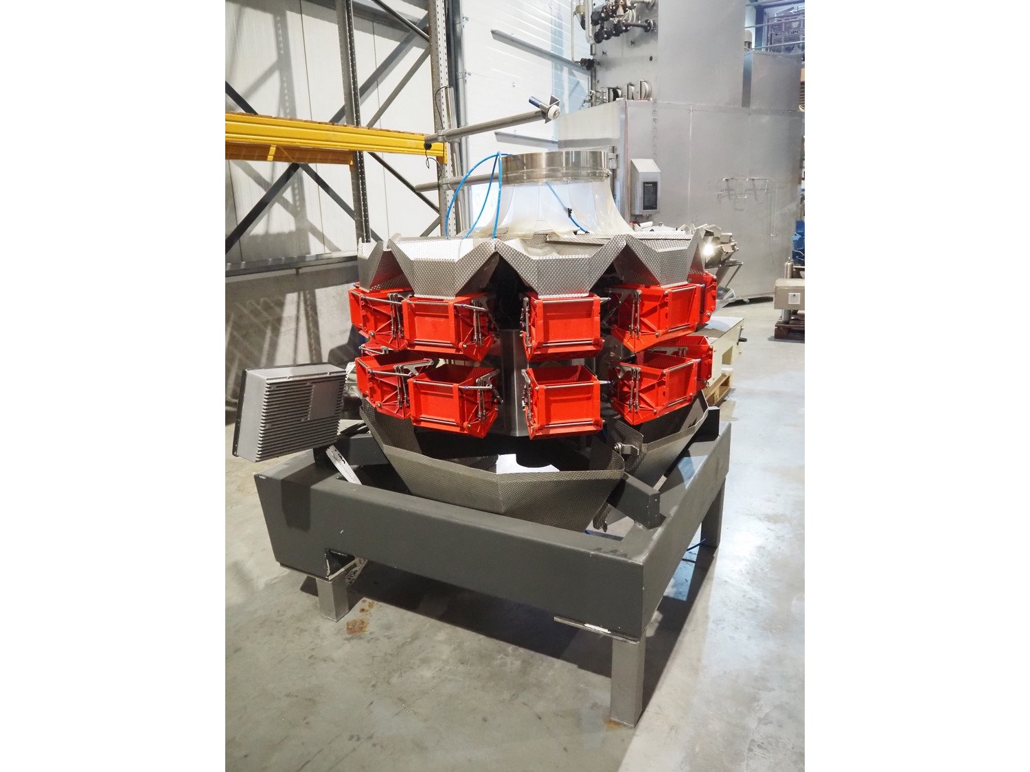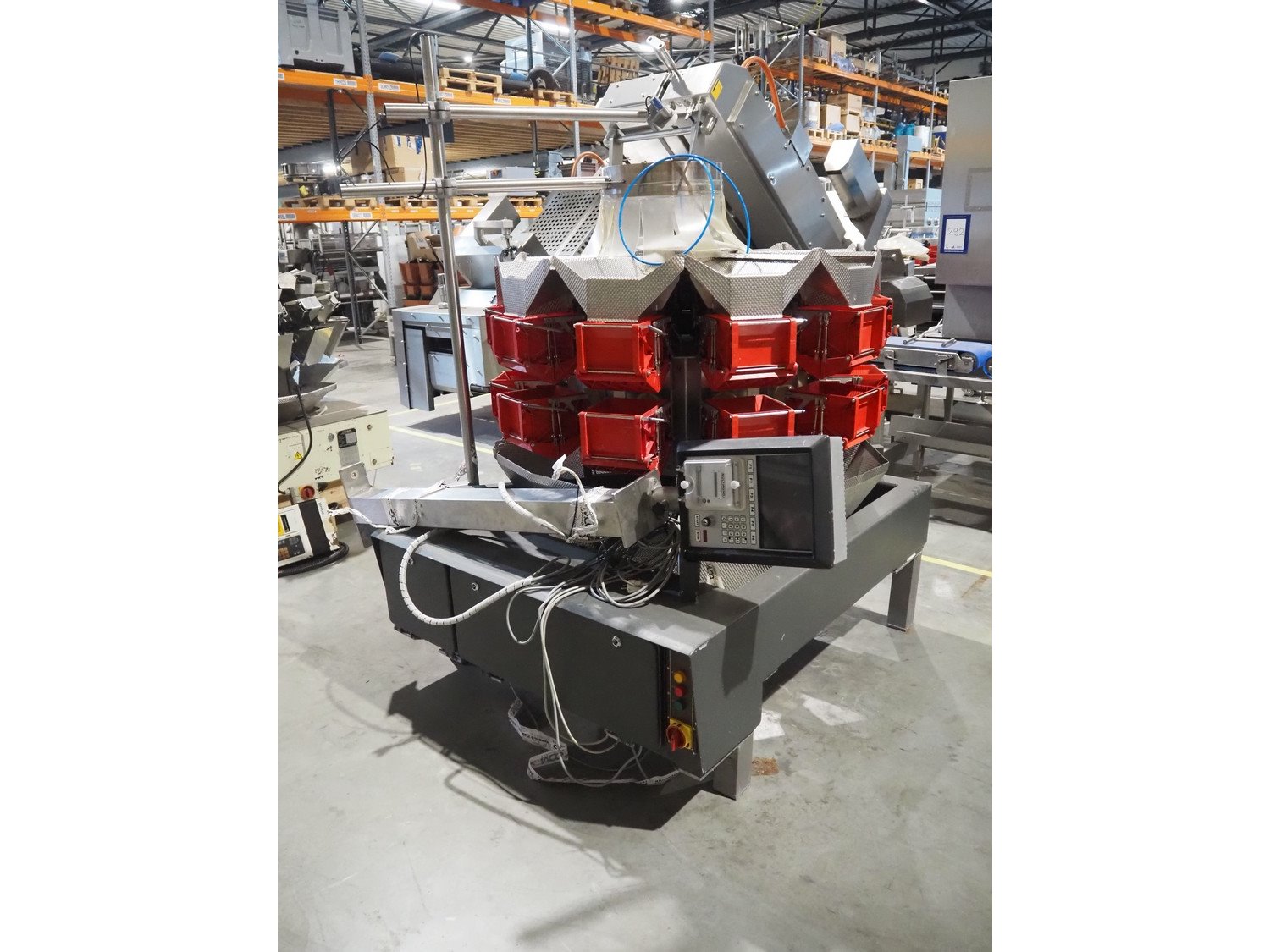 Multipond 10 head multihead weigher, type: MP 1024-D, factory number: MP 935, year of construction: 1996, 230 V, 50 Hz, 1.5 kVA, dimensions: 1600 mm x 1400 mm x 2100 mm.