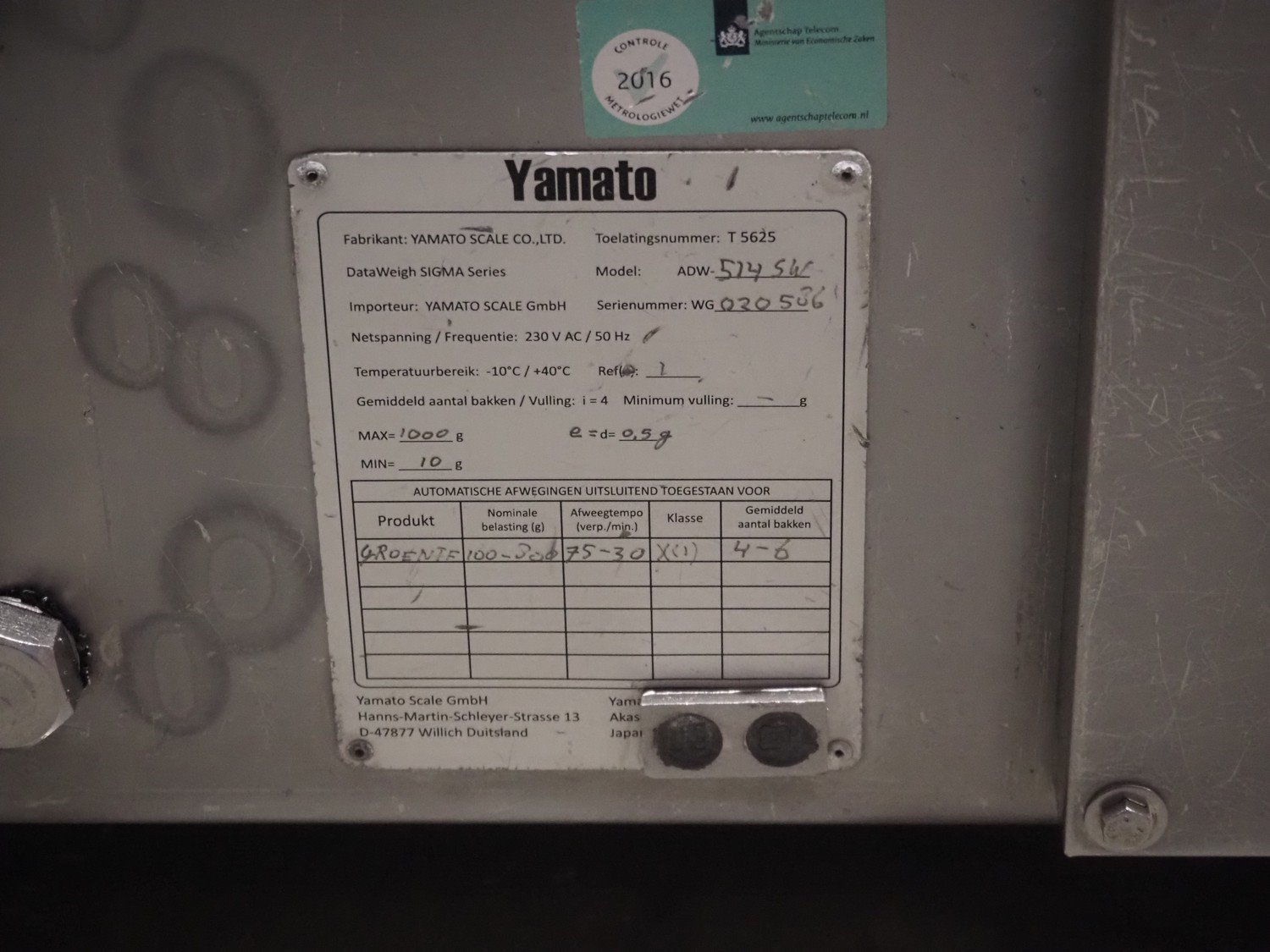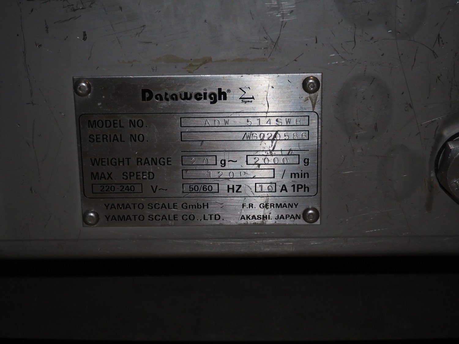 Yamato Scale GmbH/Dataweigh multihead weigher, 14 heads, model: ADW-514SWH, serial number: WG020586, 220/240 V, 1 Ph, 50/60 Hz, 10 A, min: 20 gram, max: 2000 gram, max speed: 120P/min, dimensions: 1400 mm x 1400 mm x 1250 mm. Including pallet box with parts, dimensions pallet box: 1200 mm x 1000 mm x 1250 mm.