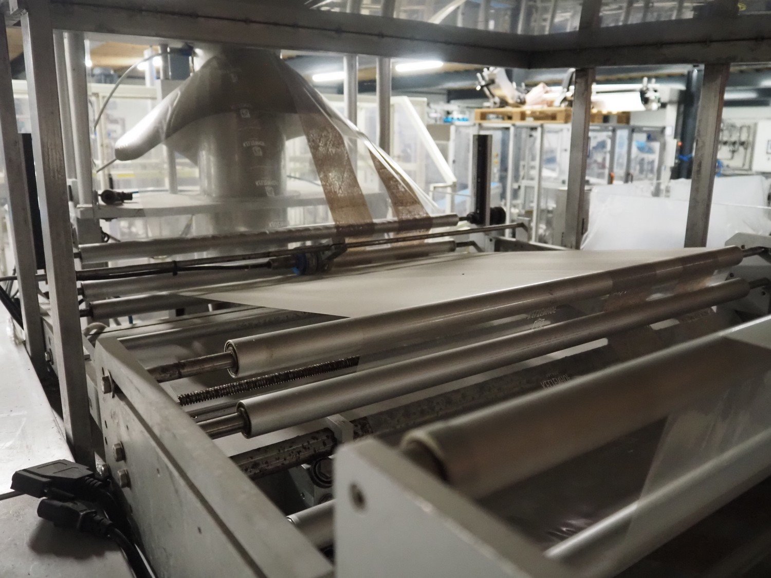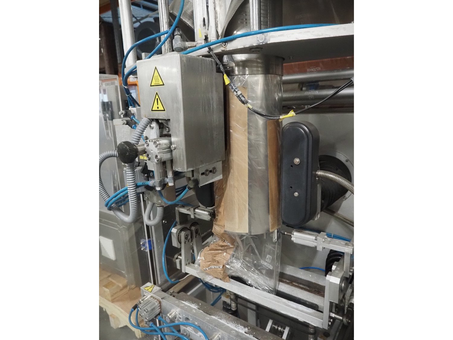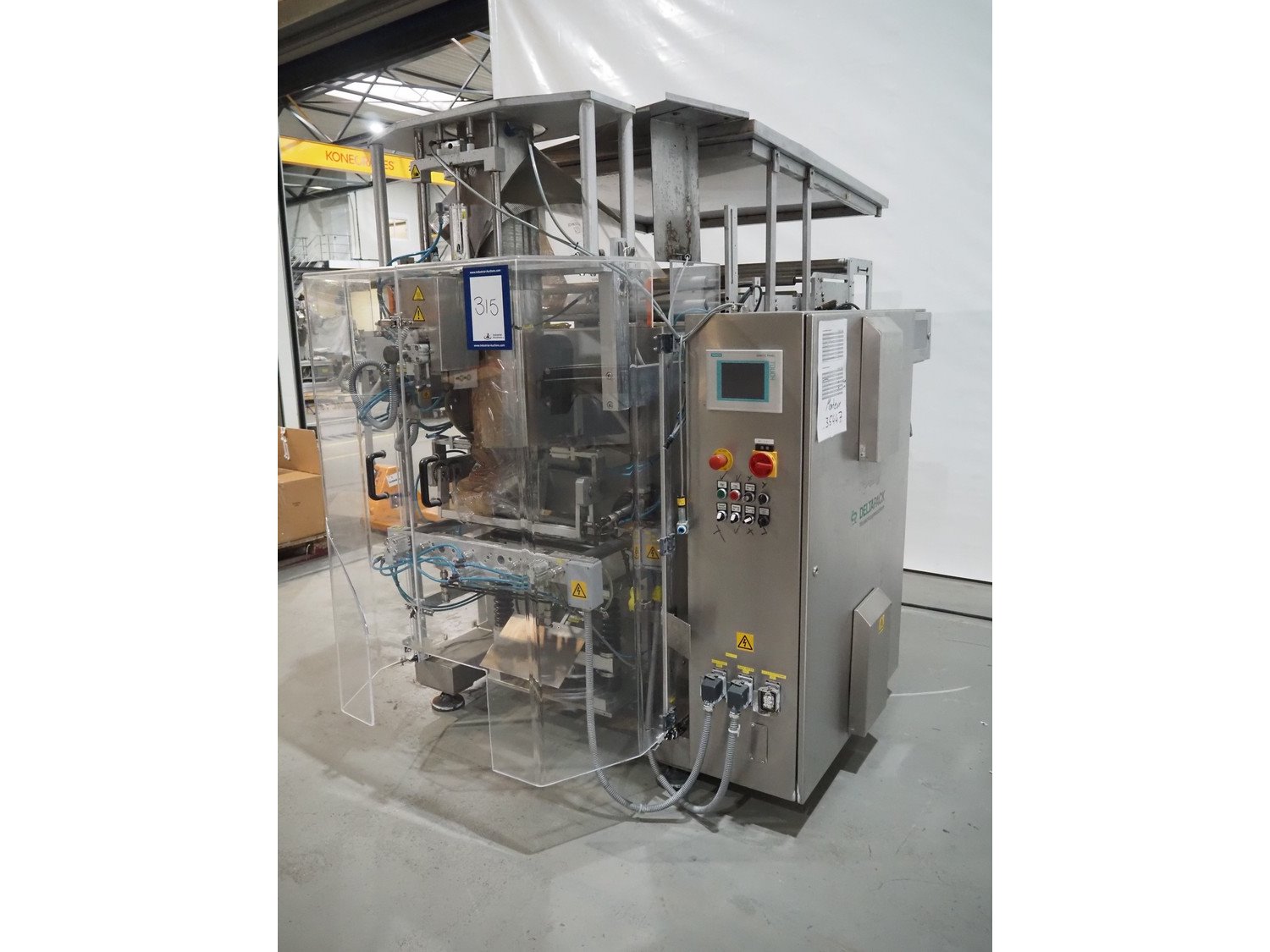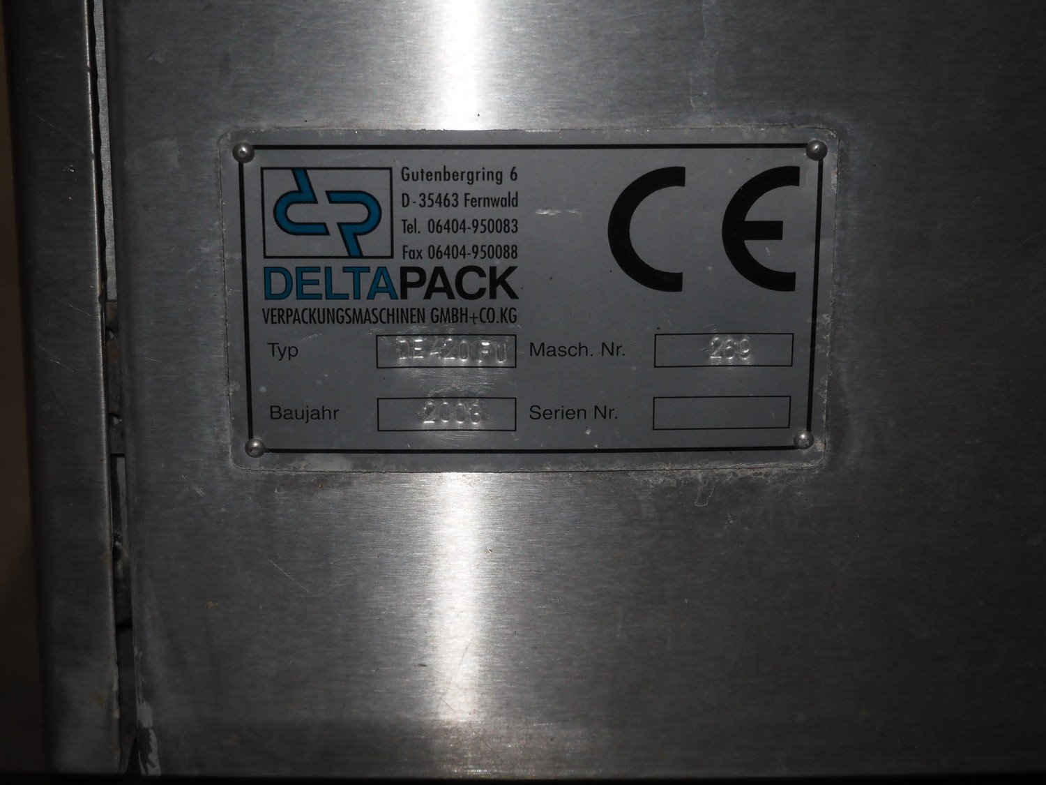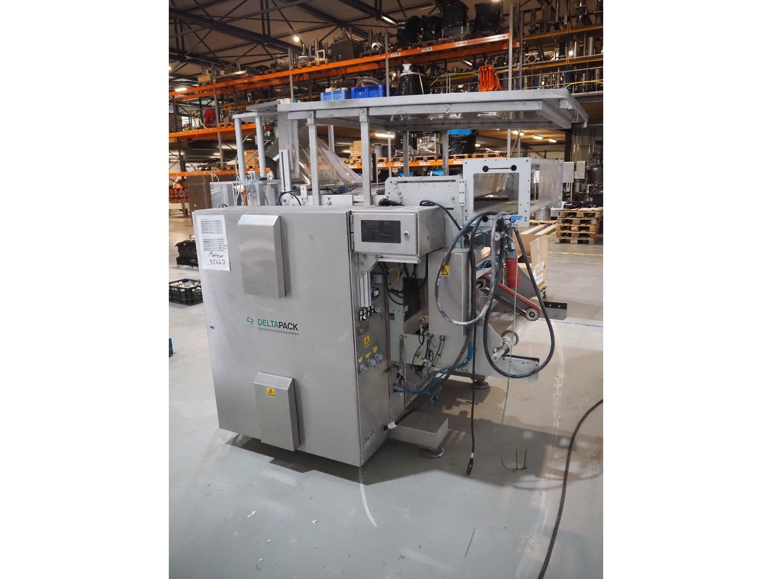 Deltapack vertical bag form-, fill-, and seal machine, type: DE420FU, machine number: 269, year of construction: 2003, film width: 740 mm, vertical seal length: 540 mm, horizontal seal length: 430 mm, total dimensions: 2300 mm x 1550 mm x 2000 mm.