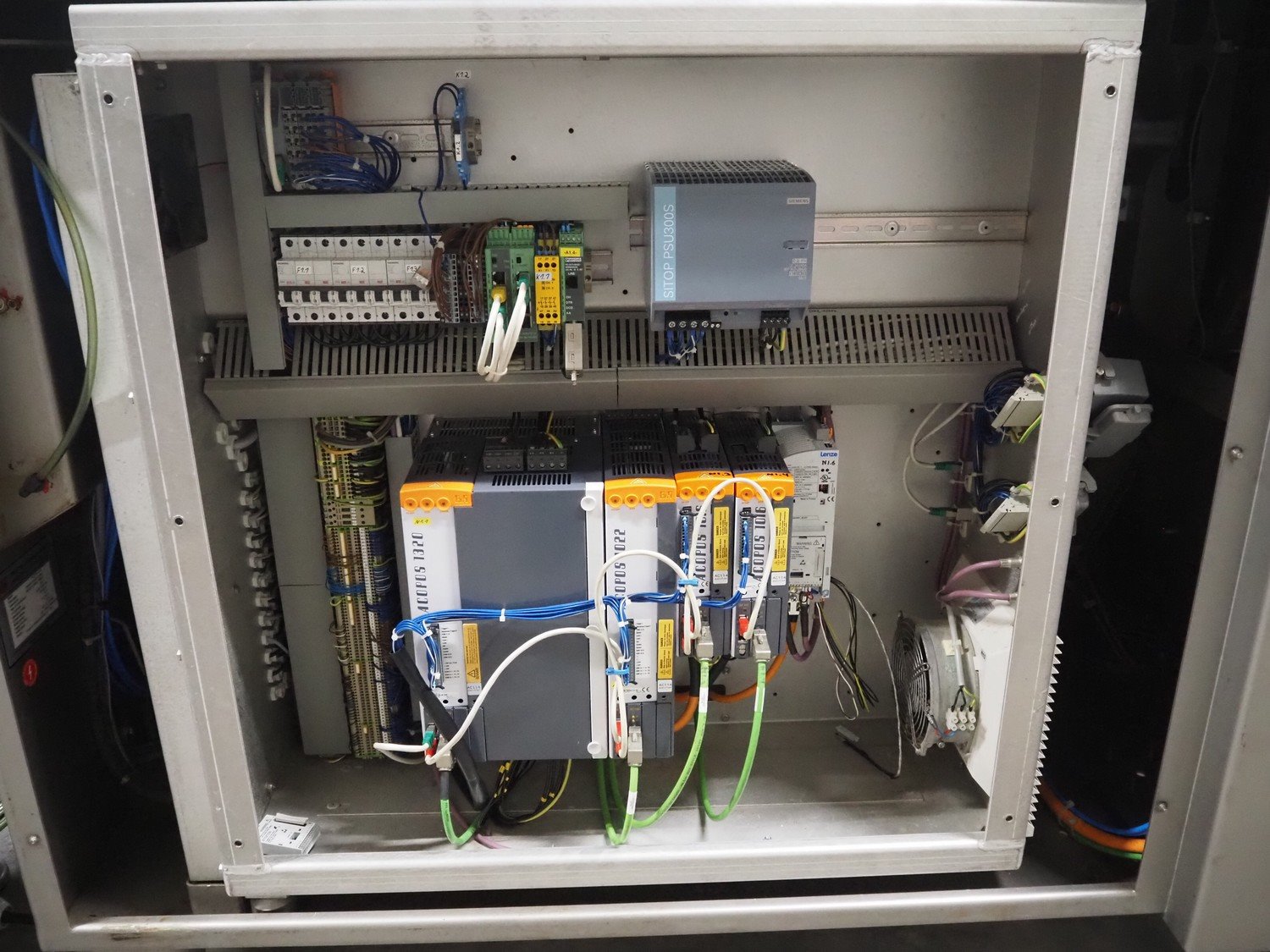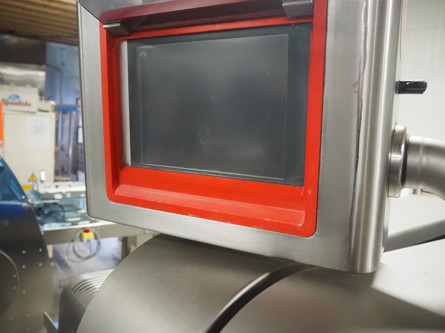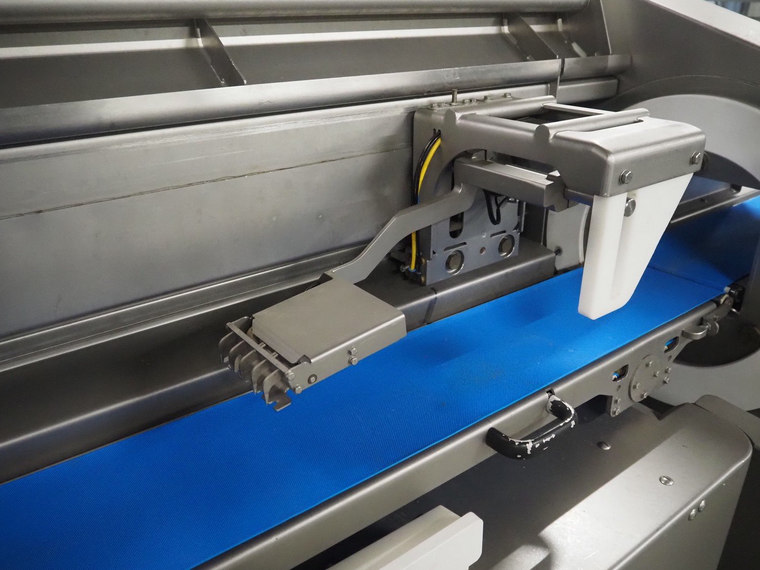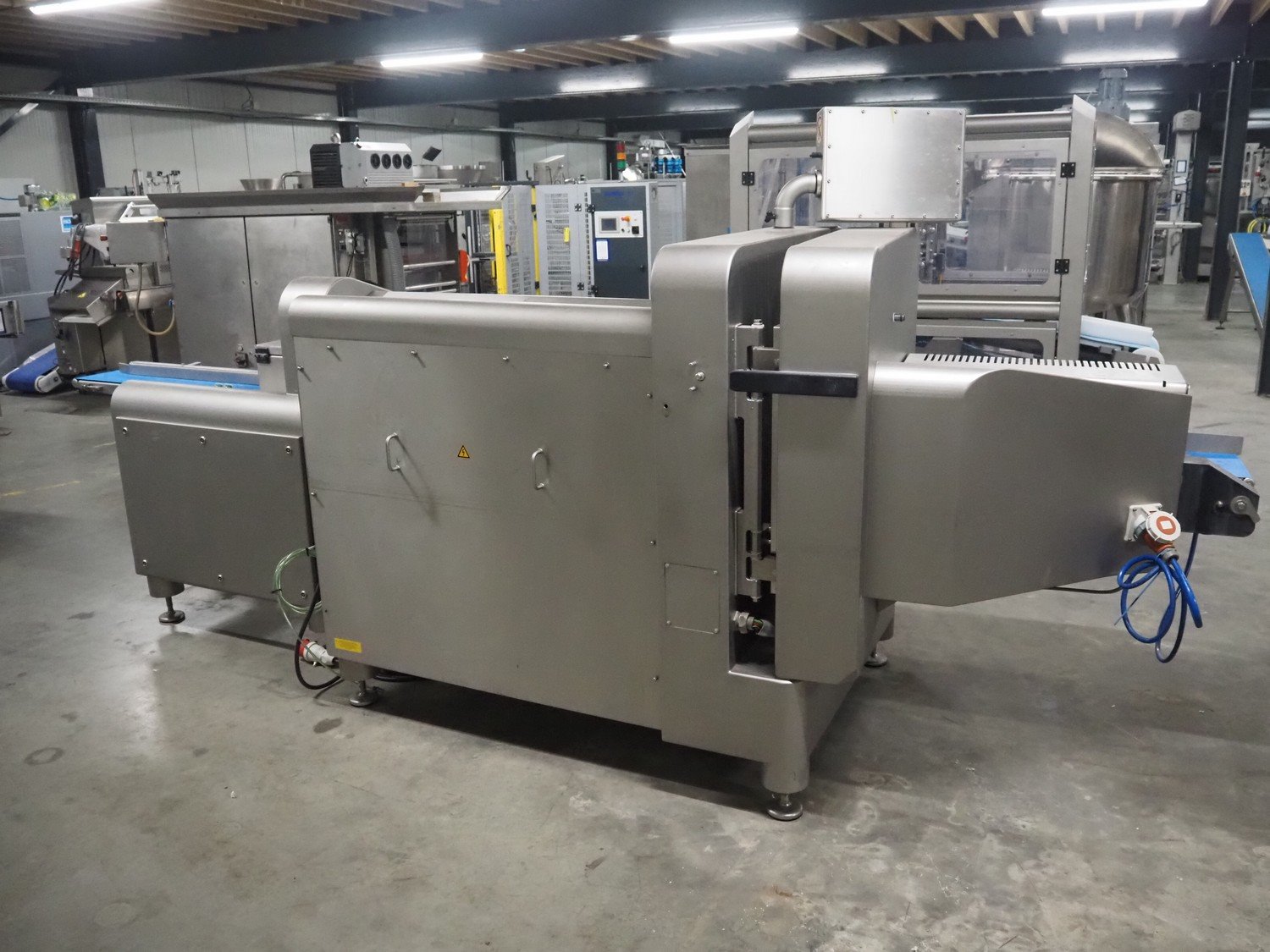 Treif Maschinenbau GmbH slicer and portion cutter, model: FALCON conti, machine number: 461005.154538.110208, year of construction: 2011, 380-480 V, 3 Ph, 50/60 Hz, 32 A, 8.6 kW, weight: 750 kg, plastic belt, belt width: 220 mm, clearance: 290 mm x 180 mm, total dimensions: 4630 mm x 1300 mm x 1900 mm.
