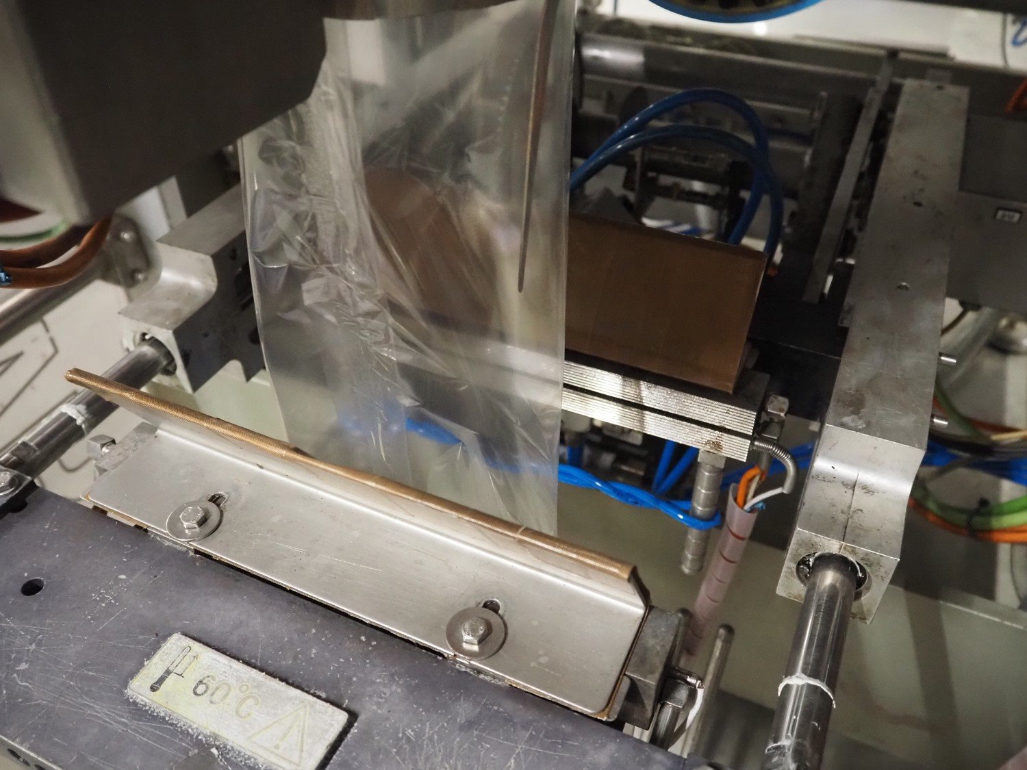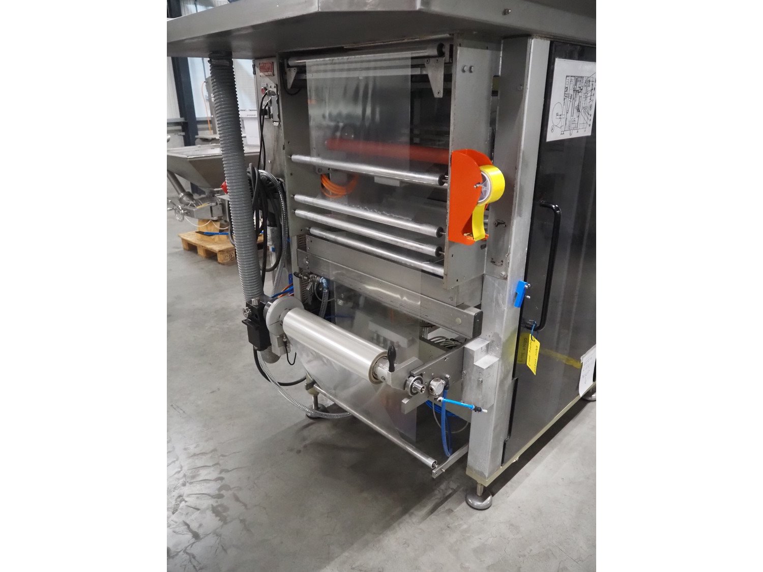 Bosch vertical bag form-, fill- and seal machine, type: SVE 2510 WR, number: 808689MS7533N, year of construction: 2006, film width: 443, diameter filling pipe: 115 mm, vertical seal length: 350 mm, horizontal seal length: 285 mm, total dimensions: 2550 mm x 1500 mm x 1800 mm. Including Garden Denver vacuum pump, type: V-VC 150 (20), capacity: 150 m³ per hour, dimensions: 800 mm x 450 mm x 300 mm.