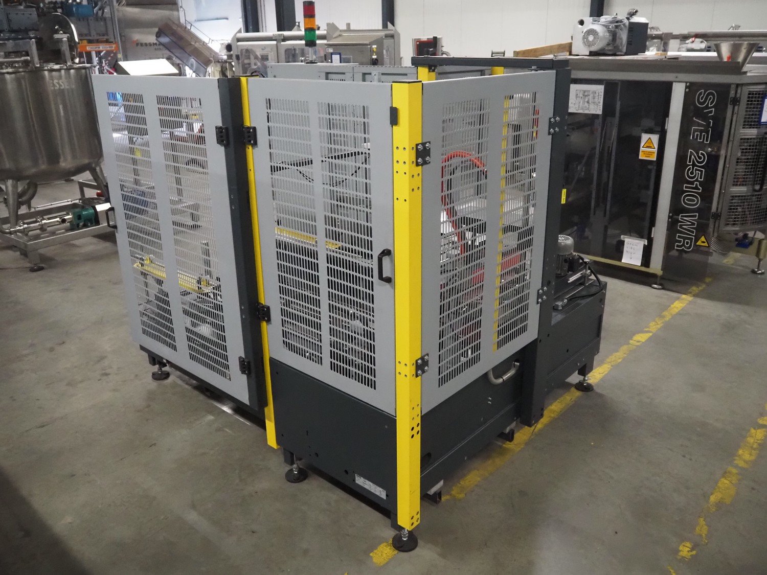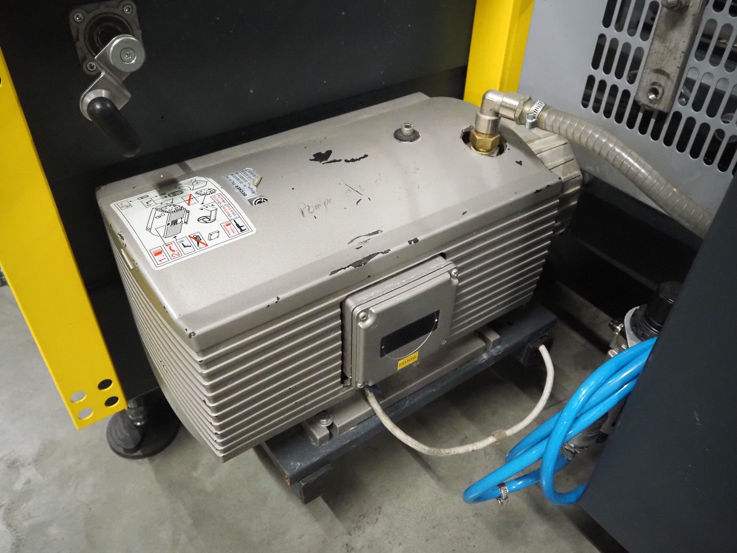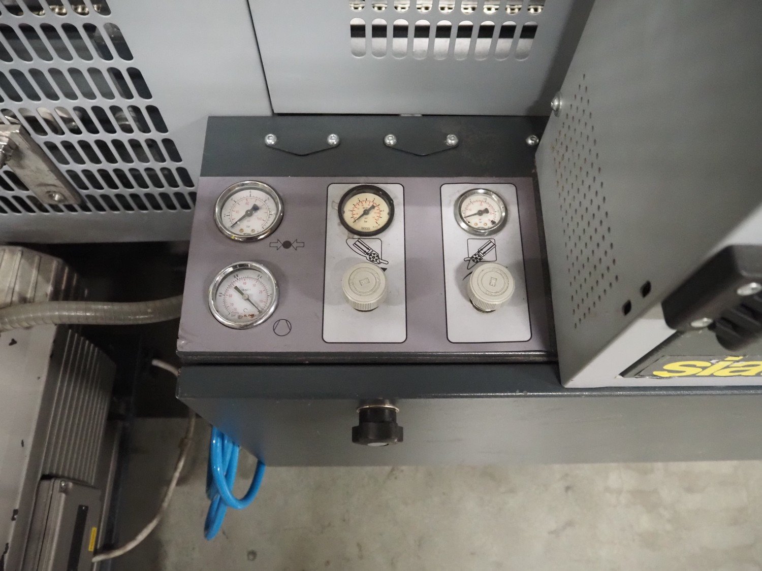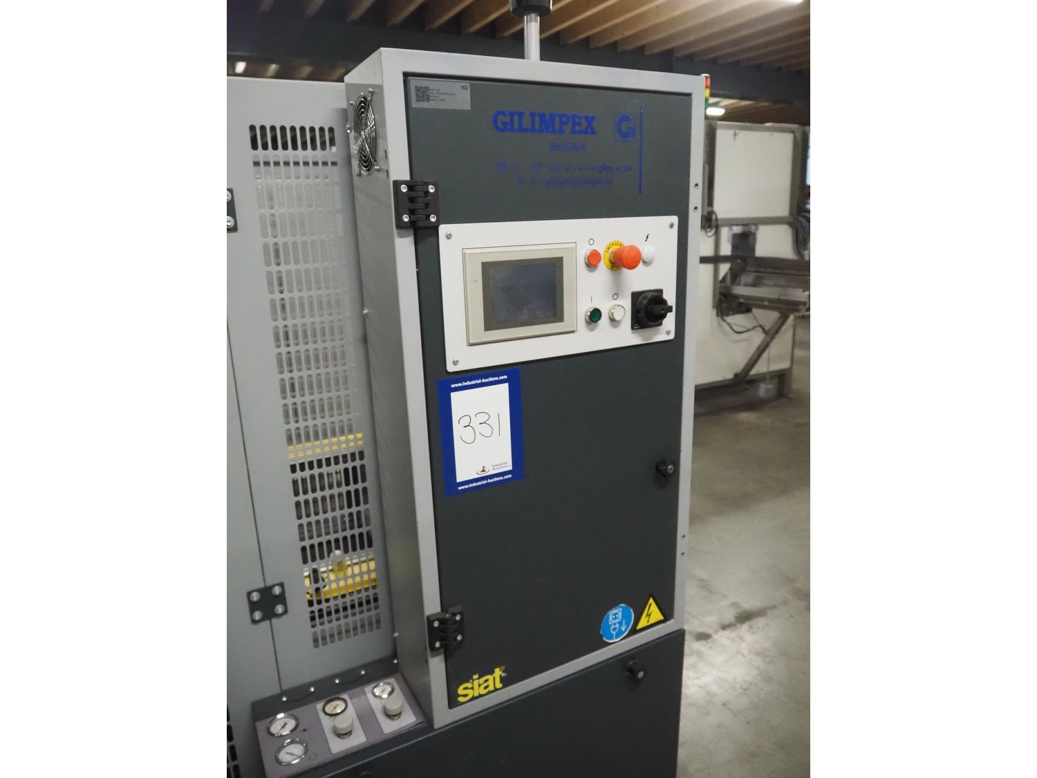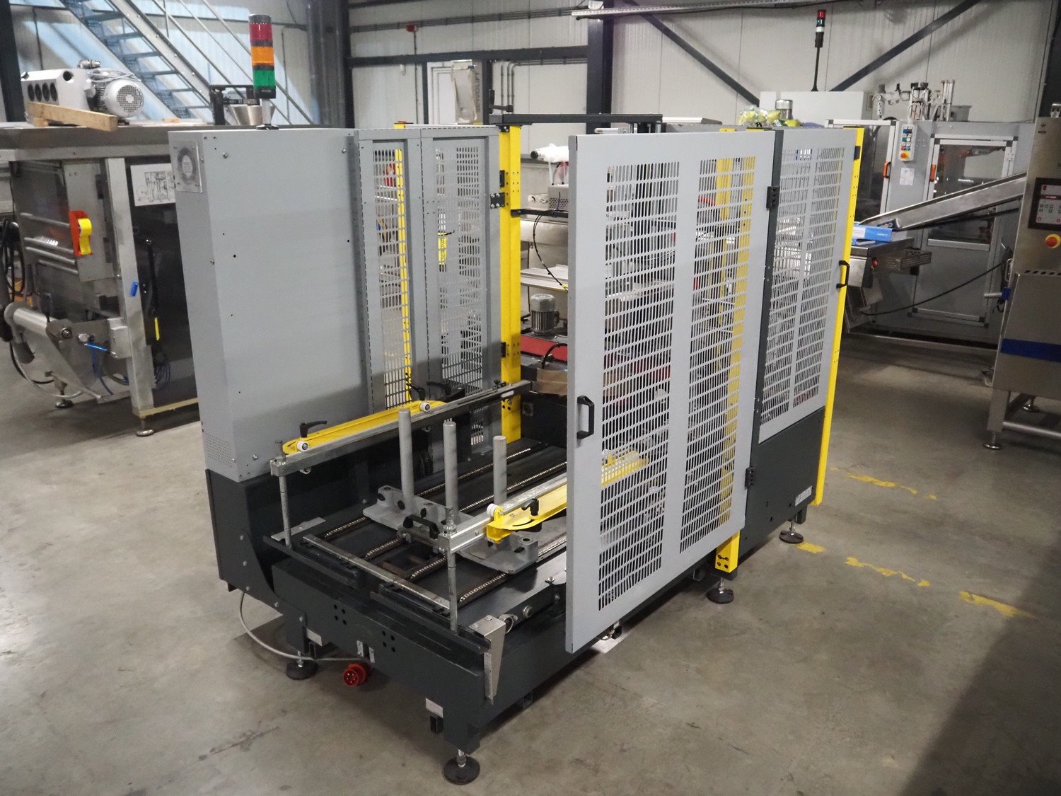 Siat box folding and closing machine, model: F344 SX, serial number: 50001, year of construction: 2011, 400 V, 3 Ph, 50 Hz, 6 A, 1500 W, Becker vacuum pump, infeed conveyor width: 690 mm, total dimensions: 2100 mm x 1750 mm x 2060 mm.