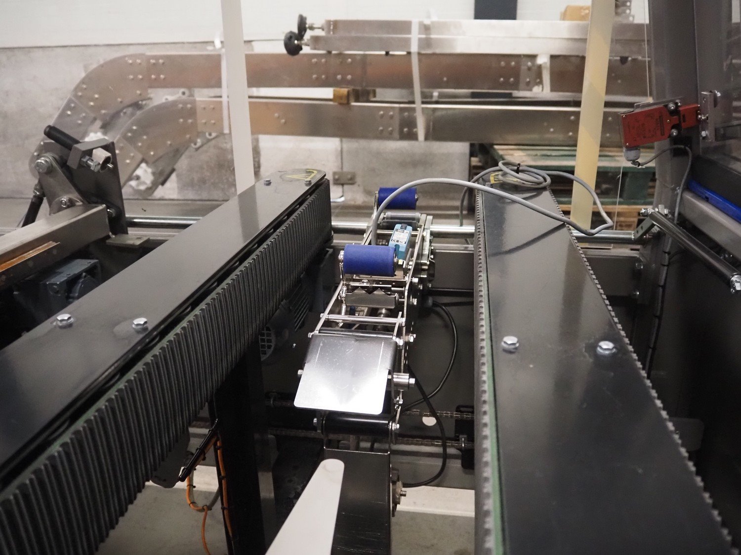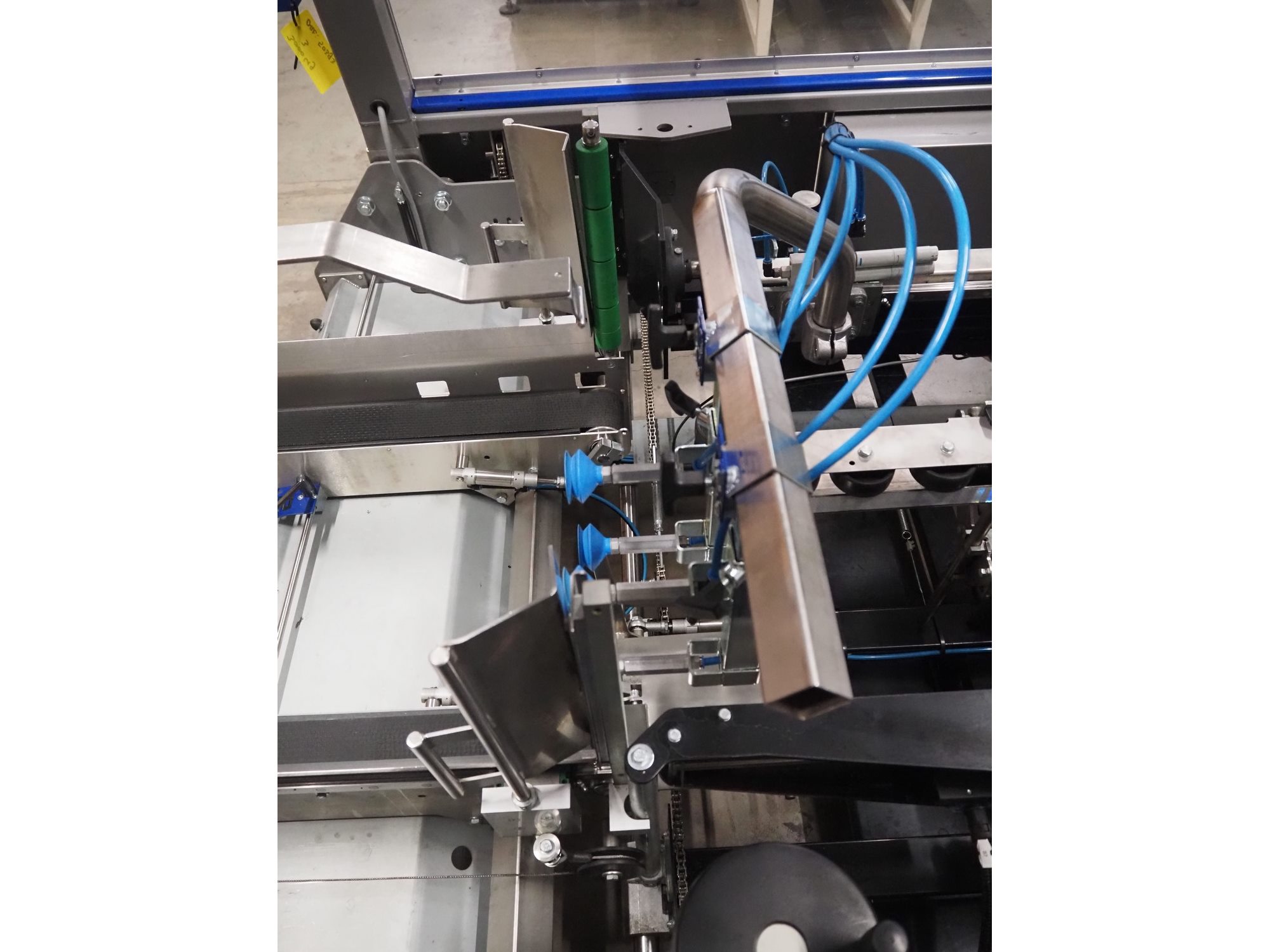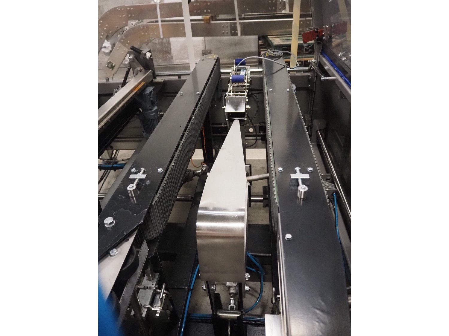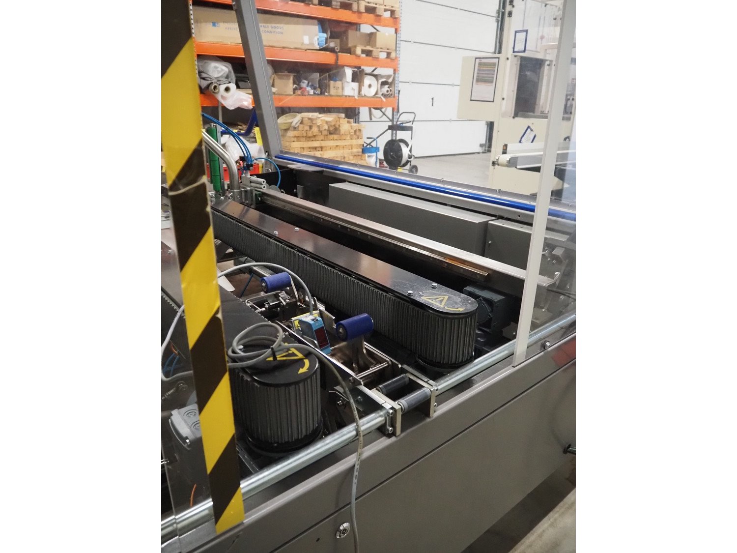 O/K Packaging Systems bv case erector, type: Superformer-1, serial number: 09-21768, year of construction: 2009, 400 V, 3 Ph, 50 Hz, 10 A, weight: 1200 kg, maximum box width: 350 mm, plastic belts, belt width: (2x) 95 mm, total dimensions: 3250 mm x 1700 mm x 2130 mm.