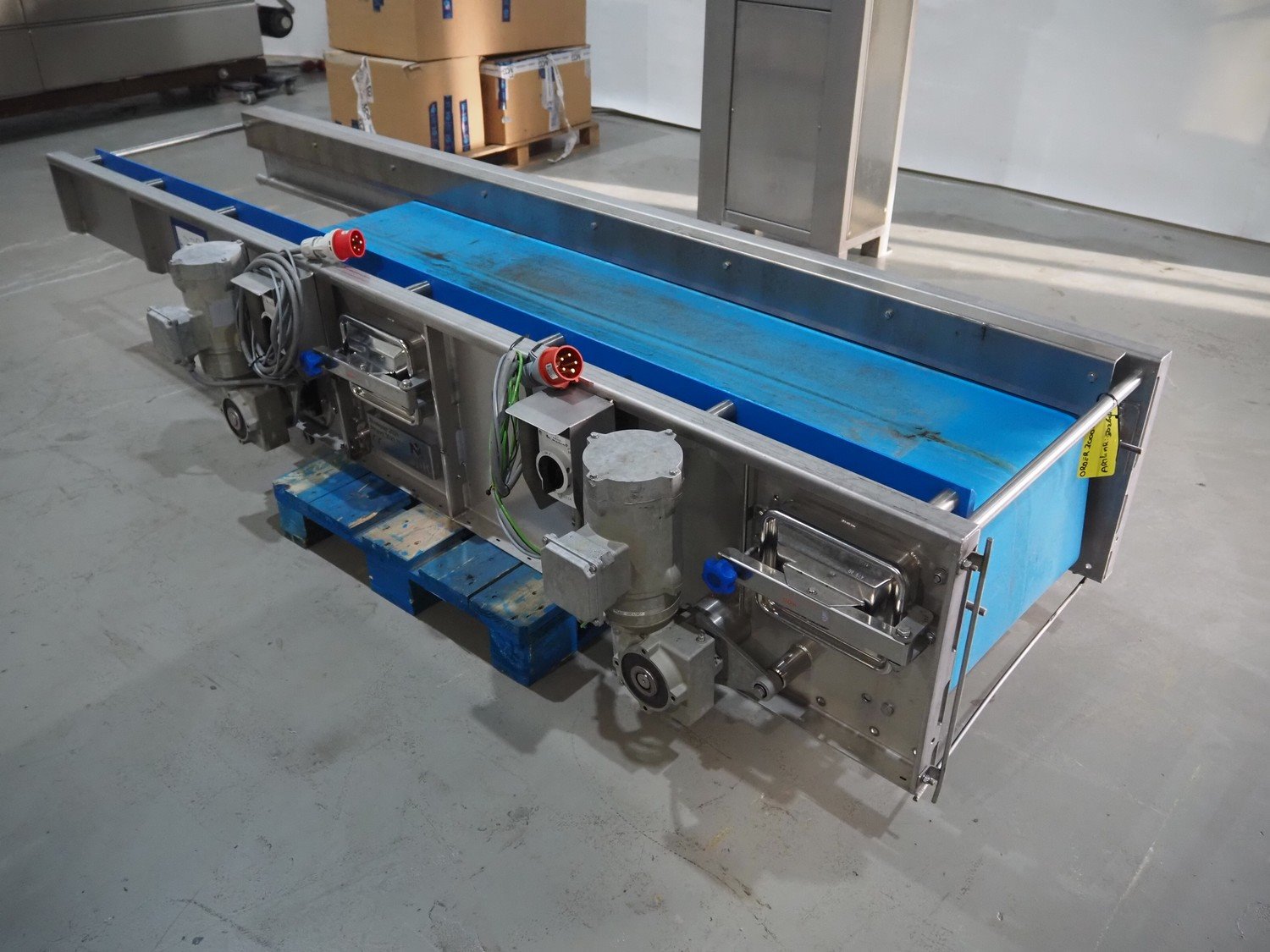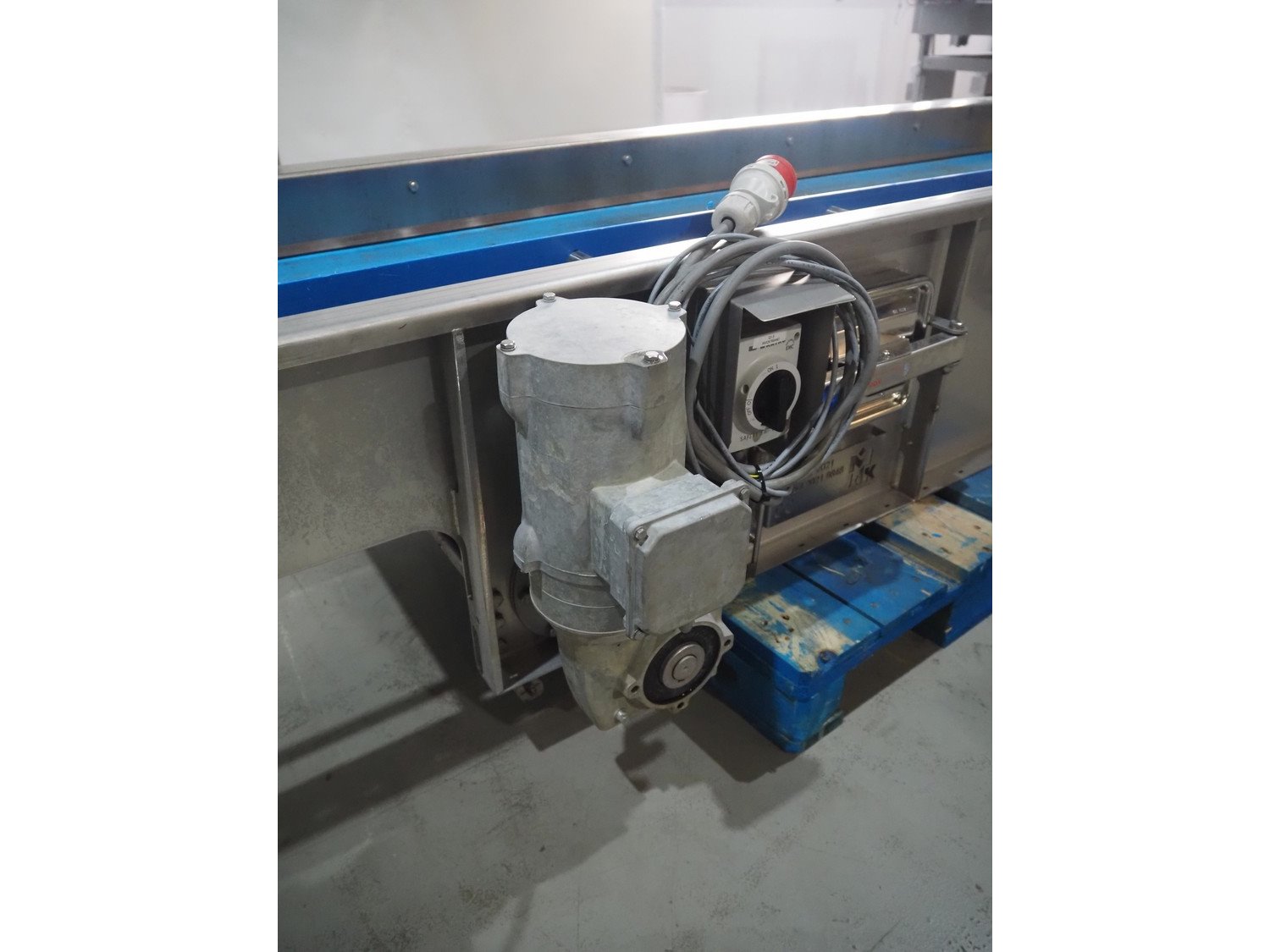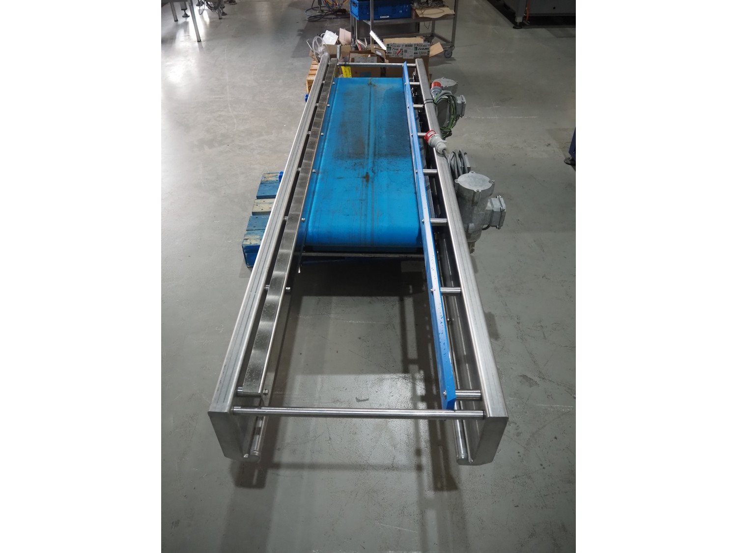 Metaalbewerking JDK shuttle conveyor, number: 2021.9848, year of construction: 2021, plastic belt, belt width: 500 mm, total dimensions: 2900 mm x 1050 mm x 500 mm.