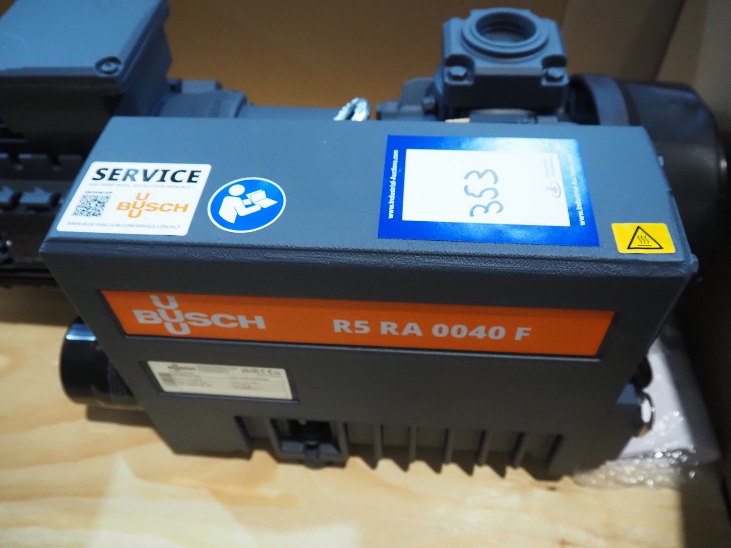 Busch vacuum pump, type: RA 0040 F 5R3, serial number: DEM124430384, year of construction: 2024, capacity: 40 m³ per hour, dimensions: 620 mm x 270 mm x 260 mm.