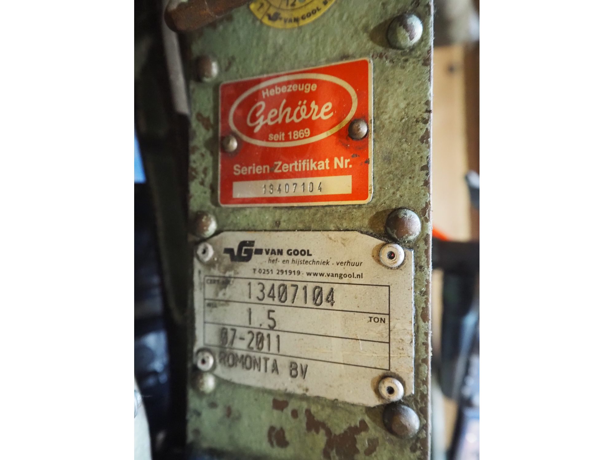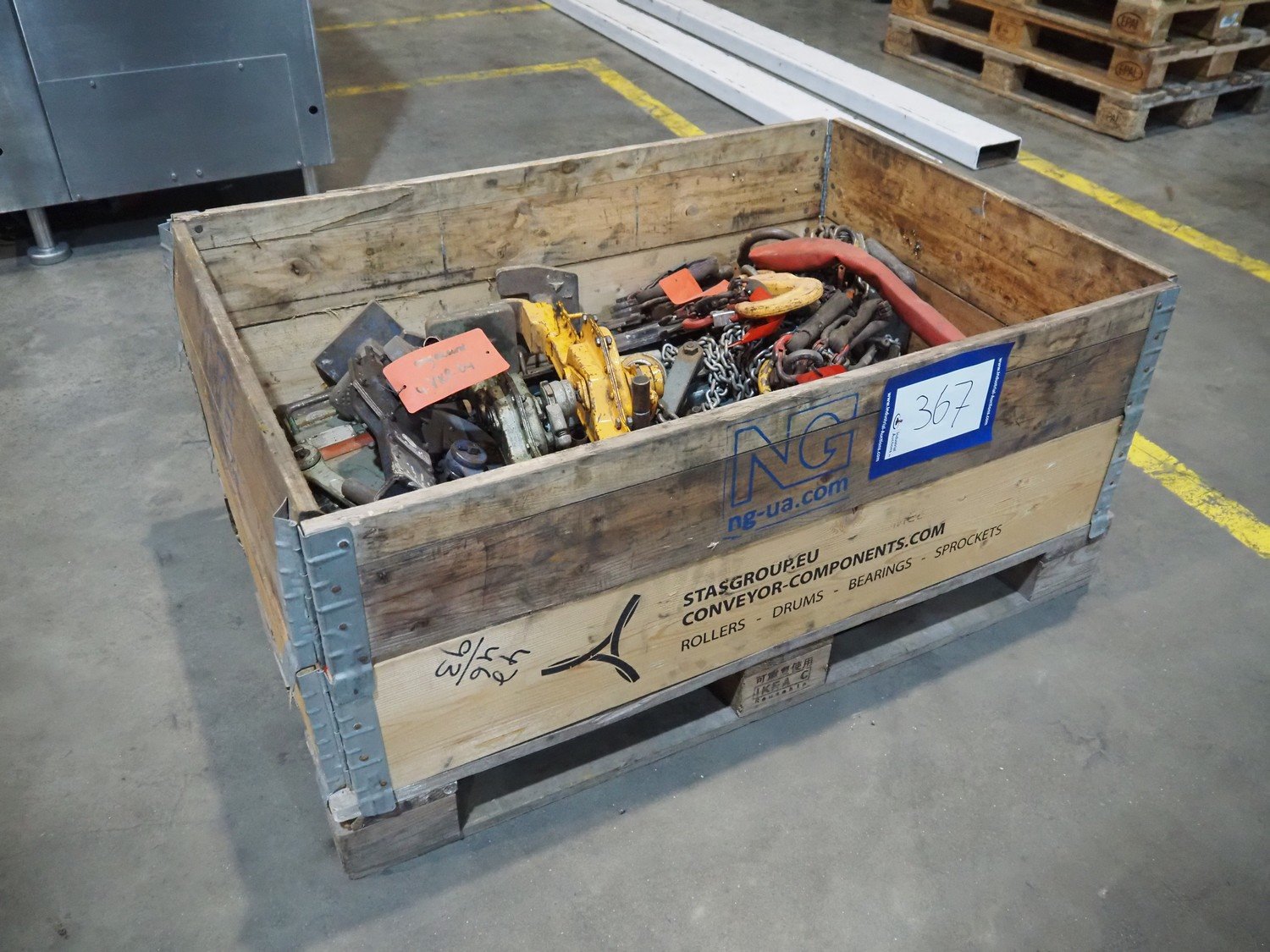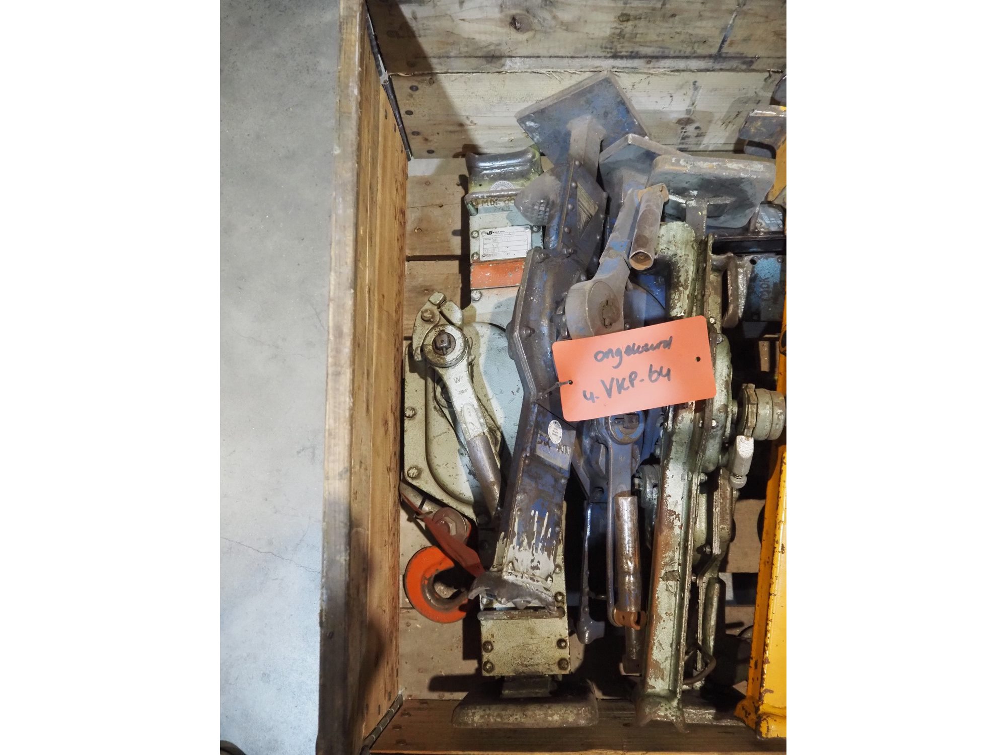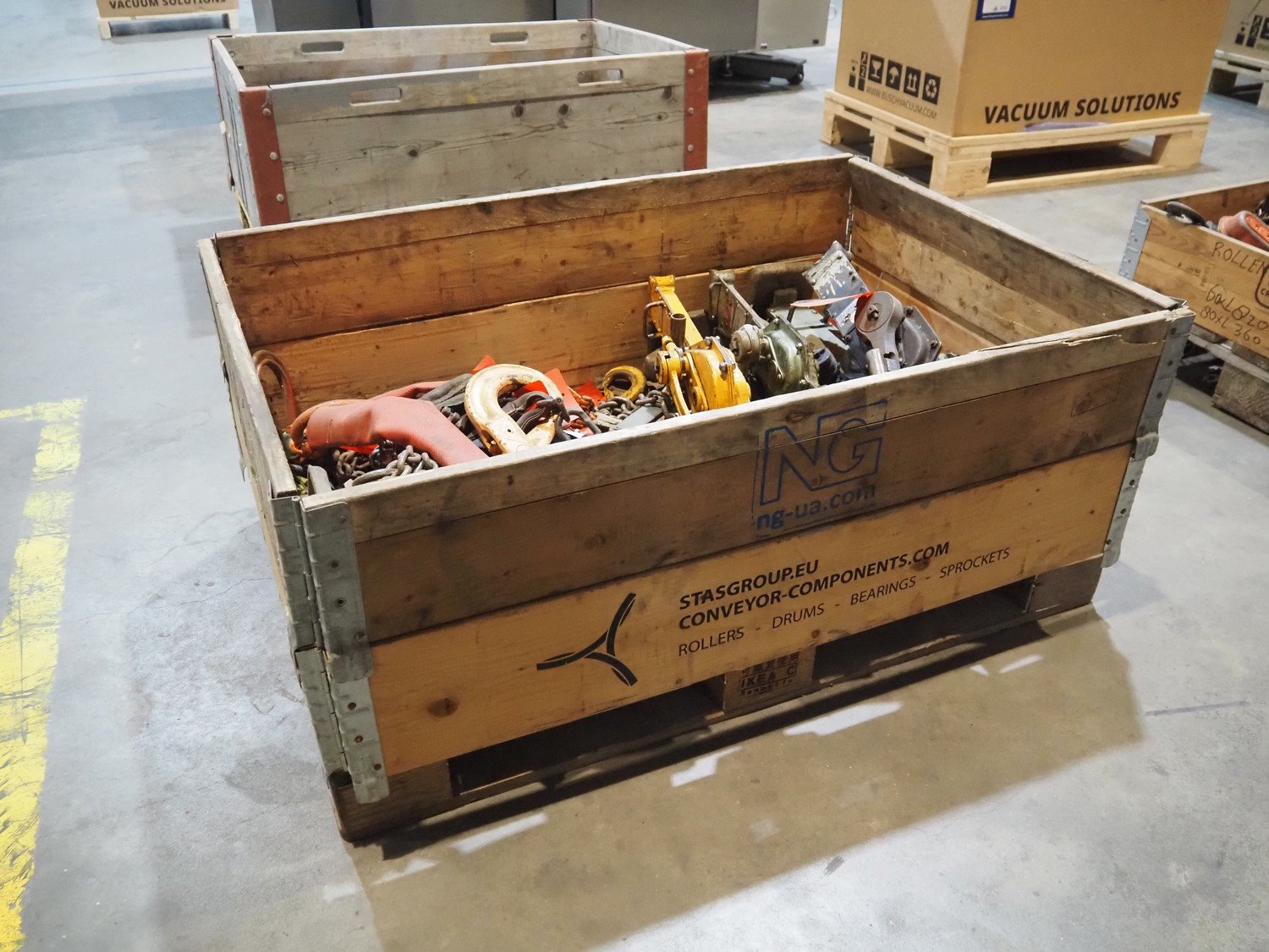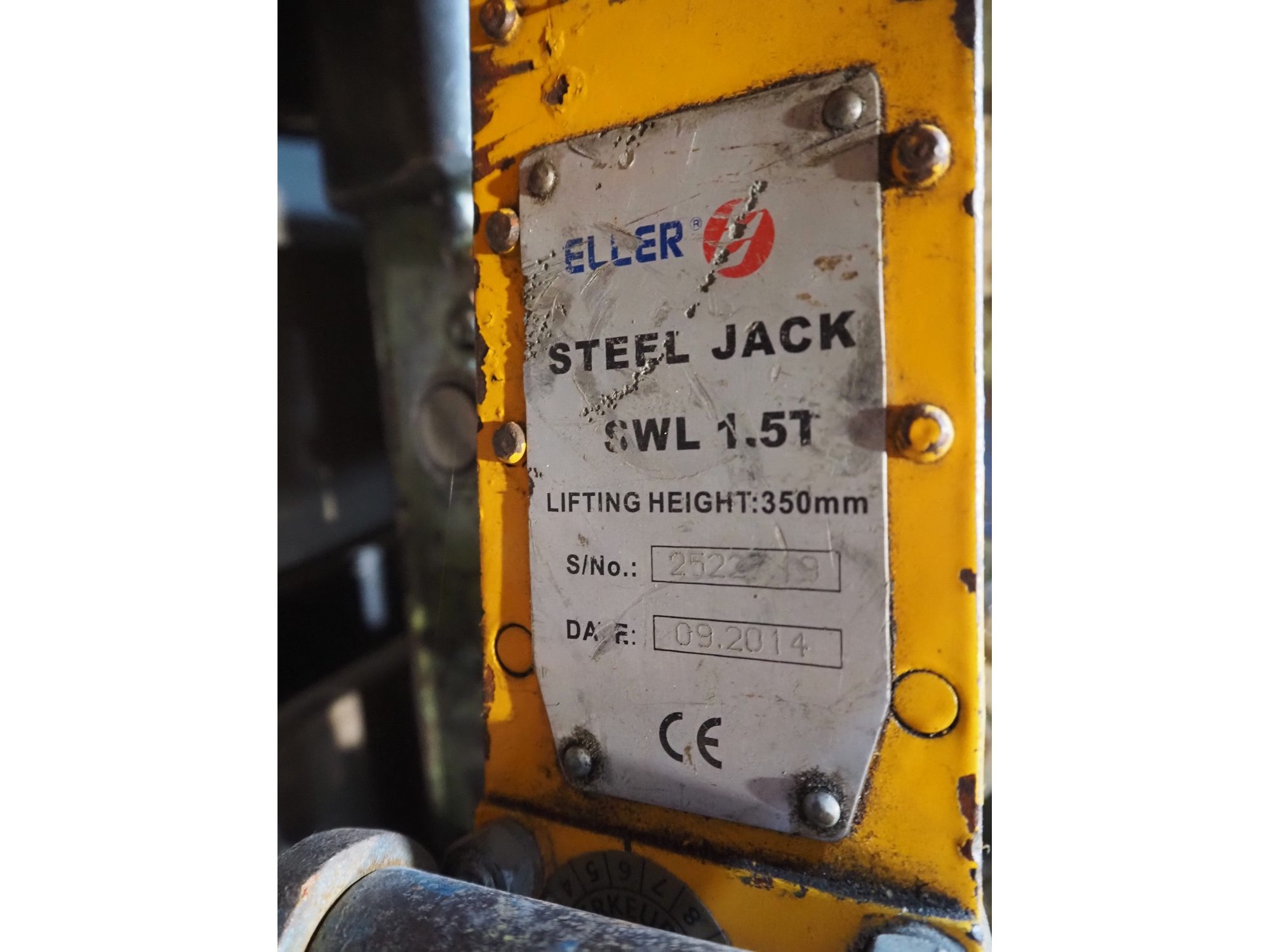Pallet with 8 jacks, capacity: (2x) 250 kg, (3x) 1.5 ton, (2x) 3 ton and (1x) 5 ton, dimensions: 1200 mm x 800 mm x 600 mm.