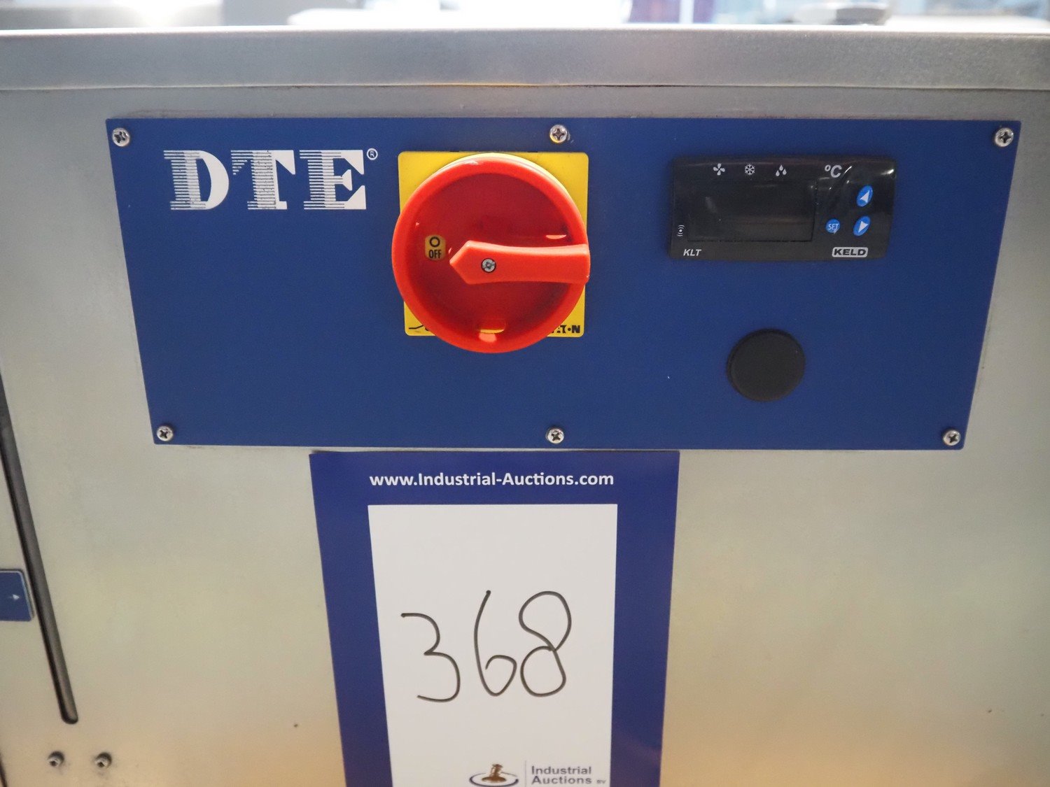 DTE chiller, type: K-004.9, manufacturing number: D2185000291004, year of construction: 08-2021, 220-240 V, 1 Ph, 50 Hz, 12.27 A, refrigerant: R-407C, 1.1 kg, dimensions: 700 mm x 550 mm x 500 mm.