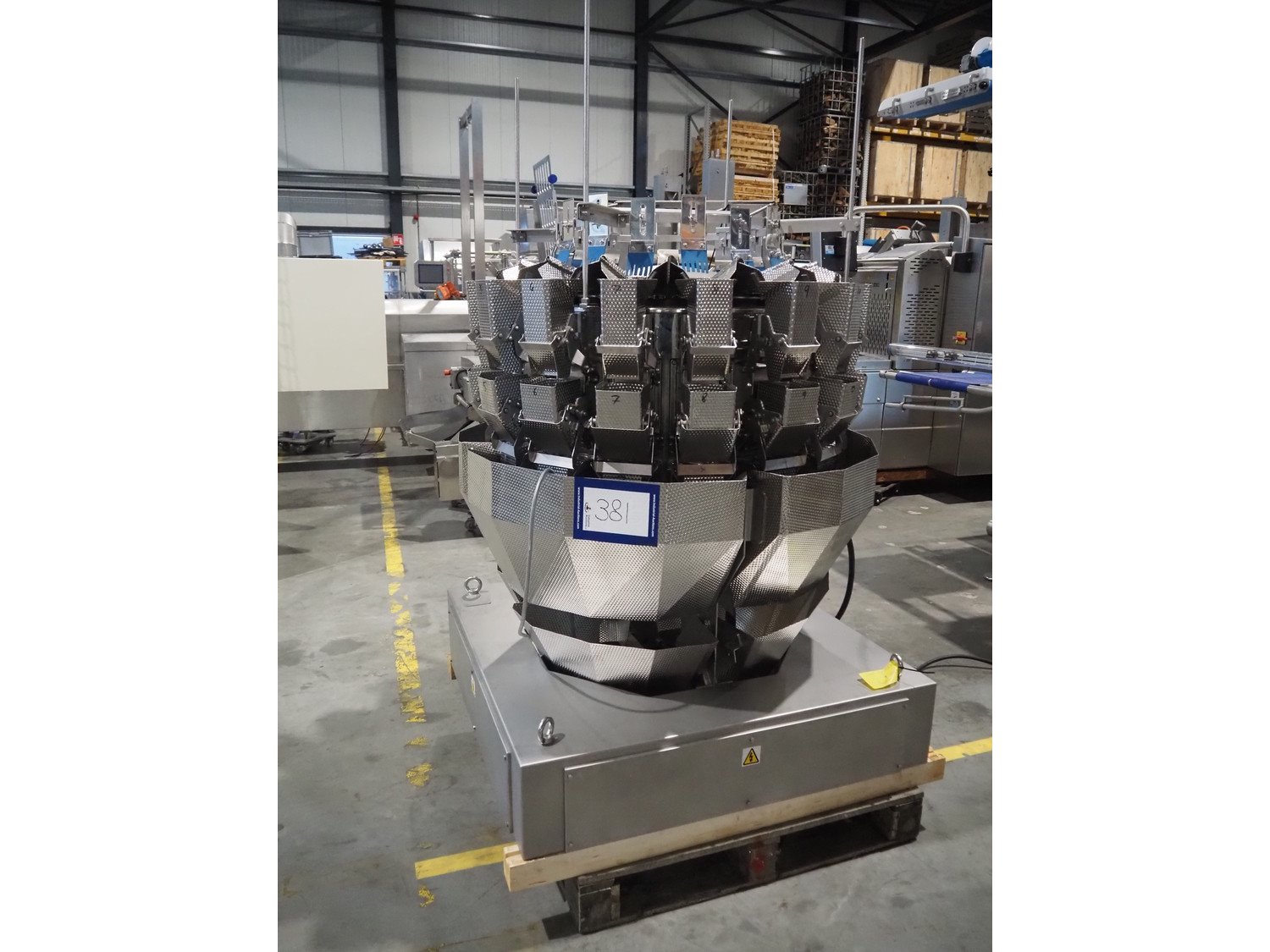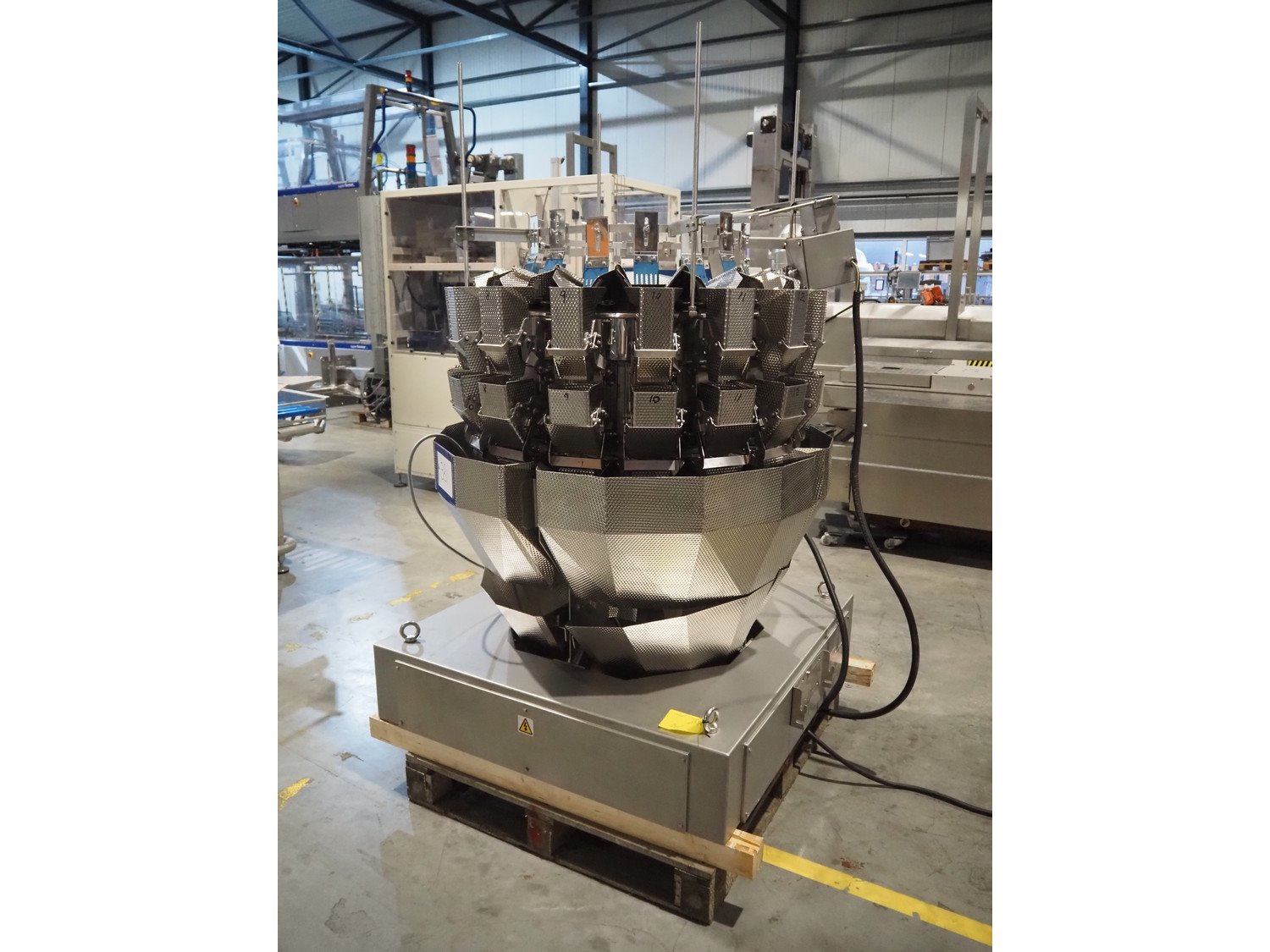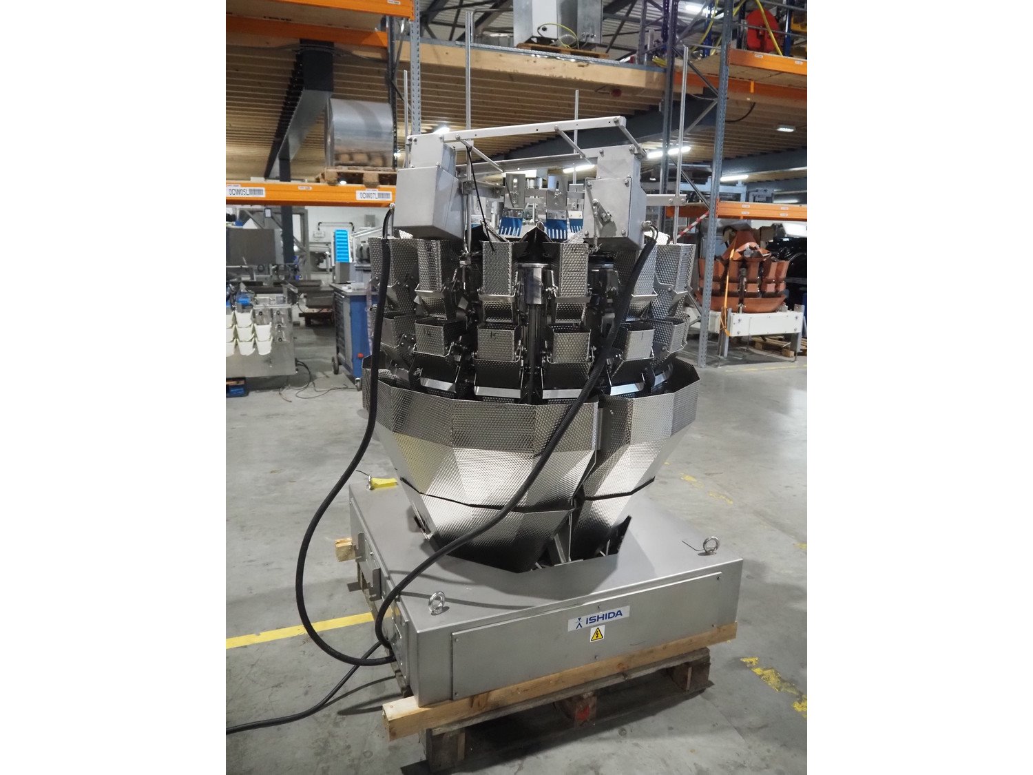 Ishida 16-heads multihead weigher, model: CCW-RVE-216B1D/15-SS, serial number: 560012161, year of construction: 08/2017, 240 V, 1 Ph, 50 Hz, 11.3 A, weight: 535 kg, dimensions: 1750 mm x 1600 mm x 2850 mm.