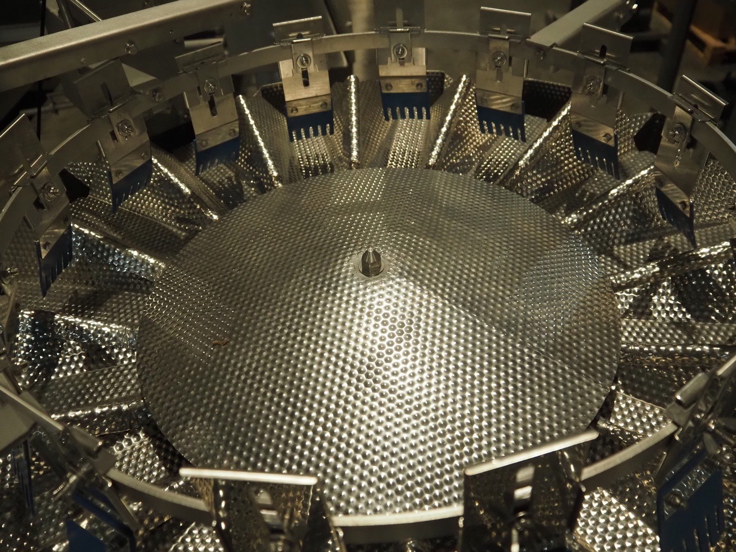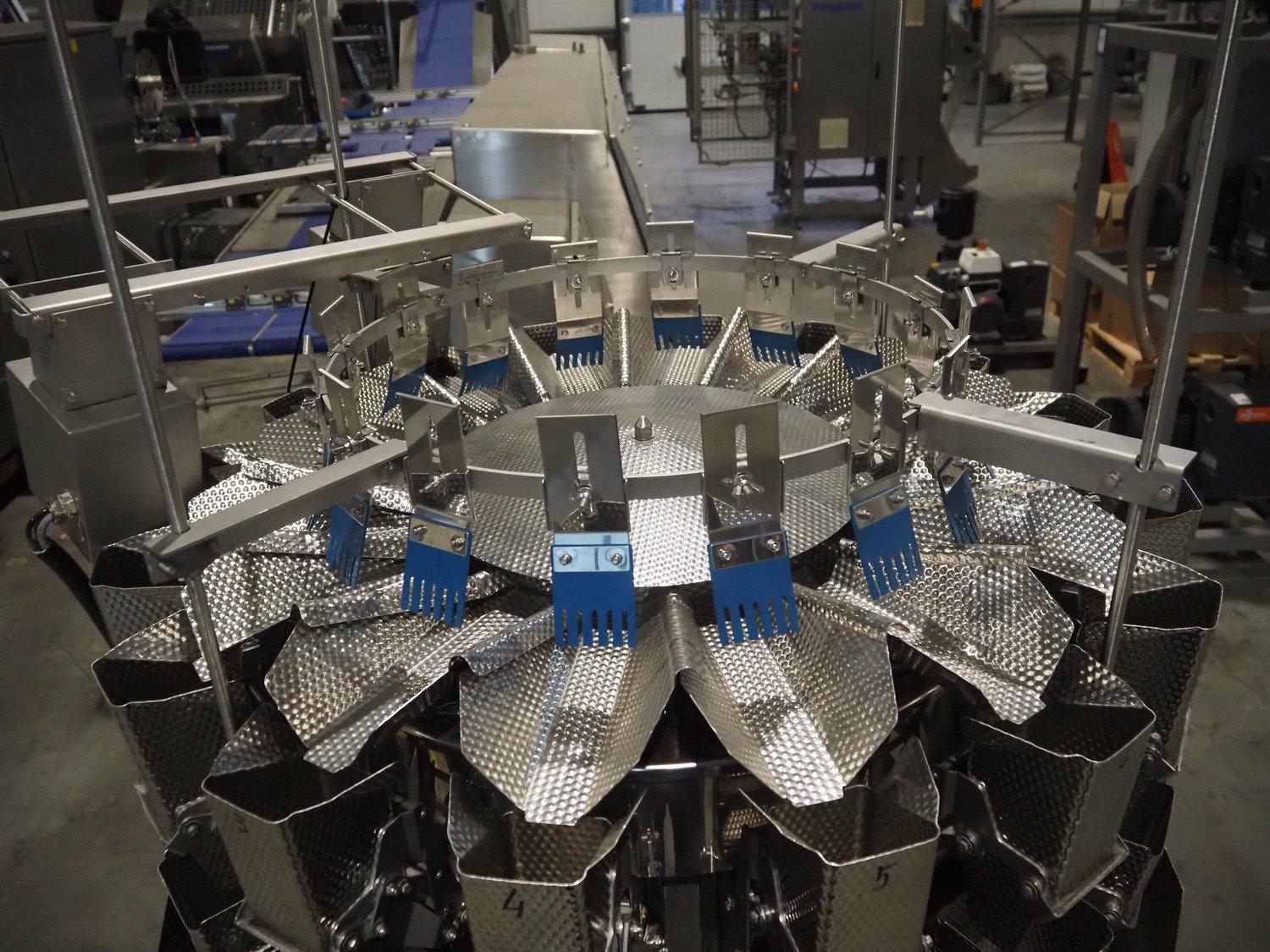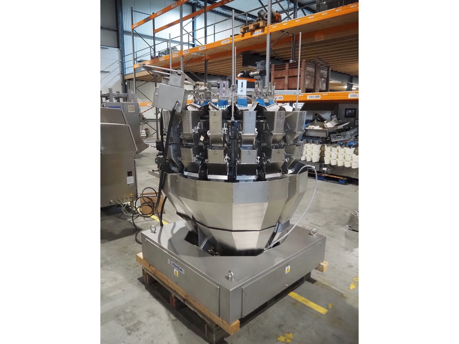 Ishida 16-heads multihead weigher, model: CCW-RVE-216B1D/15-SS, serial number: 560012161, year of construction: 08/2017, 240 V, 1 Ph, 50 Hz, 11.3 A, weight: 535 kg, dimensions: 1750 mm x 1600 mm x 2850 mm.