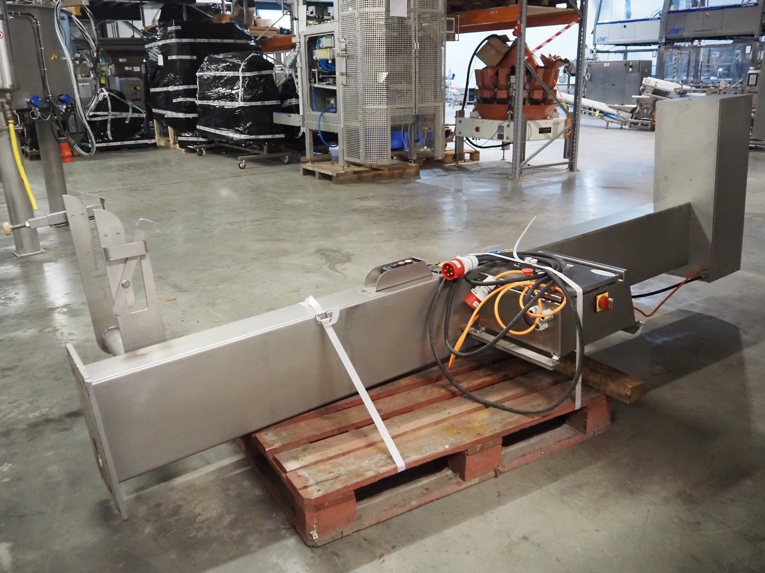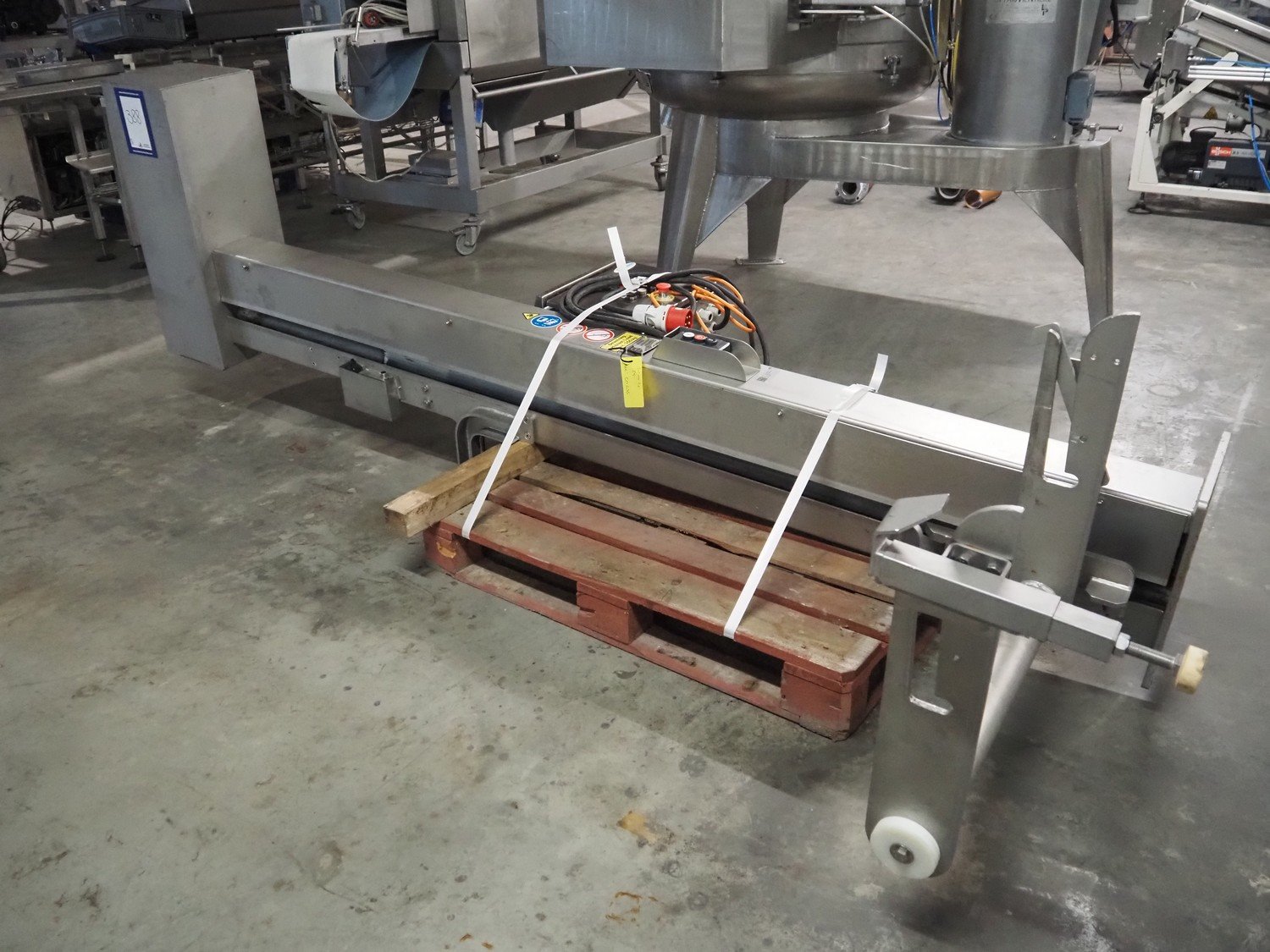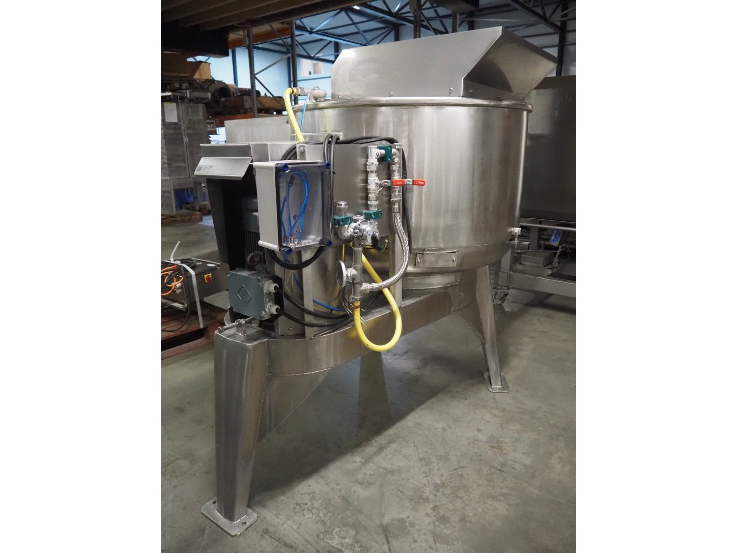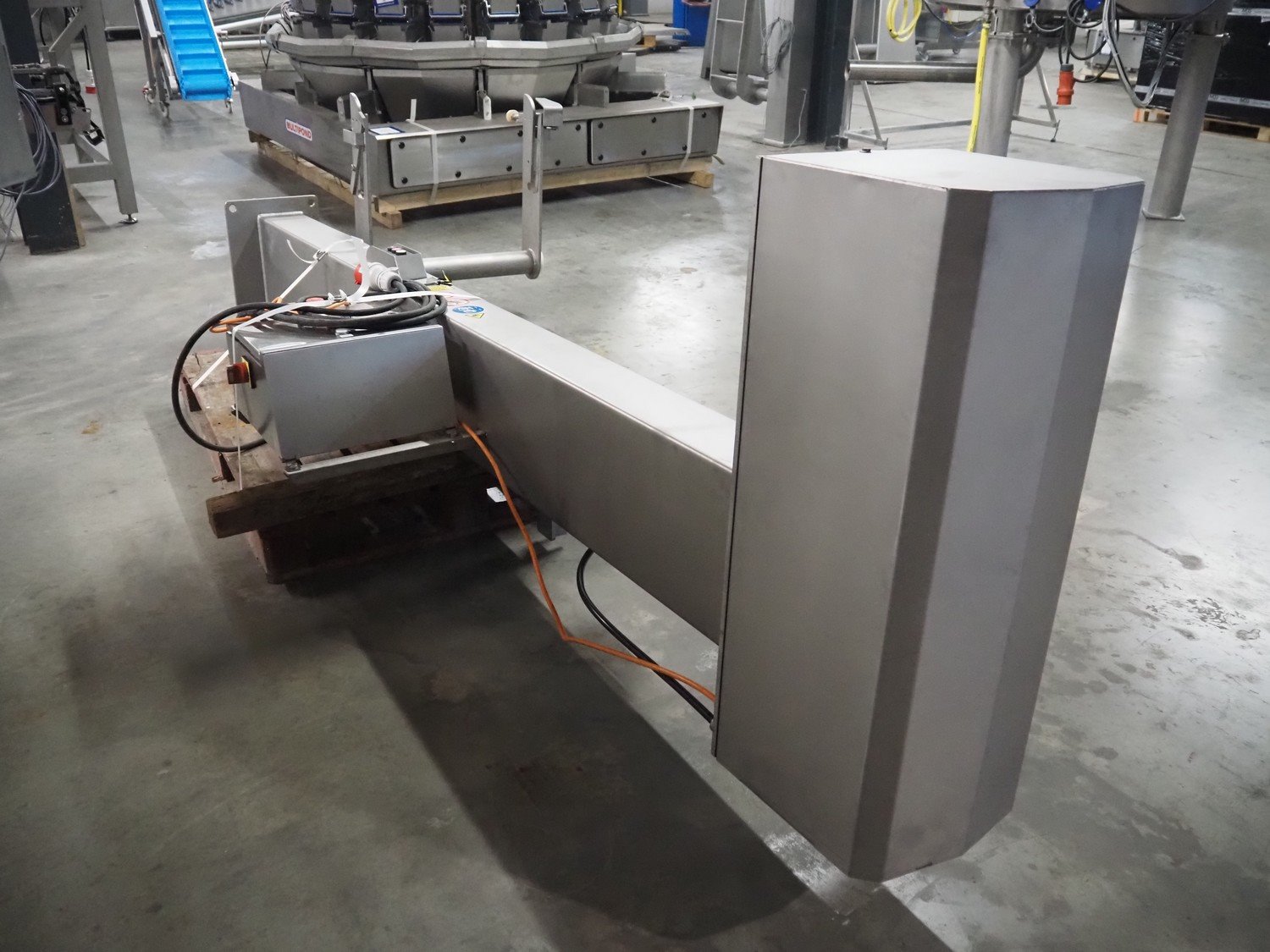 La Parmentiere dehairing machine with Carsoe lifter for meat bins, type: 770P, machine number: 770P414, year of construction: 06.2020, type lifter: HKV 300, serial number: FOD-10811, year of construction: 2020, 400 V, 3 Ph, 0.75 kW, dimensions: 2050 mm x 1800 mm x 1870 mm, dimensions lifter: 3150 mm x 1500 mm x 900 mm.