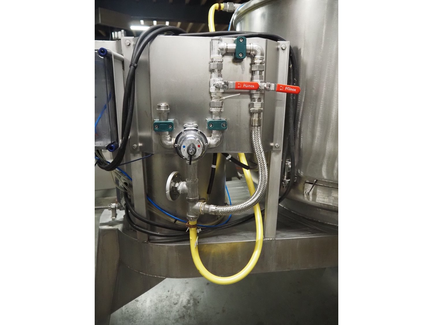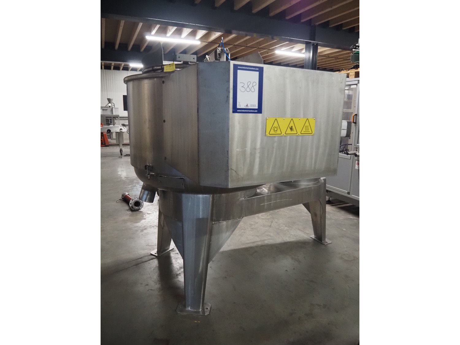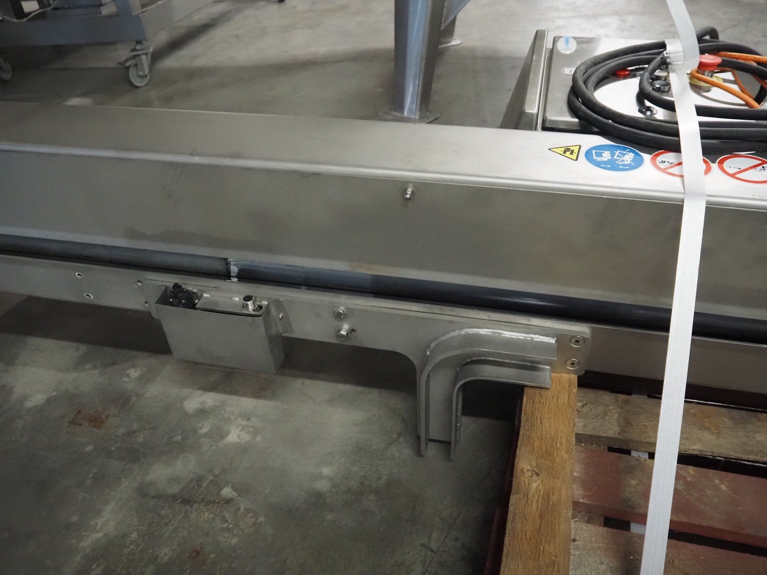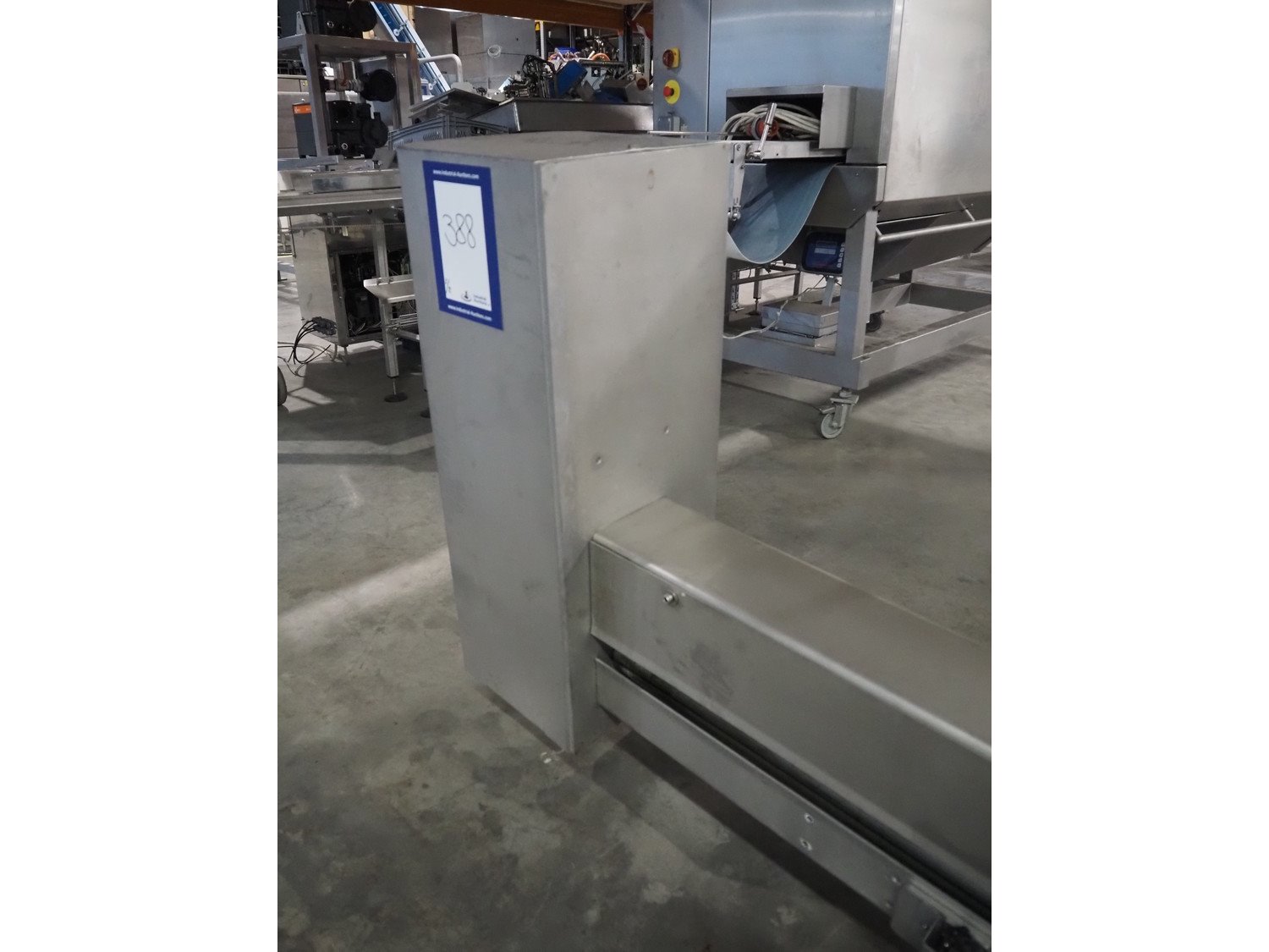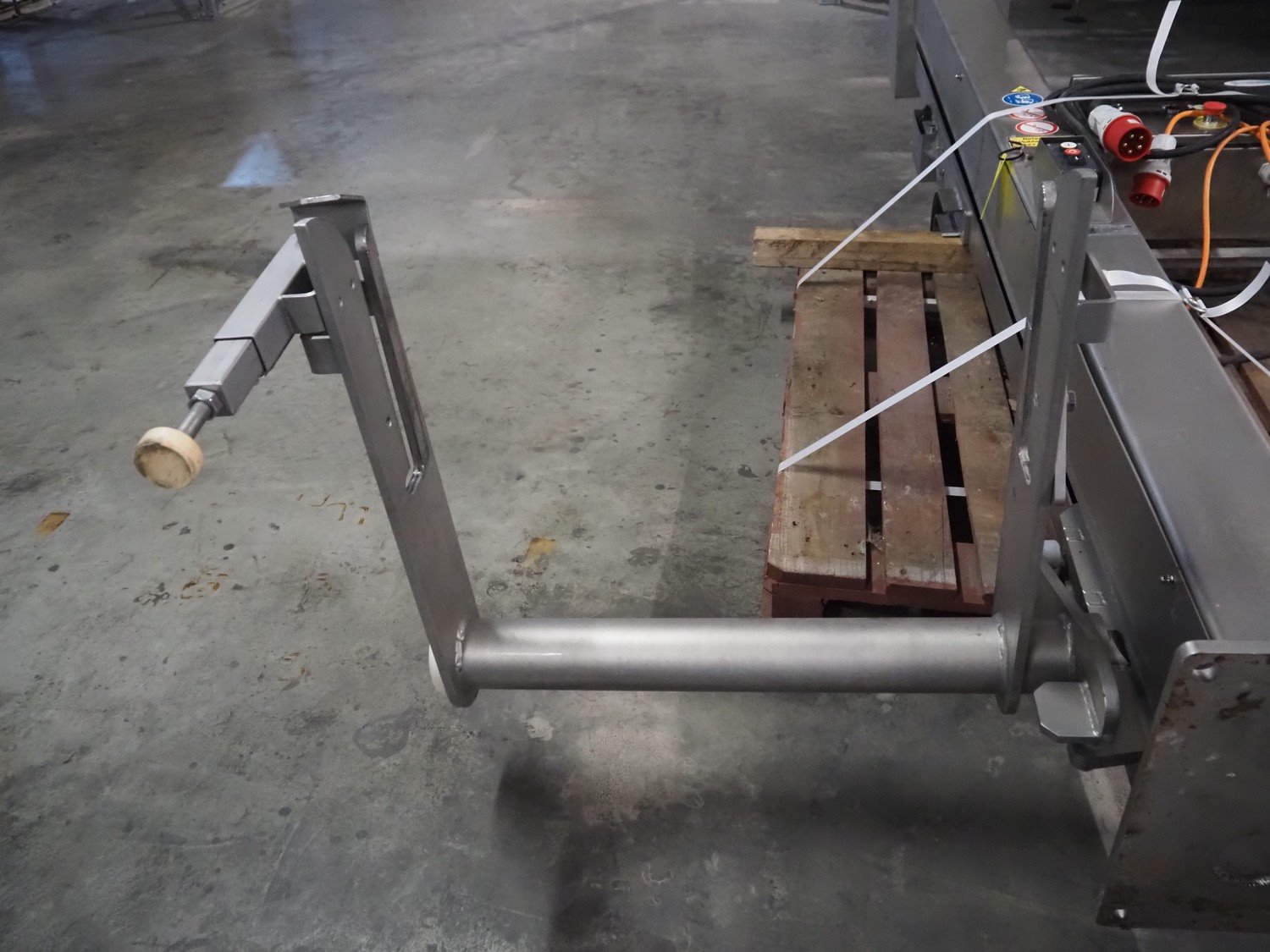 La Parmentiere dehairing machine with Carsoe lifter for meat bins, type: 770P, machine number: 770P414, year of construction: 06.2020, type lifter: HKV 300, serial number: FOD-10811, year of construction: 2020, 400 V, 3 Ph, 0.75 kW, dimensions: 2050 mm x 1800 mm x 1870 mm, dimensions lifter: 3150 mm x 1500 mm x 900 mm.