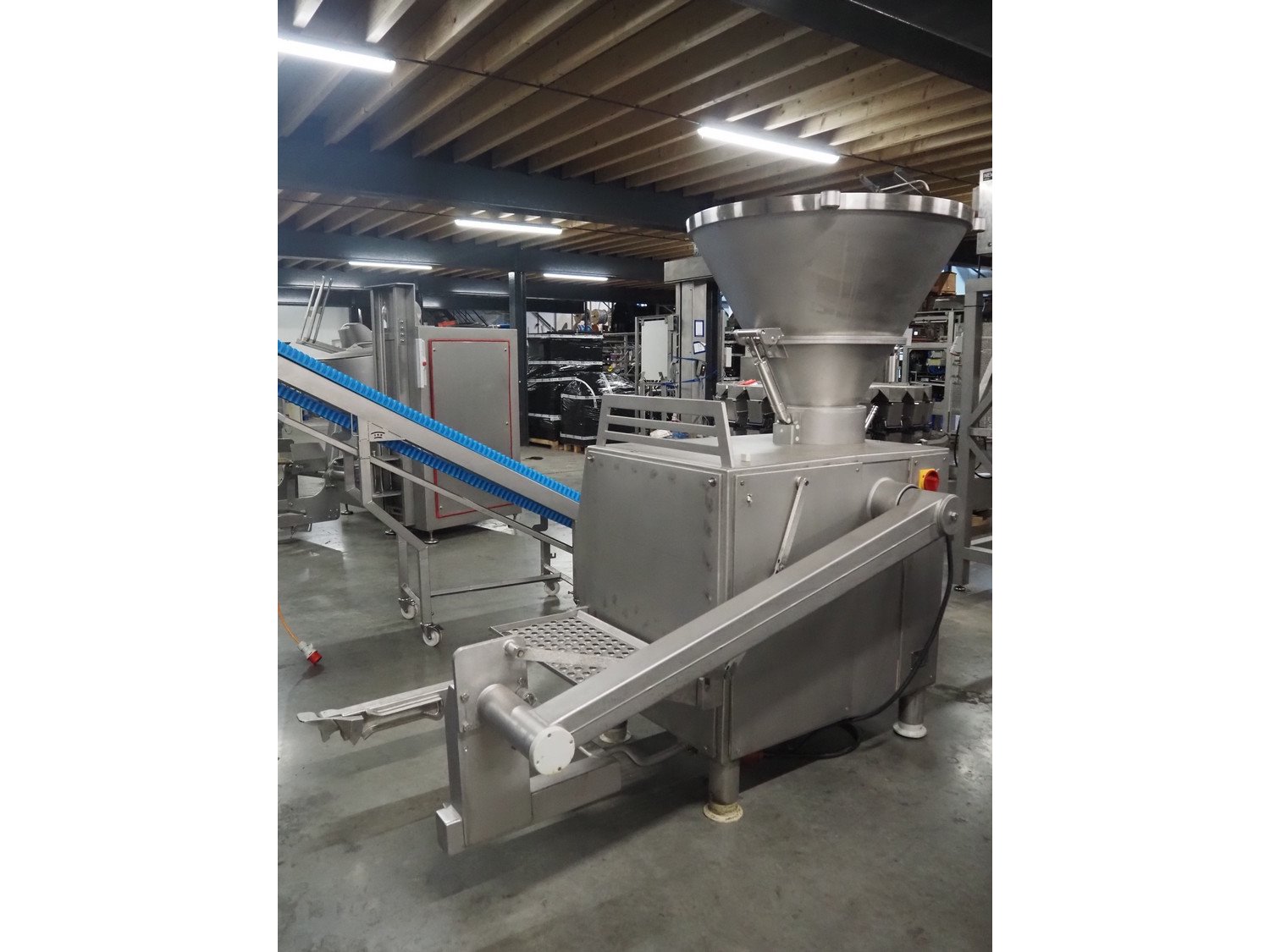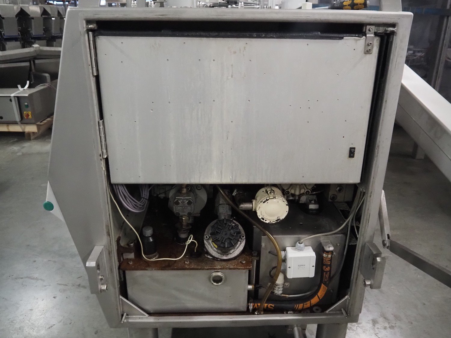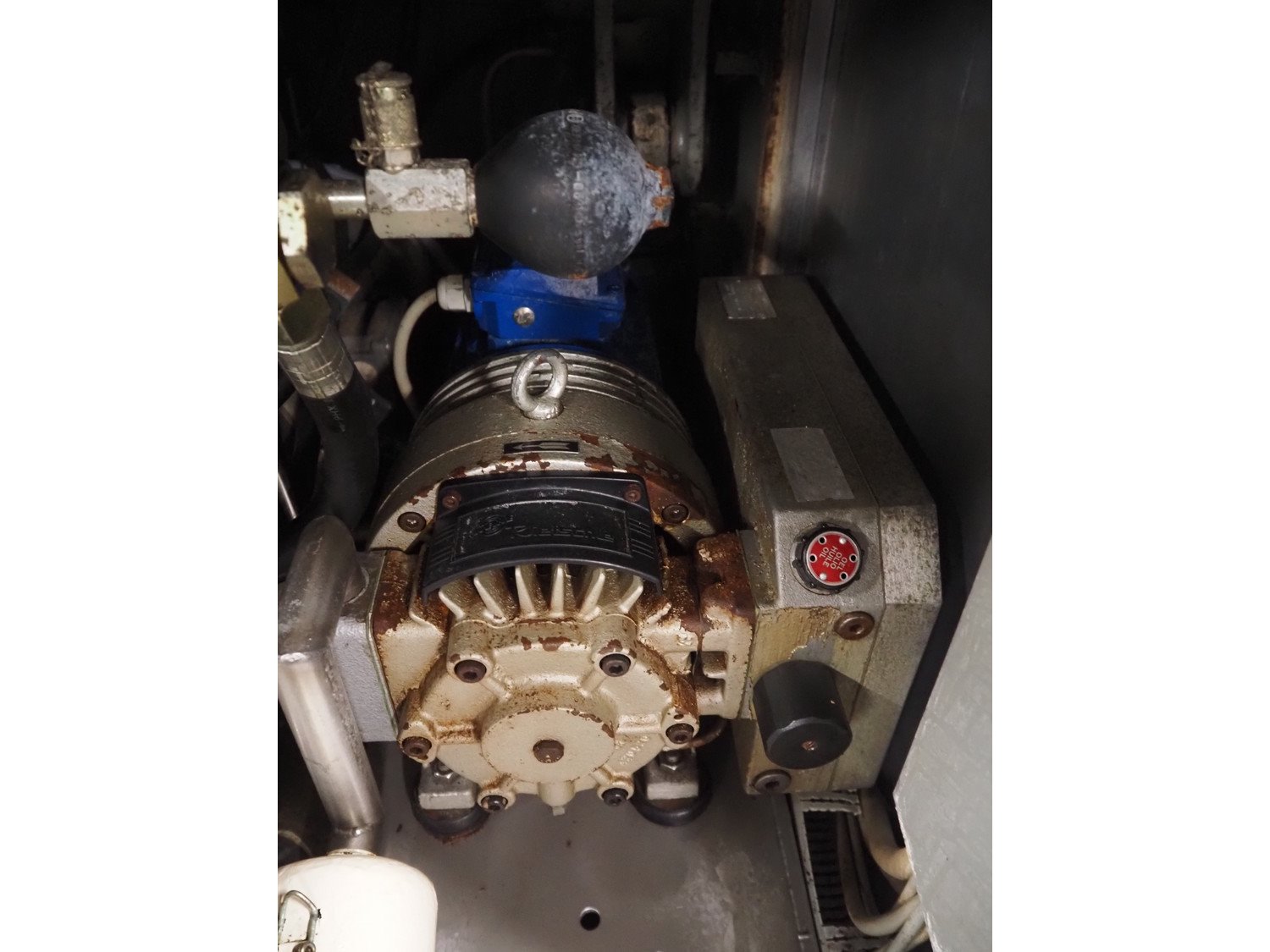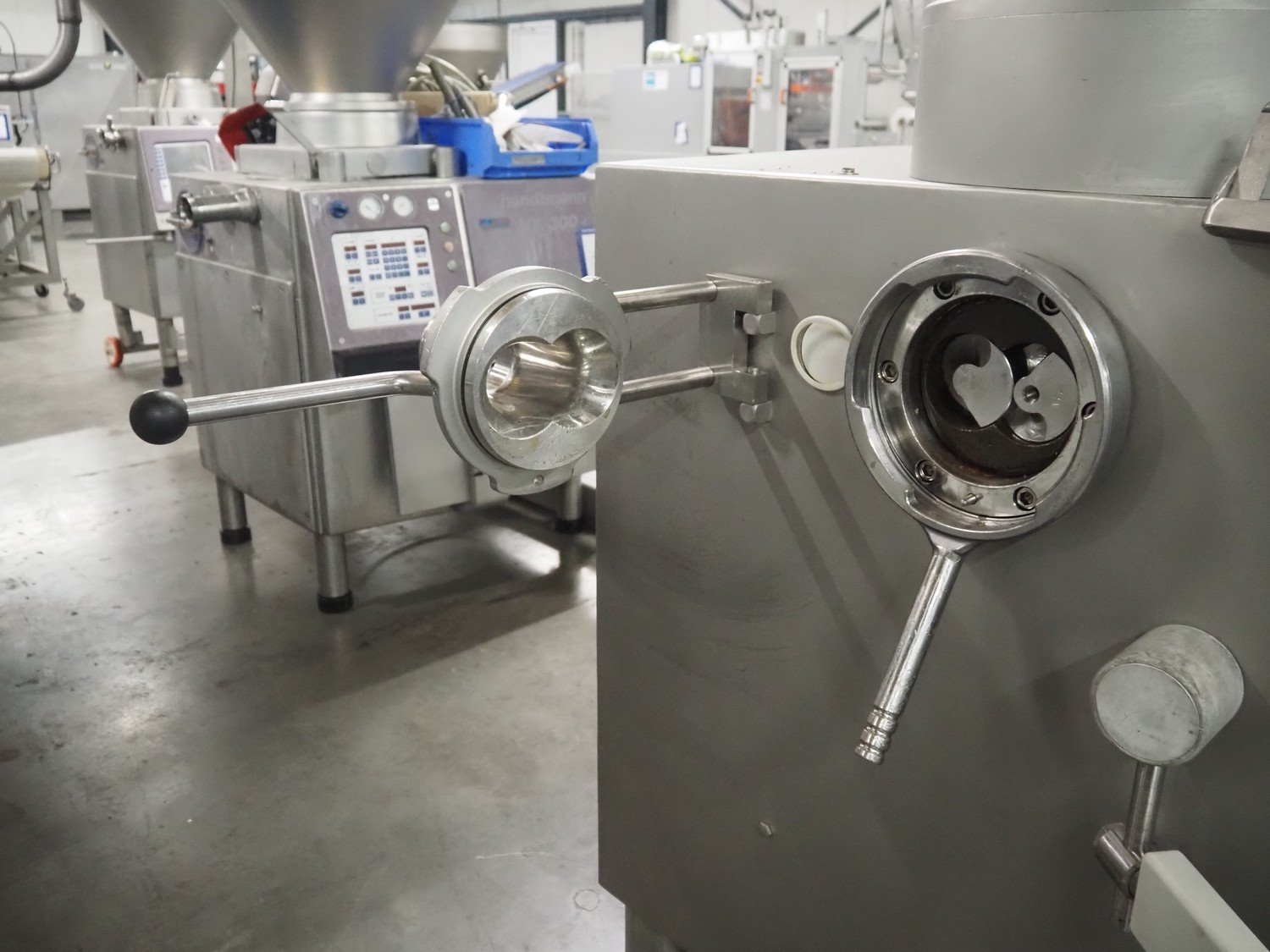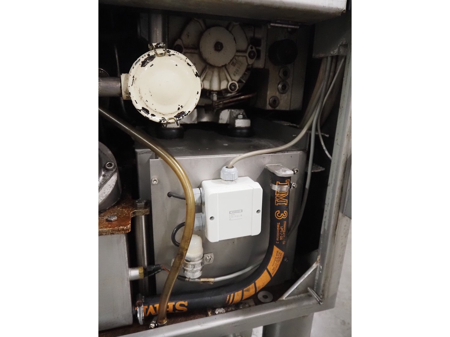 Vemag vacuum filling machine with lifter for 200 liter meat bins, model: ROBOT HP10, type: 140/350 B-1, number: 140 0444, year of construction: 1995, 220-460 V, 3 Ph, 50/60 Hz, 21/63 A, with Rietschle vacuum pump, type: VCE 25, number: 1569062, dimensions: 2100 mm x 1200 mm x 2350 mm.