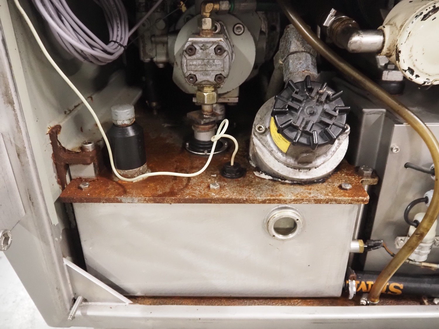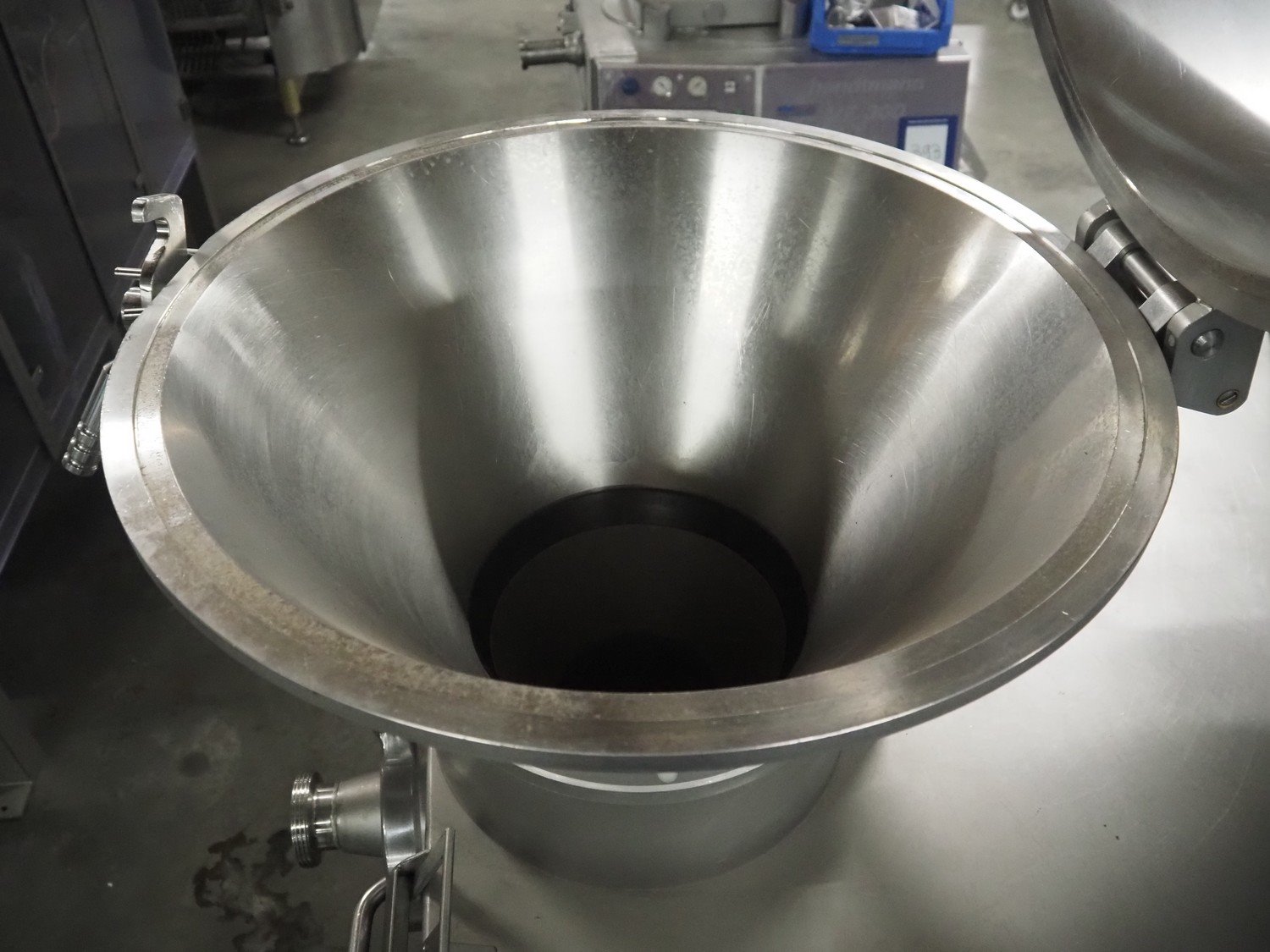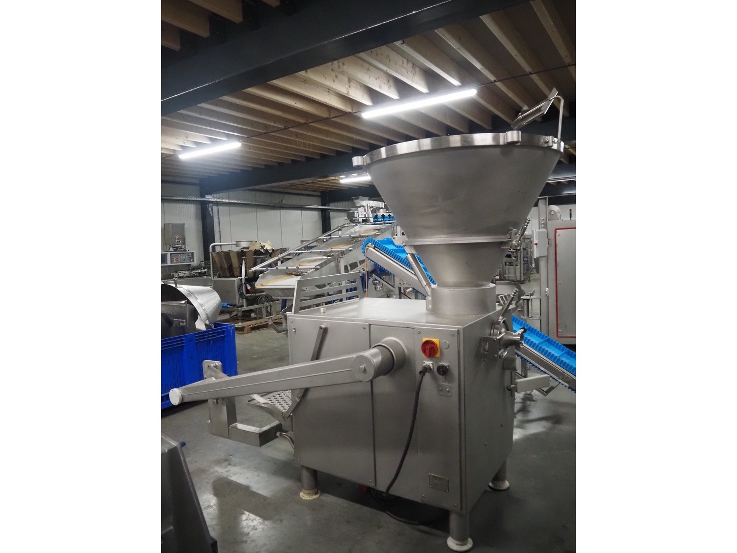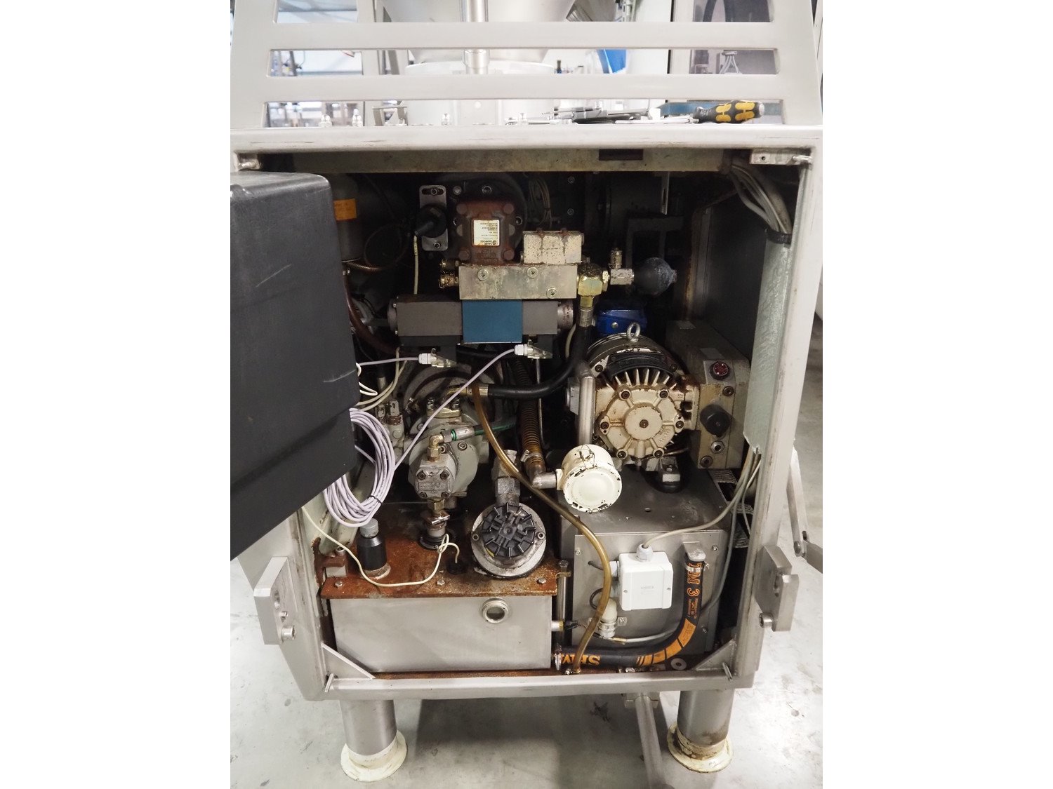 Vemag vacuum filling machine with lifter for 200 liter meat bins, model: ROBOT HP10, type: 140/350 B-1, number: 140 0444, year of construction: 1995, 220-460 V, 3 Ph, 50/60 Hz, 21/63 A, with Rietschle vacuum pump, type: VCE 25, number: 1569062, dimensions: 2100 mm x 1200 mm x 2350 mm.